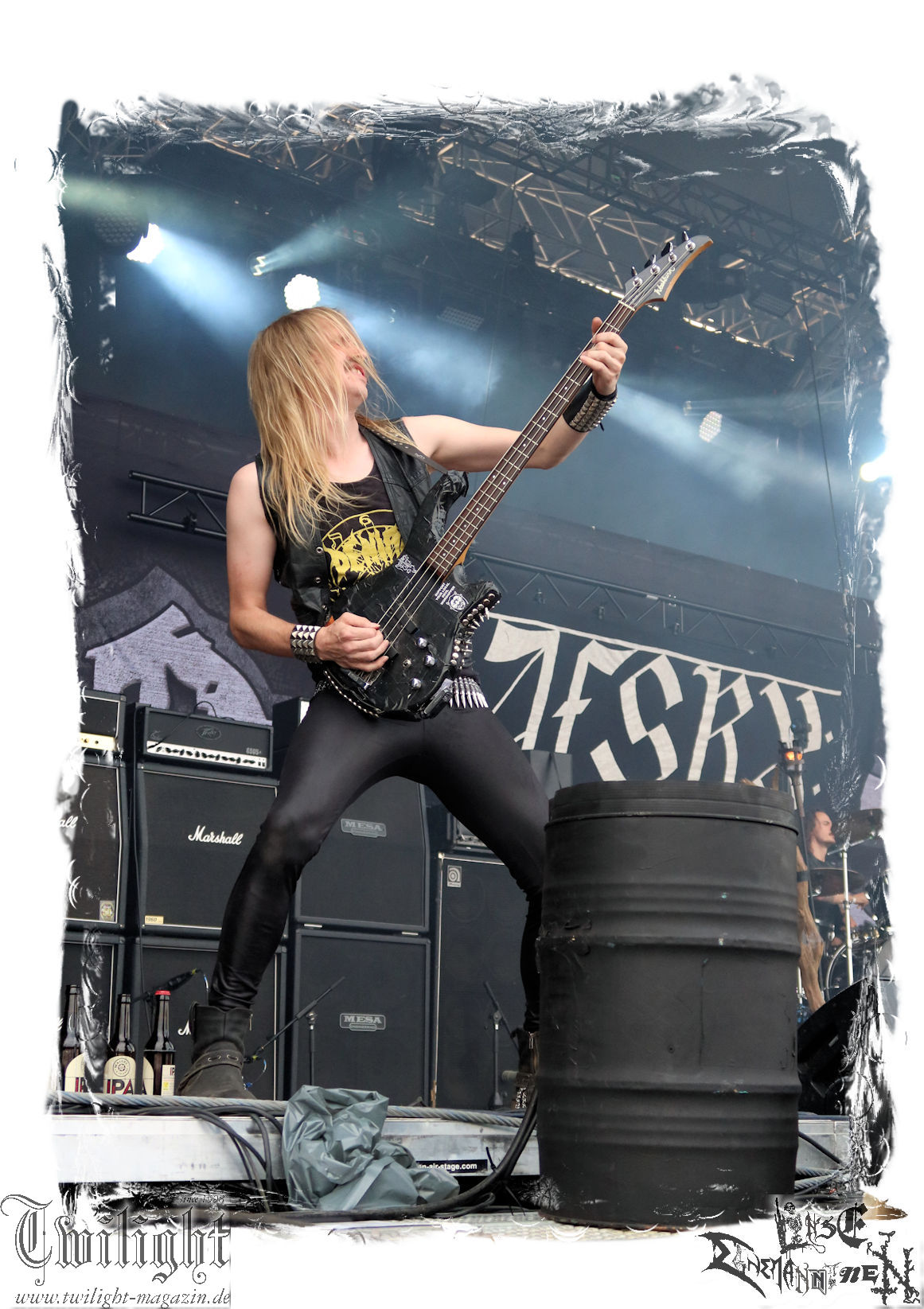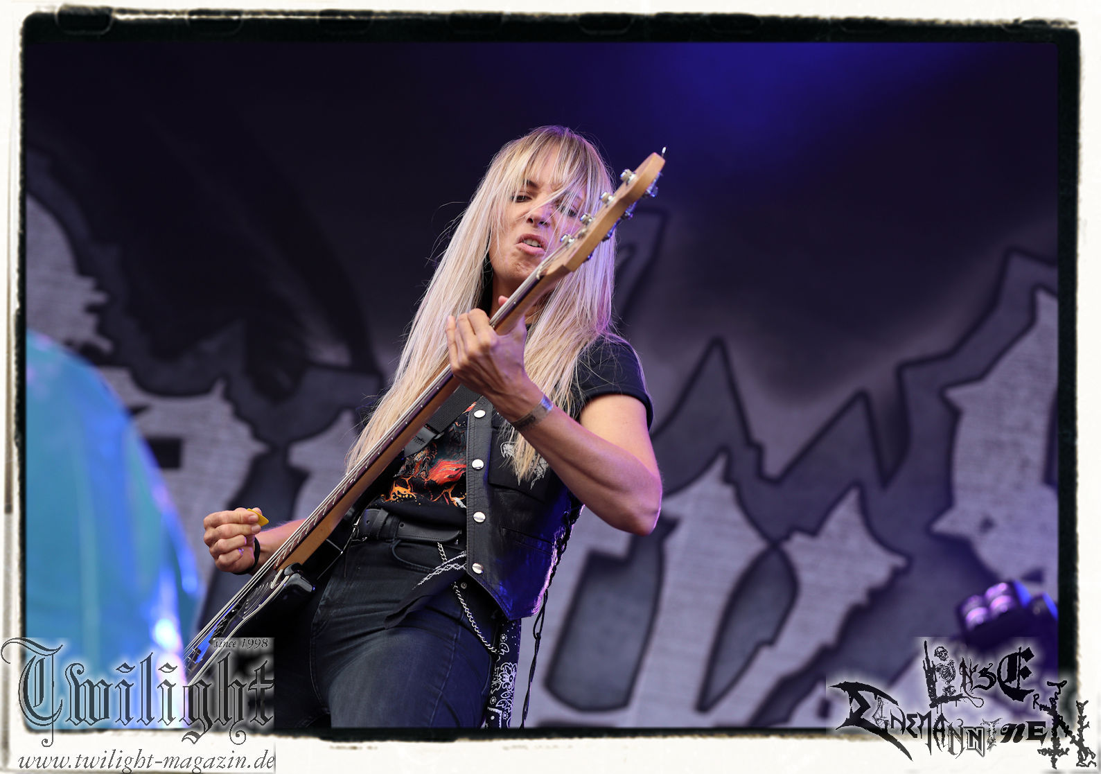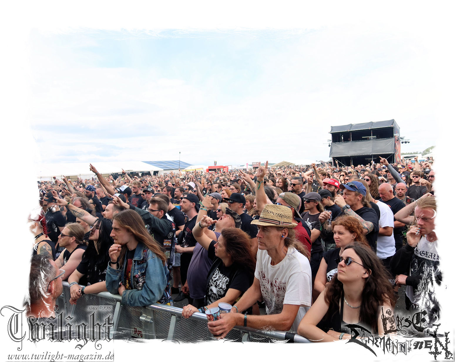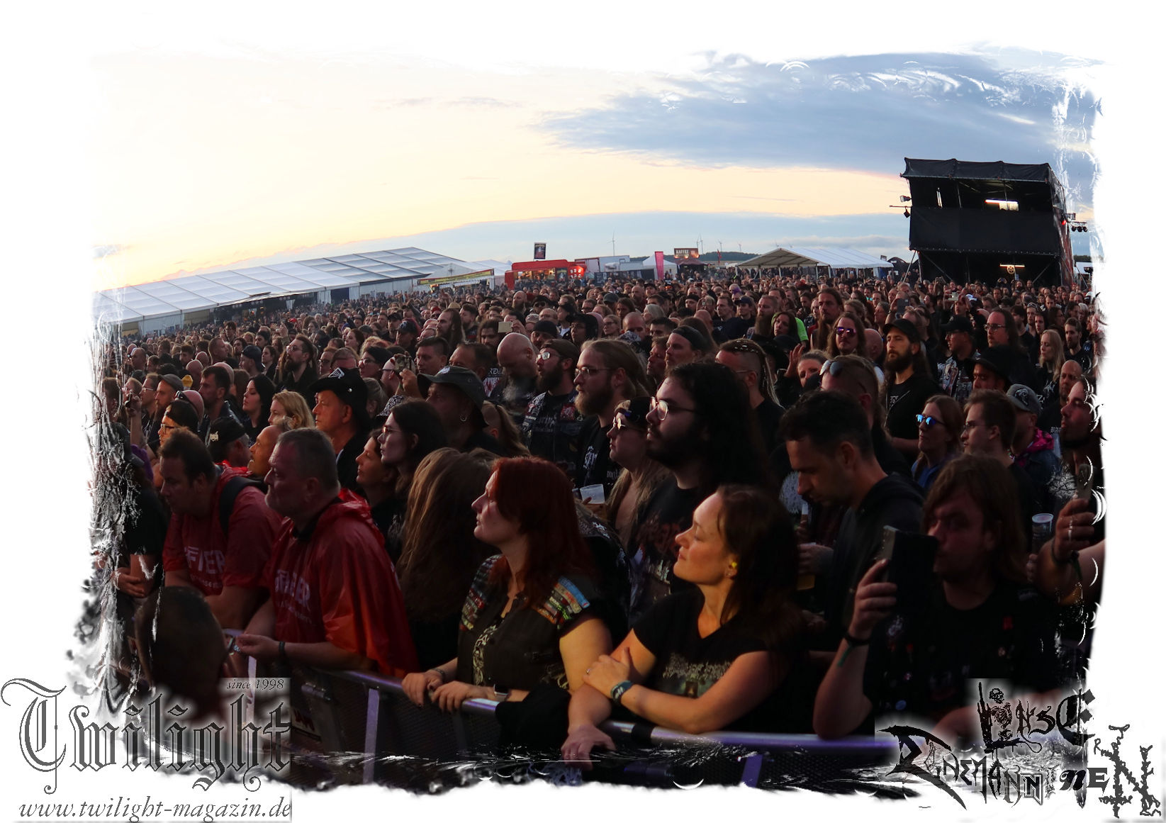 "Napalm In The Morning" kommt auch fett rüber und natürlich darf der Klassiker "Agent Orange" nicht fehlen. Die Band hat, was die Lightshow, die Pyros und Nebel angeht, eh ordentlich aufgefahren, aber bei diesem Song ballern sie echt alles raus und so geben nach und nach die drei Nebelmaschinen den Geist auf. Nebelwand pur, die durch die Beleuchtung, total geil aussieht, während sie auf uns zu wabert und es irgendwann stark nach Silvester riecht. Ich persönlich möchte in dem Moment ja nicht auf der Bühne stehen, denn Sauerstoff ist in dem Moment dort sicherlich ein rares Gut. Kultsongs wie "The Saw Is The Law" und "Blasphemer" stehen auch hoch auf der Liste und gerade "The Saw Is The Law" ist mir eine Freude, da der Song so schon ordentlich walzt, aber hier noch mal ein paar Schaufeln Steinkohle extra ins höllische Feuer geworfen werden. Gleiches gilt für "Nuclear Winter". Herrlich! Apropos Feuer, denn die, wie ich annehme, nächste Runde Bier entpuppt sich als Rauchfackeln und so wird es im Publikum auf einmal etwas nebelig. Wie nicht anders zu erwarten, wollen die Leute auf dem PARTY.SAN METAL OPEN AIR "Partisan" hören, auf den dann "Let's Fight In The Darkness Of Hell" folgt. Mit dem mächtigen Triumvirat "Remember The Fallen", "Ausgebombt" und "Bombenhagel" wird dann leider schon das Ende eines echt geilen Konzerts eingeläutet aber 18 Songs sind ja schon eine Ansage. Ich hätte noch gerne "Book Burning", „Conjuration", "Back To War", "One Step Over The Line", "Unbury The Hatchet", Polytoximaniac", "After The Deluge", "Capture The Flag", "Equinox", "Better Off Dead", "Bullet In The Head", "Sodomized", "That's What An Unknown Killer Diarized" und, und, und gehört, aber das wäre ja schon wieder ein ganzer Gig an sich gewesen, hahaha. Aber auch so ist das hier ein grandioser Moment und so nimmt das PARTY.SAN, was Konzerte angeht, nach dem letzten Song und frenetischem Jubel sein Ende. Wir werden mit dem Steigerlied entlassen. Da werden die Goldkehlchen der Harzer und Braunschweiger vom Twilight Magazin und Hotel666 natürlich nochmal gefordert, wie auch beim anschließenden und absolut passenden Fury In The Slaughterhouse-Hit "Won't Forget These Days", mit dem uns das PARTY.SAN 2024 in die Nacht entlässt. Wer aus Niedersachsen singt da nicht voller Inbrunst mit? Genau, und so zieht es einige von uns noch singend ins Party-Zelt oder Leute wie mich ins eigene Zelt, um irgendwann glücklich einzuschlafen. Bleibt mir noch zum Schluss ein groooooooßes Dankeschön, Küsse und Liebe an das PARTY.SAN, deren ganze Crew und allen, die noch daran mitgewirkt haben, zu schicken, denn es war wieder eine absolut geile, geile, geile Zeit bei euch und ich freue mich jetzt schon mega, nächstes Jahr wieder bei euch sein zu dürfen! (Rudi)