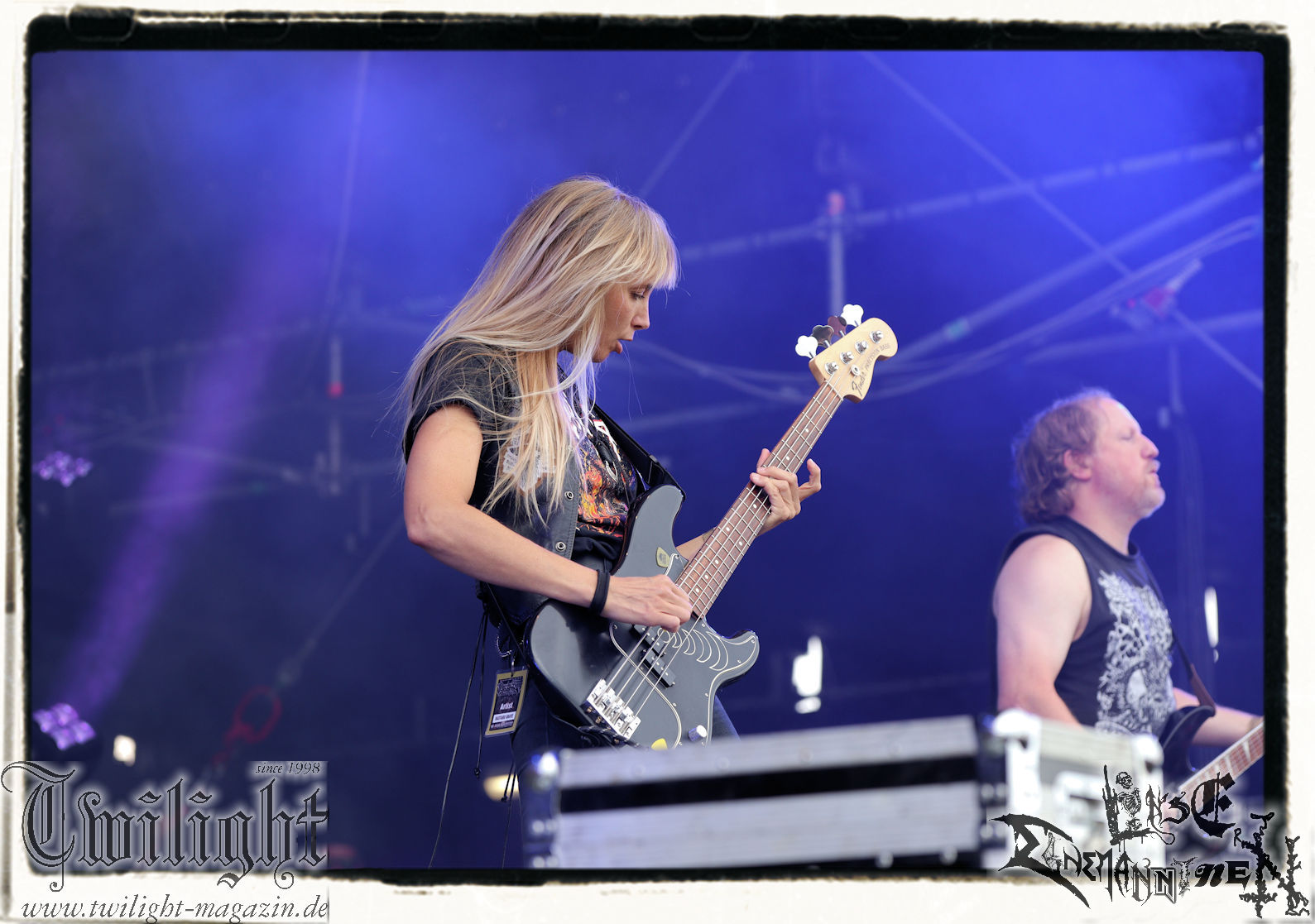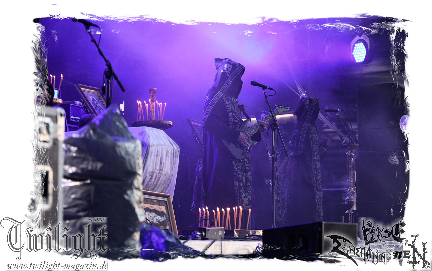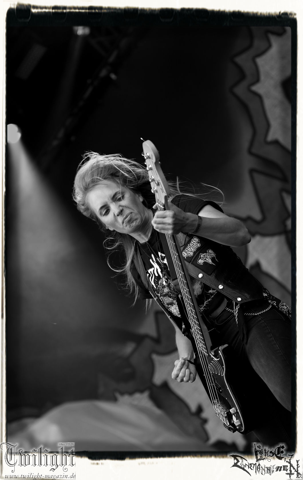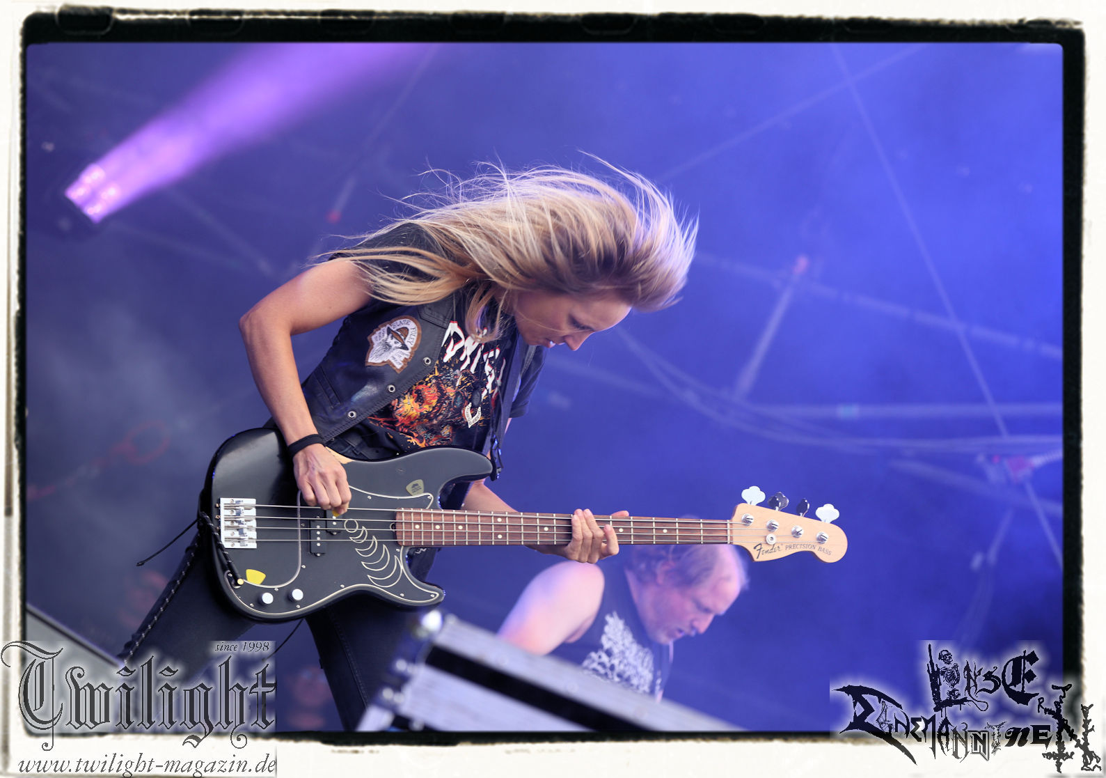 "Napalm In The Morning" kommt auch fett rüber und natürlich darf der Klassiker "Agent Orange" nicht fehlen. Die Band hat, was die Lightshow, die Pyros und Nebel angeht, eh ordentlich aufgefahren, aber bei diesem Song ballern sie echt alles raus und so geben nach und nach die drei Nebelmaschinen den Geist auf. Nebelwand pur, die durch die Beleuchtung, total geil aussieht, während sie auf uns zu wabert und es irgendwann stark nach Silvester riecht. Ich persönlich möchte in dem Moment ja nicht auf der Bühne stehen, denn Sauerstoff ist in dem Moment dort sicherlich ein rares Gut. Kultsongs wie "The Saw Is The Law" und "Blasphemer" stehen auch hoch auf der Liste und gerade "The Saw Is The Law" ist mir eine Freude, da der Song so schon ordentlich walzt, aber hier noch mal ein paar Schaufeln Steinkohle extra ins höllische Feuer geworfen werden. Gleiches gilt für "Nuclear Winter". Herrlich! Apropos Feuer, denn die, wie ich annehme, nächste Runde Bier entpuppt sich als Rauchfackeln und so wird es im Publikum auf einmal etwas nebelig. Wie nicht anders zu erwarten, wollen die Leute auf dem PARTY.SAN METAL OPEN AIR "Partisan" hören, auf den dann "Let's Fight In The Darkness Of Hell" folgt. Mit dem mächtigen Triumvirat "Remember The Fallen", "Ausgebombt" und "Bombenhagel" wird dann leider schon das Ende eines echt geilen Konzerts eingeläutet aber 18 Songs sind ja schon eine Ansage. Ich hätte noch gerne "Book Burning", „Conjuration", "Back To War", "One Step Over The Line", "Unbury The Hatchet", Polytoximaniac", "After The Deluge", "Capture The Flag", "Equinox", "Better Off Dead", "Bullet In The Head", "Sodomized", "That's What An Unknown Killer Diarized" und, und, und gehört, aber das wäre ja schon wieder ein ganzer Gig an sich gewesen, hahaha. Aber auch so ist das hier ein grandioser Moment und so nimmt das PARTY.SAN, was Konzerte angeht, nach dem letzten Song und frenetischem Jubel sein Ende. Wir werden mit dem Steigerlied entlassen. Da werden die Goldkehlchen der Harzer und Braunschweiger vom Twilight Magazin und Hotel666 natürlich nochmal gefordert, wie auch beim anschließenden und absolut passenden Fury In The Slaughterhouse-Hit "Won't Forget These Days", mit dem uns das PARTY.SAN 2024 in die Nacht entlässt. Wer aus Niedersachsen singt da nicht voller Inbrunst mit? Genau, und so zieht es einige von uns noch singend ins Party-Zelt oder Leute wie mich ins eigene Zelt, um irgendwann glücklich einzuschlafen. Bleibt mir noch zum Schluss ein groooooooßes Dankeschön, Küsse und Liebe an das PARTY.SAN, deren ganze Crew und allen, die noch daran mitgewirkt haben, zu schicken, denn es war wieder eine absolut geile, geile, geile Zeit bei euch und ich freue mich jetzt schon mega, nächstes Jahr wieder bei euch sein zu dürfen! (Rudi)