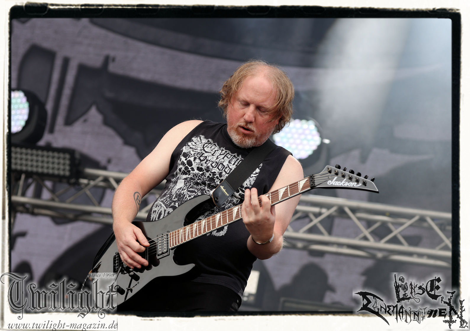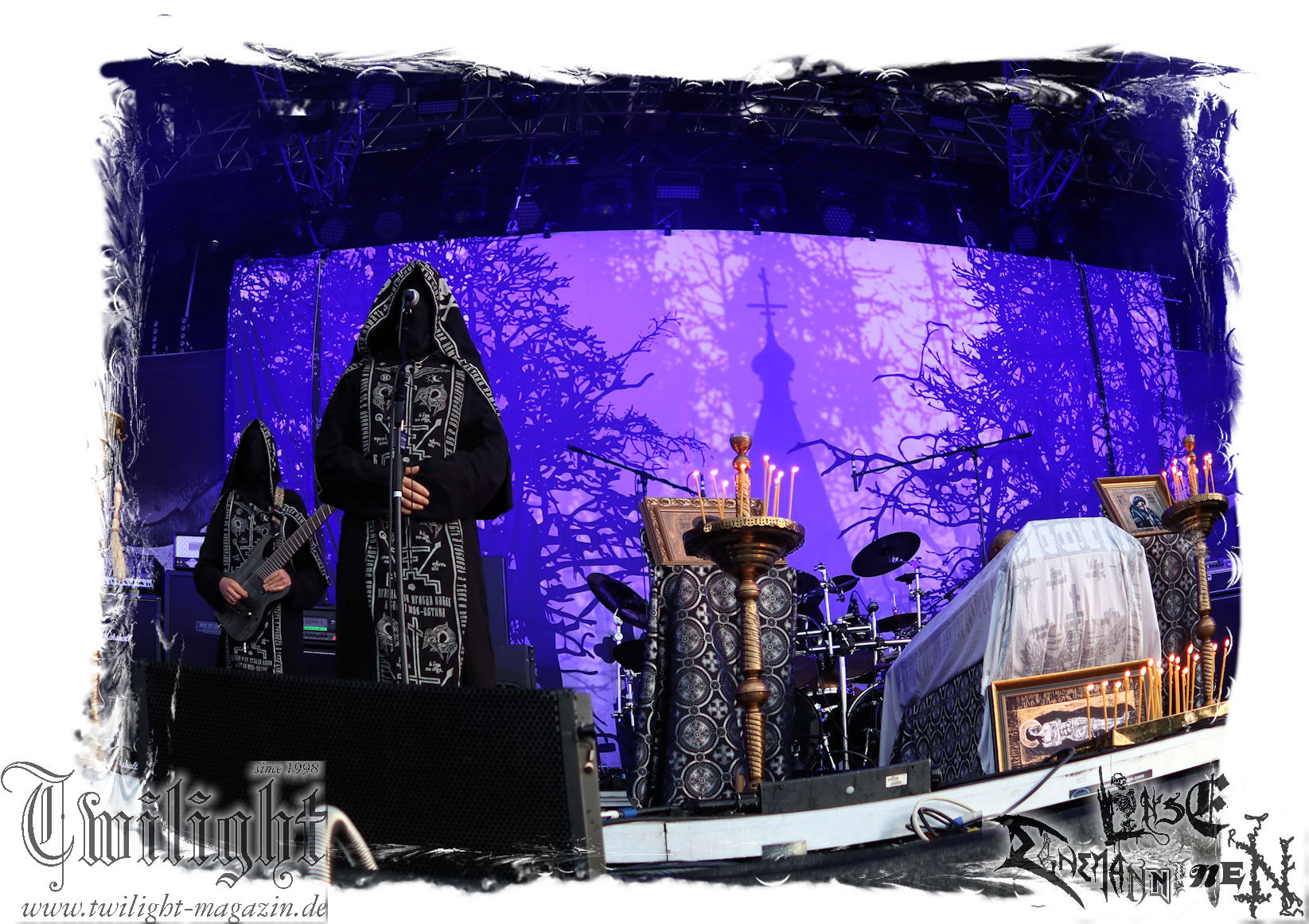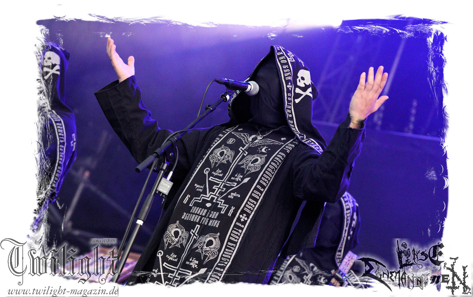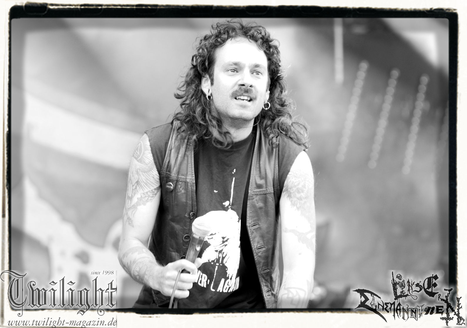 Nach den Hypocrisy- und Bolt Thrower-Covershows im vergangenen Jahr war das Engagement von BLOOD FIRE DEATH eigentlich eine reine Formsache. Denn auf welche Band, wenn nicht Bathory, sollte sich das Publikum des PARTY.SAN METAL OPEN AIRs, eines Festivals, das stilistisch im Kern von Heavy Metal über Thrash- und Death Metal bis hin zum Black Metal seine Schnittmenge hat, einigen können. Wobei Quorthon (R.I.P.) selbst nie aufgetreten ist und nicht mehr auftreten kann. Zum Glück gibt es ein Kollektiv wie Blood Fire Death, welches sich dem vielschichtigen Schaffen des schwedischen Visionärs, der wie kein anderer Einfluss auf die Death- und Black Metal-Szene genommen hat und ohne den es Subgenres wie Viking- oder Pagan-Metal in der heutigen Form vermutlich nicht geben würde, annimmt. Den Kern des einstündigen Sets bildet "Hammerheart" mit drei Songs inkl. des Finales "Road To Asa Bay". Der Einstieg erfolgt standesgemäß mit "Twilight Of The Gods". Dazwischen gibt´s mit "Women Of Dark Desires", "A Fine Day To Die", "Sacrifice" und "War" Klassiker um Klassiker. Trotz der flankierenden Banner am Bühnenrand wird leider kein Stück von "Blood On The Ice" gespielt. Die Darbietung ist absolut würdig, die Musiker über jeden Zweifel erhaben und angesichts des Songmaterials treibt es manch einem Fan im proppevollen Zelt, dass einer Sauna ohne frischen Aufguss gleicht, die Freudentränen in die Augen. Am Ende stellt sich mir nur die Frage, wieso und warum man einer Band, die diesen Aufwand auf der Bühne betreibt und so eine mitreißende Darbietung hinlegt, angesichts eines nahezu unerschöpflichen Fundus an Songmaterial von Bathory, nicht die vollen zwei Stunden des Frühschoppens performen lässt. Aber bekanntlich soll man immer dann aufhören, wenn es am schönsten ist. Fakt ist, Blood Fire Death dürfen mit alternativer Setlist gerne alsbald wiederkommen. (JD) Allerdings gibt es durchaus auch andere Wahrnehmungen: Da Bathory nie live aufgetreten sind, ist dies wohl die beste Möglichkeit, herauszufinden, ob ein solcher Auftritt eine gute Idee gewesen wäre. Dazu gibt es gespaltene Meinungen, ist die Musik von dem viel zu früh verstorbenen Mastermind Quorthon doch nie für Livebühnen geschrieben worden. Doch die Band gibt ihr Bestes und huldigt ihm 20 Jahre nach seinem Tod mit seinen unsterblichen Klassikern. Da schmeckt mir auch der erste Met des Tages wieder! (MS)