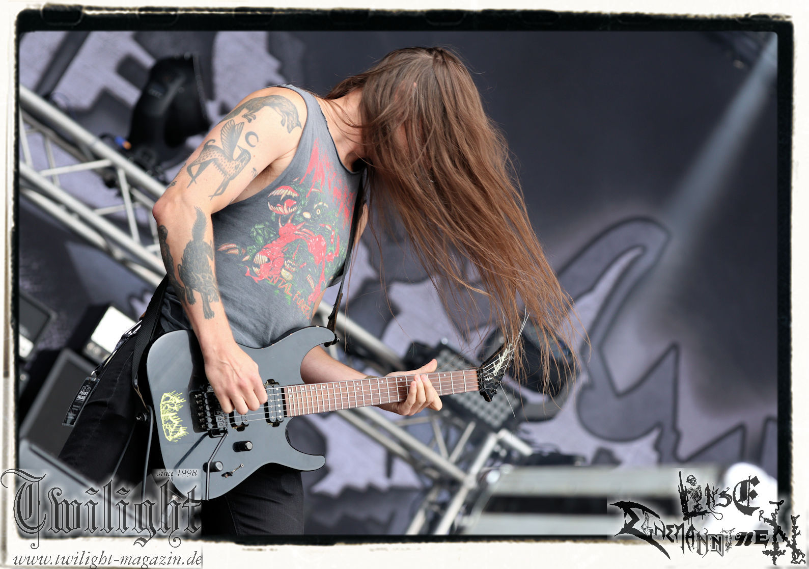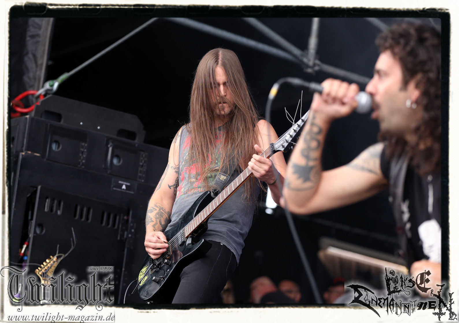 Bei ALKALOID muss man dann komplett hellwach sein, um überhaupt mitzubekommen, was da gerade auf der Zeltbühne passiert. Die wohl progressivste Bands des Festivals zelebriert ihre Version des Tech-Deaths zum ersten Mal in Deutschland. Bei den Flitzefingern an den drei Gitarren weiß man gar nicht, wo man zuerst hinschauen soll. Trotzdem gehen die Songs gut rein und werden ordentlich abgefeiert. HERETOIR haben sich inzwischen ihren Platz in der deutschen Post-Metal-Szene erspielt und haben ihr neues Album „Nightsphere“ im Gepäck, dass sie dieses Jahr schon einige Mal live präsentiert haben. Sänger Dave und seine Mannen zeigen sich abgezockt und spielfreudig und haben die Menge nicht nur mit alten Songs wie „Graue Bauten“ vor der Zeltbühne im Griff. Auch die neuen Stücke kommen gut an und lassen auch einige Zufallspassanten stehen bleiben, die eigentlich nur vom Klo kamen. (MS)