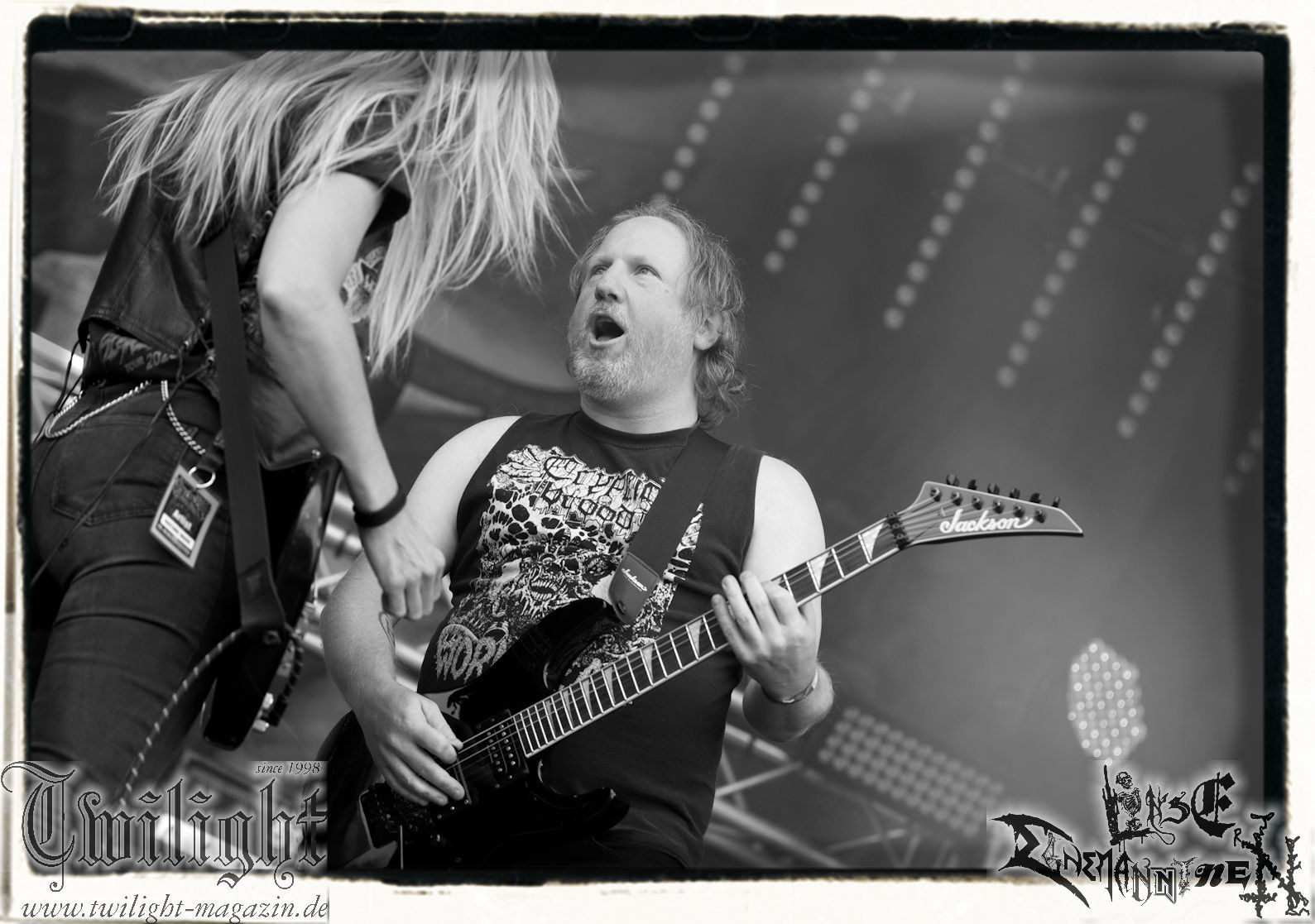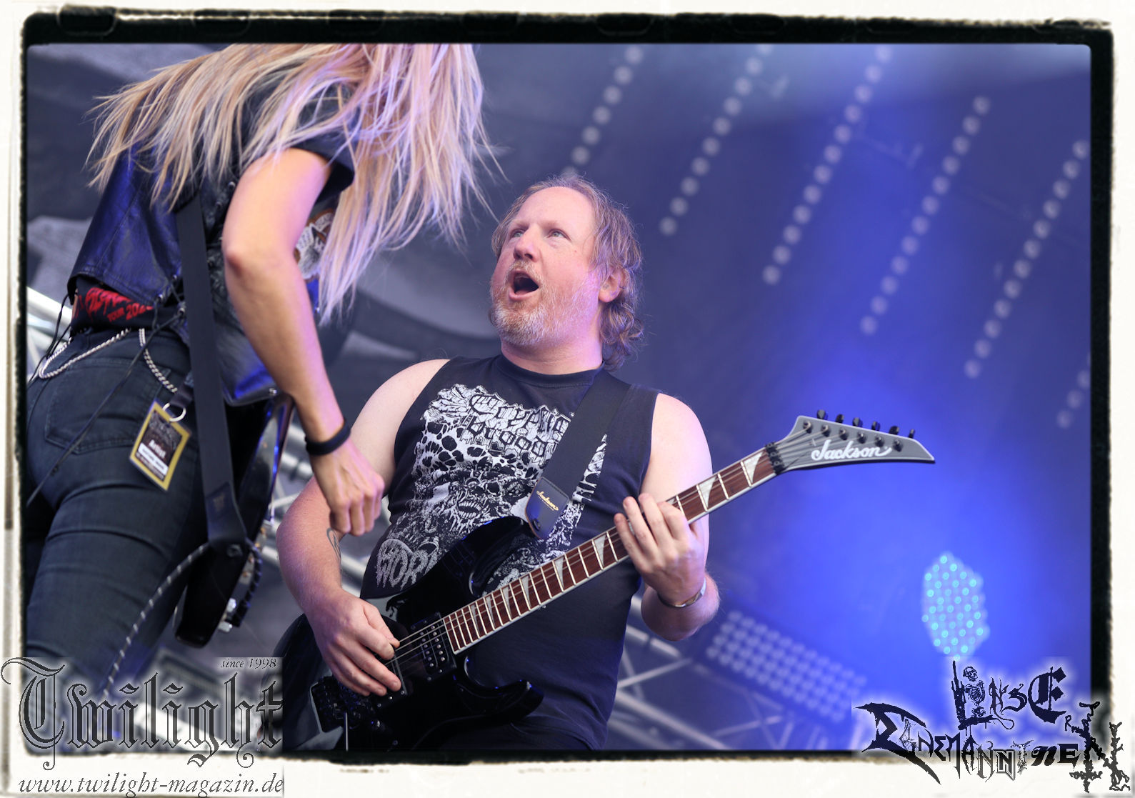 LEGION OF THE DAMNED haben den Slot, bei dem man sich in die Nacht prügeln kann und die Niederländer machen das, was man von Legion Of The Damned erwartet. Wie schon vor zwei Wochen auf dem Rock unter den Eichen liefert das Quintett ein Thrash-Fest allererster Güte ab, bei dem man sich so richtig austoben kann. Auf Scheibe brauche ich das nach wie vor nicht aber live ist die Band eine absolute Bank. Fette Drums, messerscharfes Gitarrenriffing, drückender Bass plus die zischenden Screams von Maurice! Das PARTY.SAN METAL OPEN AIR "tanzt" sich förmlich den Schakal aus dem Leib. (JD)