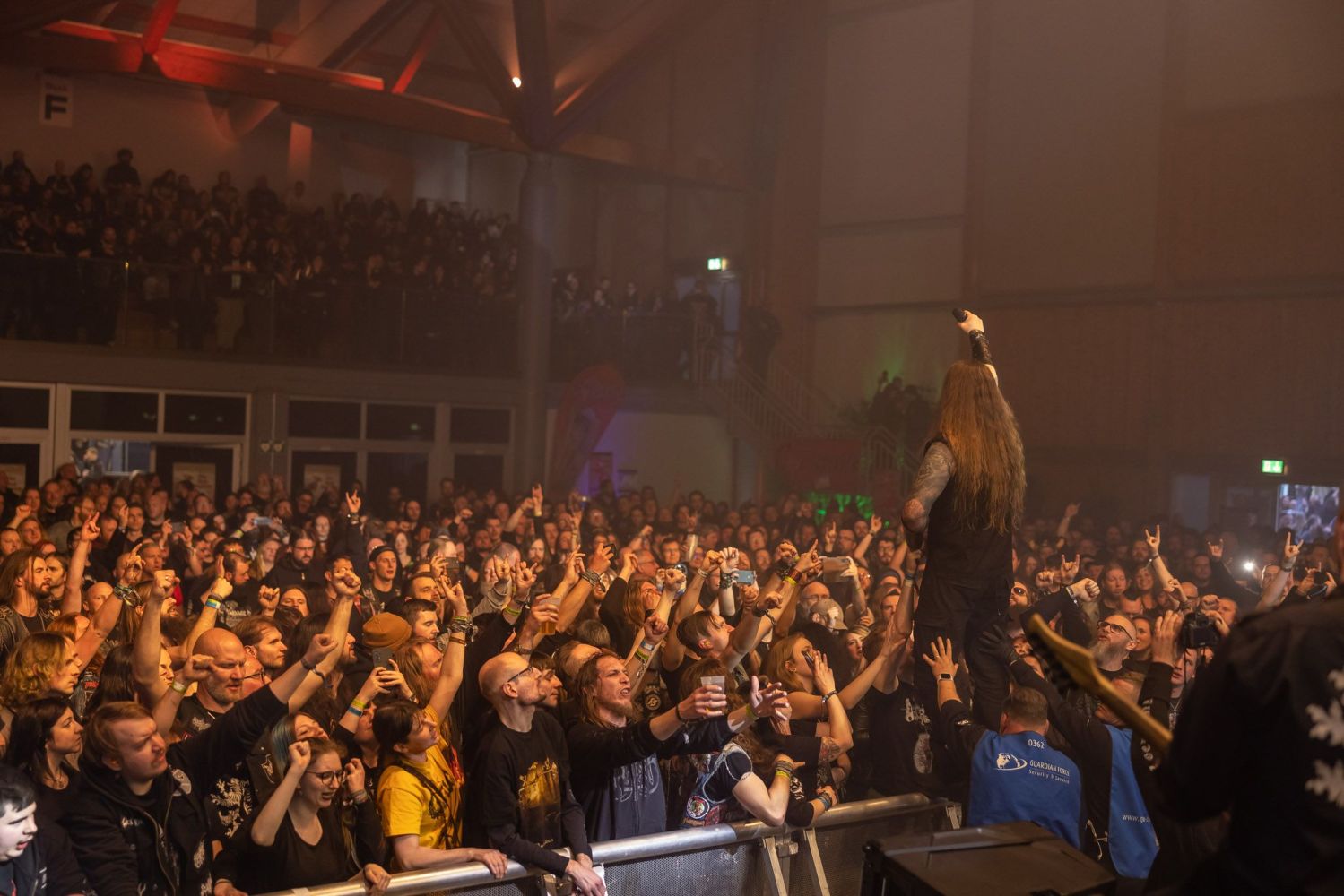 Auch dieses Jahr findet dabei das meiste glücklicherweise in der lokalen Stadthalle statt, denn die Sonne lässt sich mal wieder eher weniger blicken. Doch natürlich campen Hartgesottene drei Tage lang durch und auch die Met-, Merch- und Fressstände vor der Halle sind wieder am Start. Im Inneren kommt wieder das bewährte Doppelbühnensystem zum Einsatz und sorgt für einen reibungslosen Ablauf und kaum Umbaupausen zwischen den Acts.