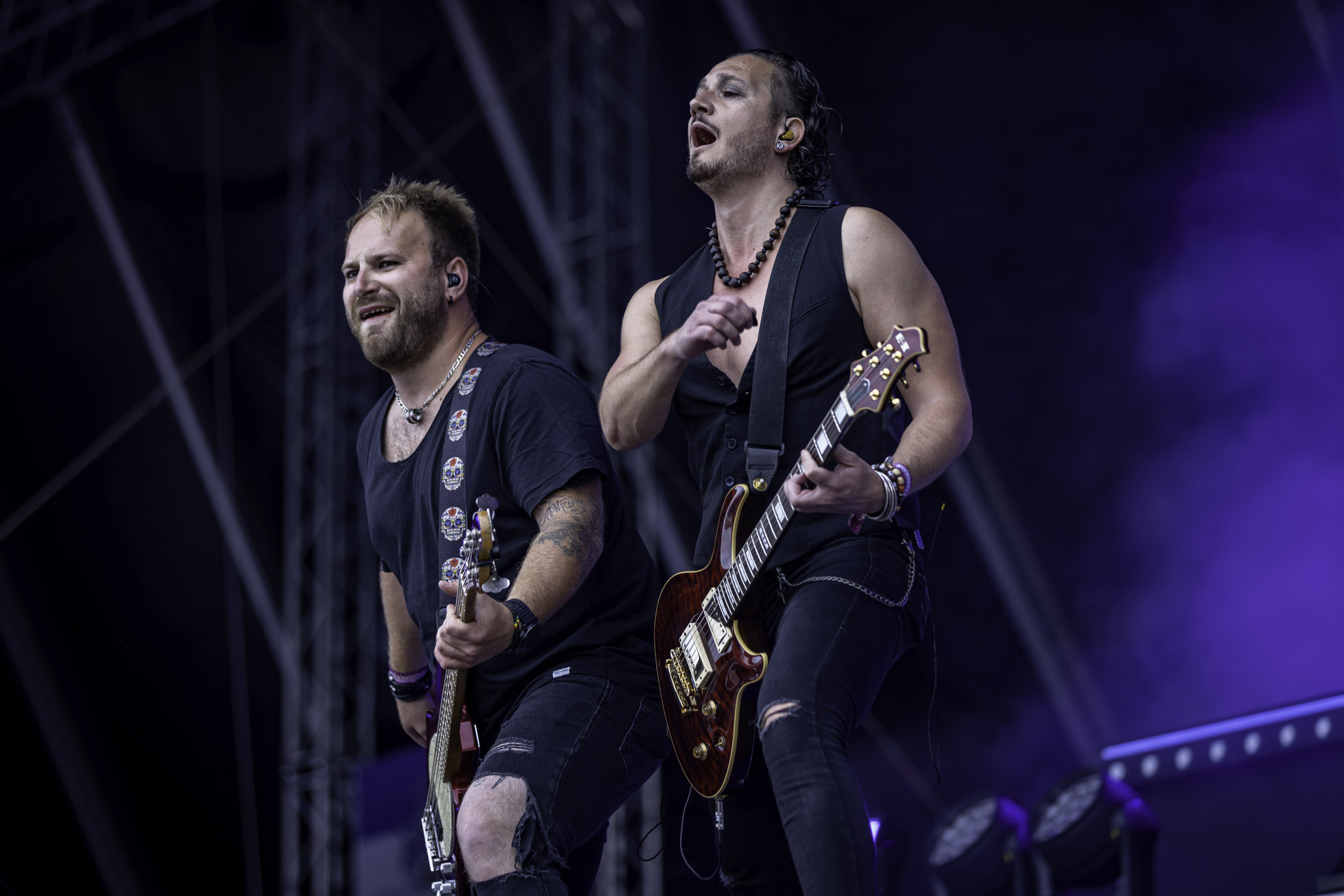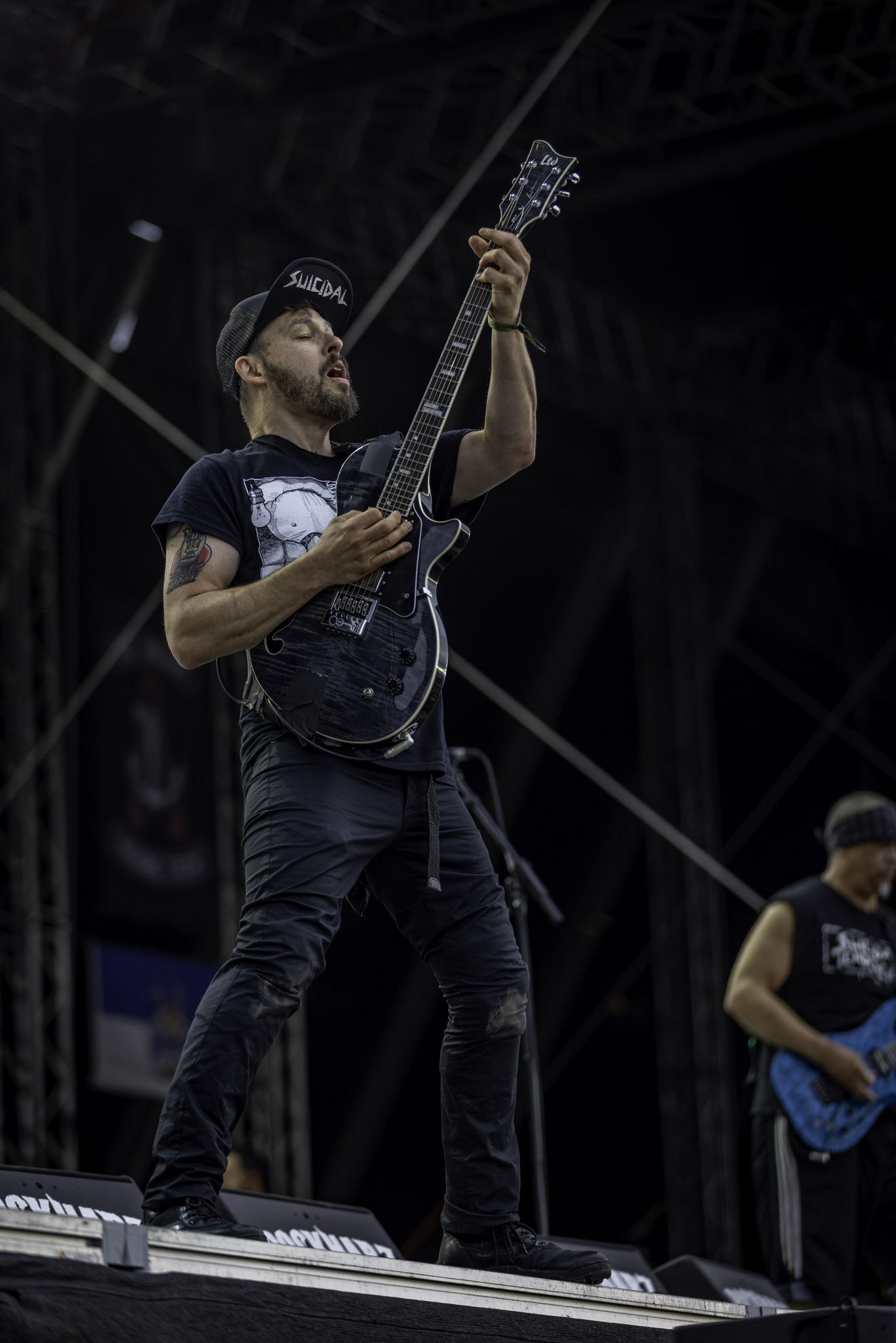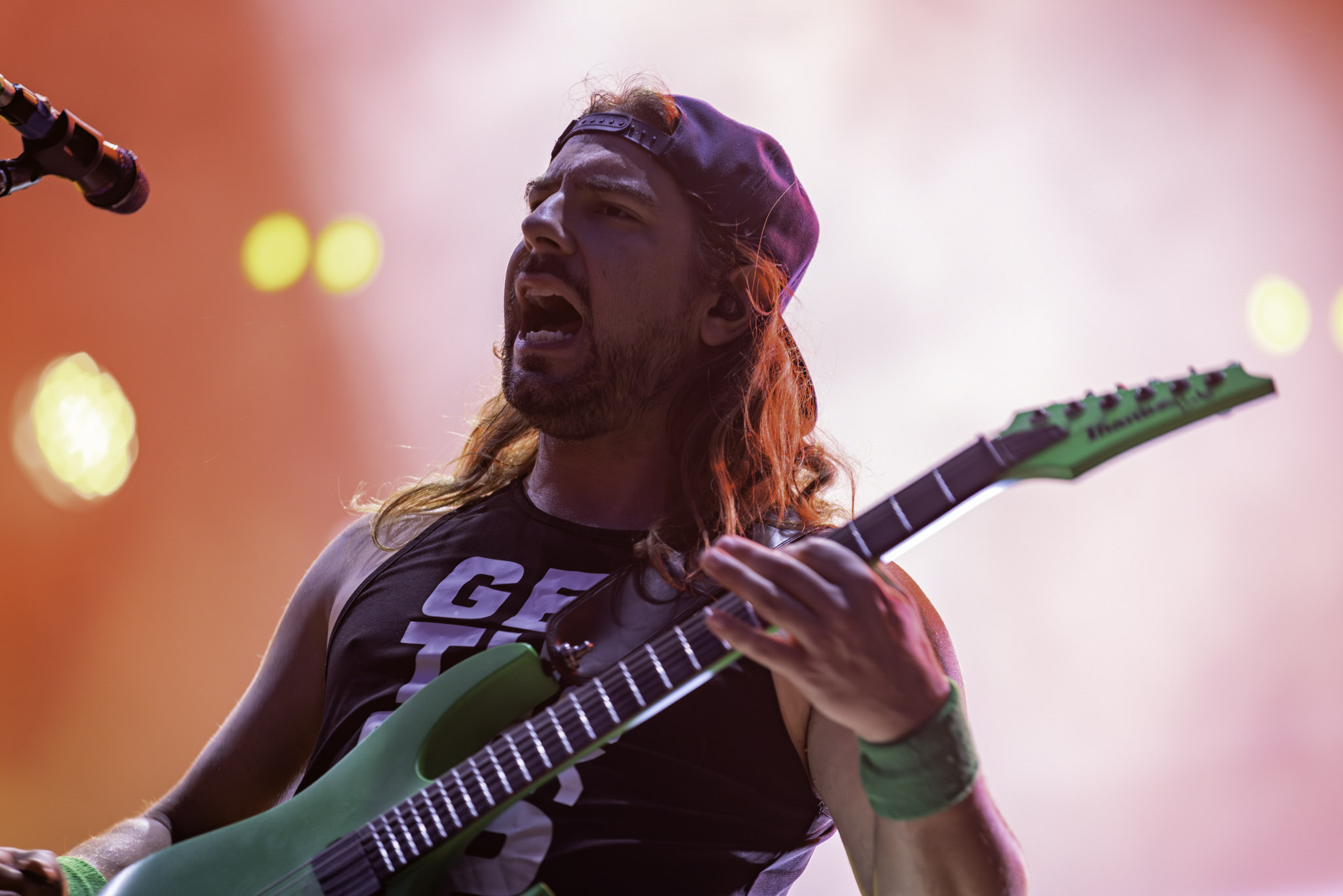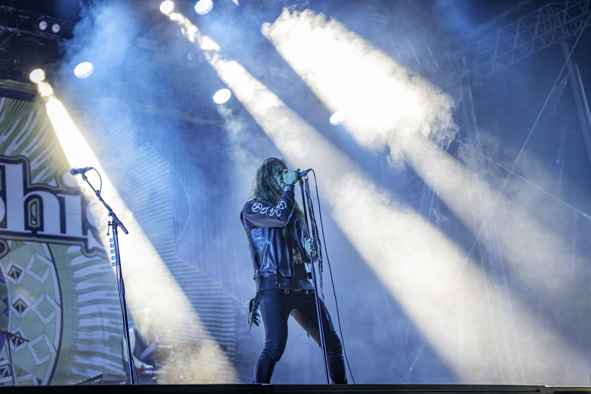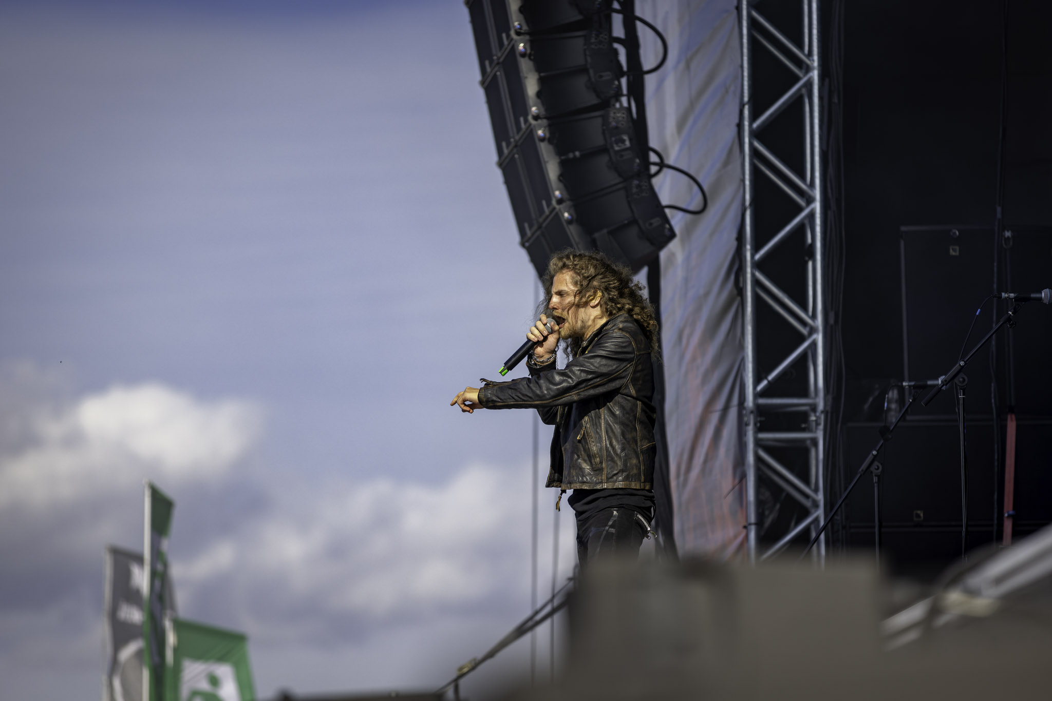 Der Mittwoch hatte gemäß Runningorder schon einiges zu bieten, sodass der musikalische Reigen um 17:35 Uhr mit Mammoth WVH auf der Rockstage startete. Ein seltsamer Bandname, unter dem sich niemand etwas vorstellen würde, wäre da nicht die Zusatzinformation „WVH“, die für Wolfgang Van Halen steht. Der Sohn des legendären Gitarren-Gottes Eddie Van Halen, der nun an Gitarre und Gesang mit seiner eigenen Band unterwegs ist und super erdigen HardRock spielt. Jedes Mal wenn Wolfgang Van Halen ein Solo spielt tobt die Menge, da es unverkennbar ist, wer sein Lehrer war.