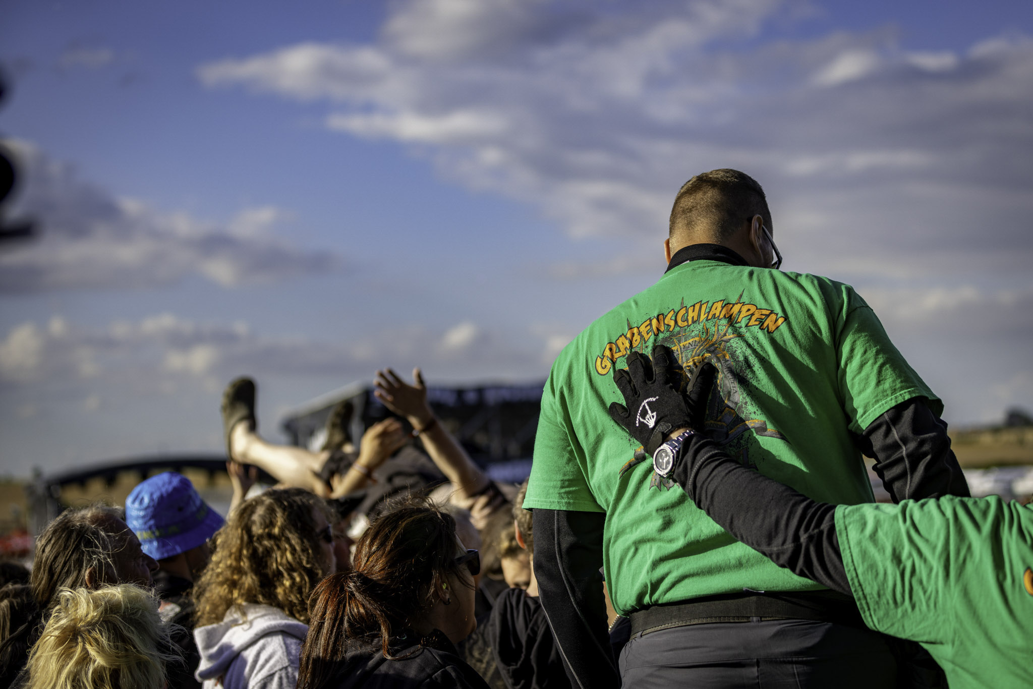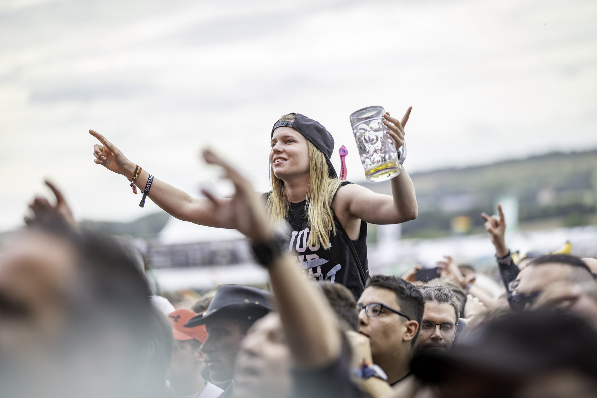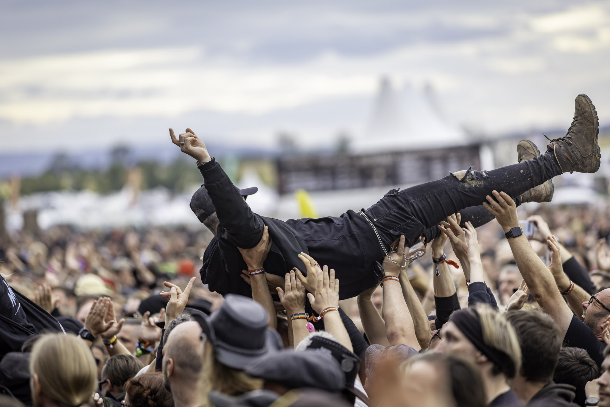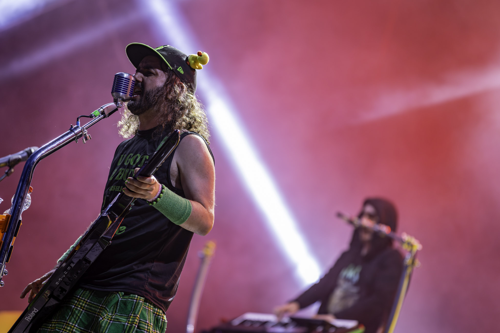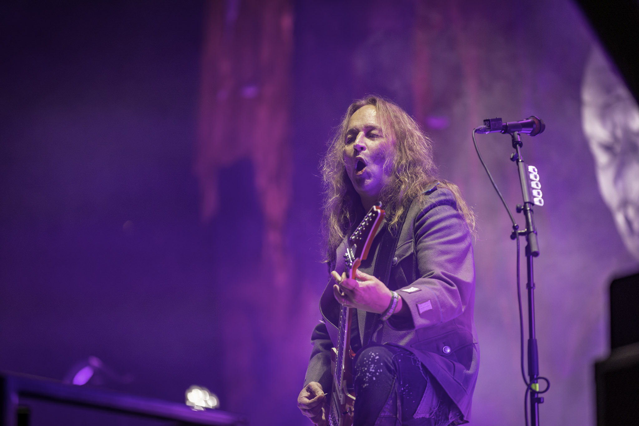 Der Mittwoch hatte gemäß Runningorder schon einiges zu bieten, sodass der musikalische Reigen um 17:35 Uhr mit Mammoth WVH auf der Rockstage startete. Ein seltsamer Bandname, unter dem sich niemand etwas vorstellen würde, wäre da nicht die Zusatzinformation „WVH“, die für Wolfgang Van Halen steht. Der Sohn des legendären Gitarren-Gottes Eddie Van Halen, der nun an Gitarre und Gesang mit seiner eigenen Band unterwegs ist und super erdigen HardRock spielt. Jedes Mal wenn Wolfgang Van Halen ein Solo spielt tobt die Menge, da es unverkennbar ist, wer sein Lehrer war.