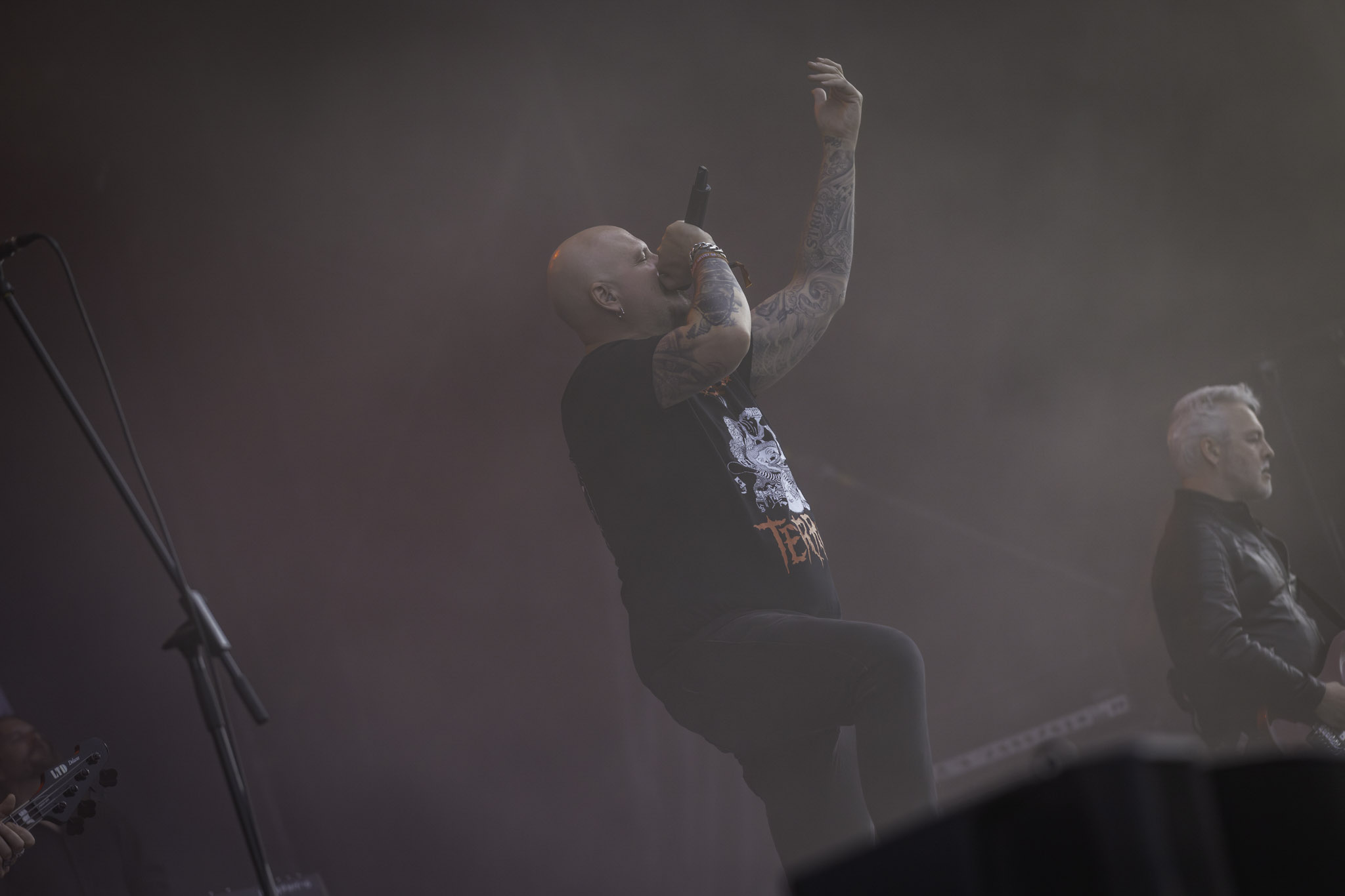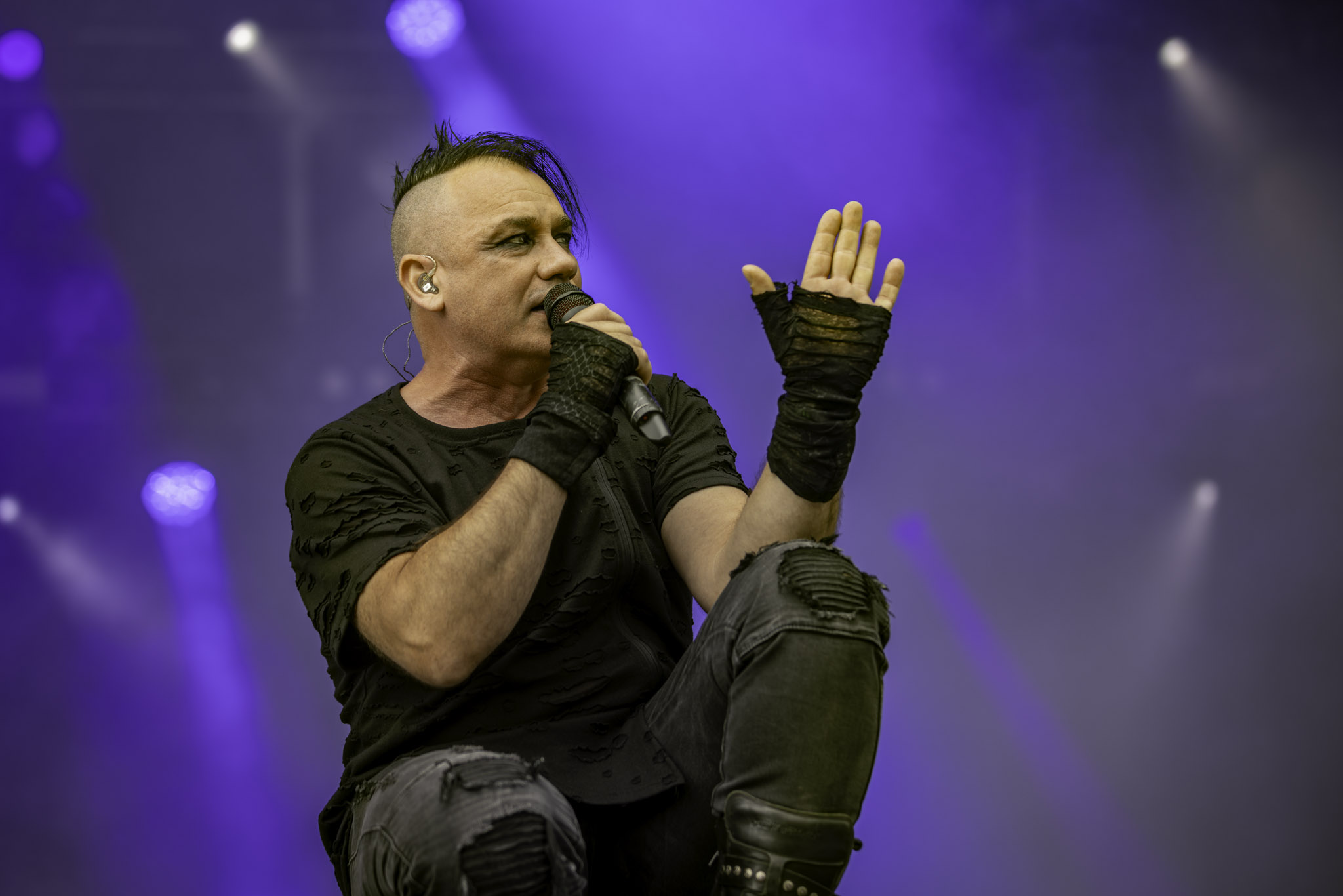 Nach einer kurzen Pause ging es dann mit OOMPH! weiter. Für die meisten Metalheads dürfte dieser Auftritt mit Daniel Schulz eine Premiere sein. „Der Schulz“, bzw. der Ex-Frontmann von Unzucht hatte ja noch nicht allzu viele Gelegenheiten, seine Qualitäten einem solch breitgefächerten Publikum in dieser Band zu präsentieren. Aber wer den sympathischen Sänger kennt, musste sich keine Sorgen machen, dass er sich in seiner neuen Umgebung perfekt zurecht finden würde und wie immer das Publikum mitzieht. Die Songs wurden auch super performt, sodass Herr Schulz seinem Vorgänger Dero in nichts nachstand.