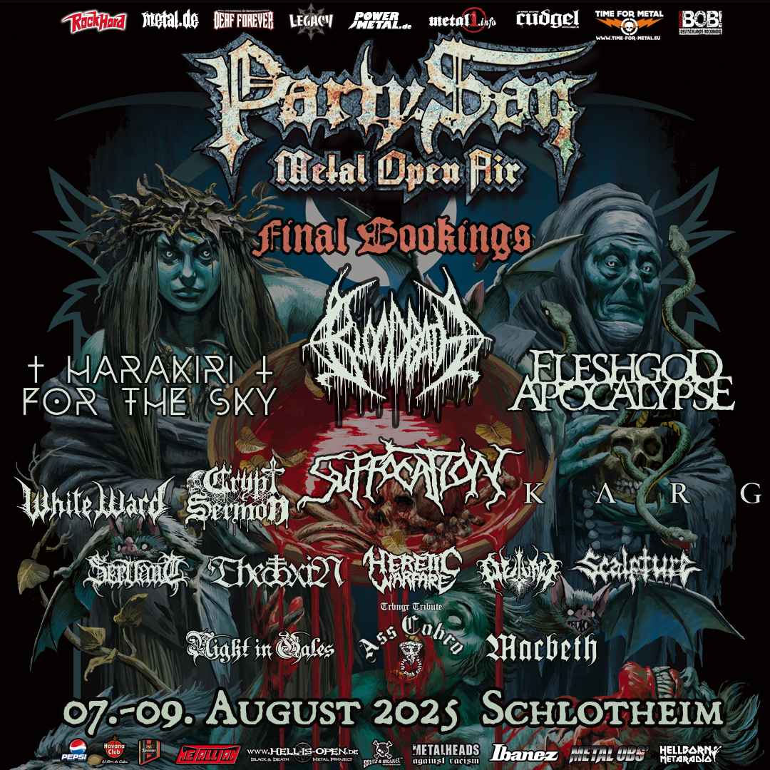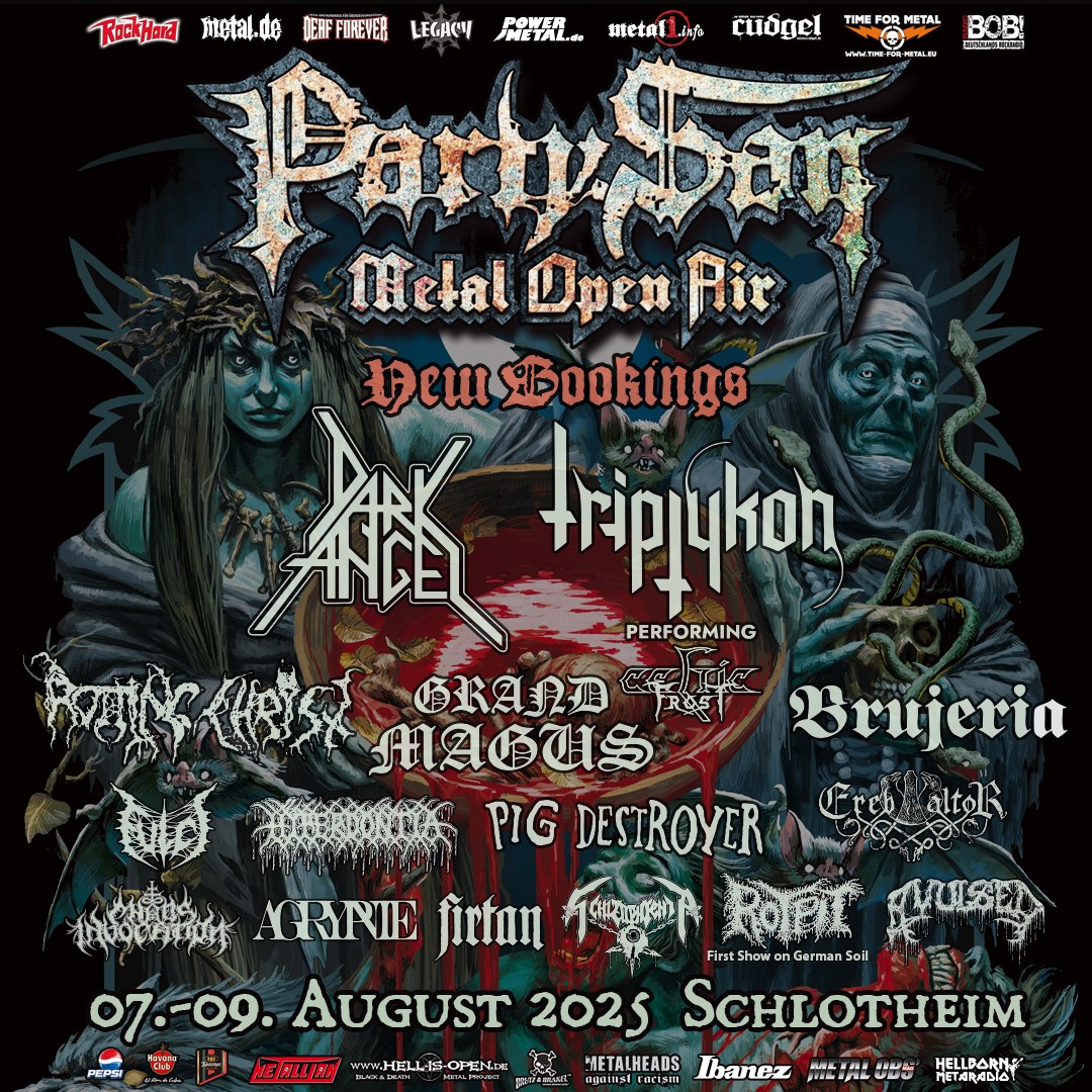 Als Headliner sind in diesem Jahr Tryptikon bestätigt. Tom G. Warrior lässt es sich nicht nehmen und zelebriert Celtic Frost auf der Hauptbühne. Spalier wird die schwedischen Allstar-Combo Bloodbath stehen. David Vincent wird mit I Am Morbid Morbid Angel-Stoff zocken. Mit Gorgoroth, Napalm Death, Rotting Christ oder Grand Magus kehren alte Bekannte auf die Bühnen des Party.Sans zurück, während Tiamat, Dark Angel oder The Vision Bleak ihre längst überfällige Premiere feiern werden. Aber auch darüber hinaus kann sich das LIne-Up sehen und hören lassen.