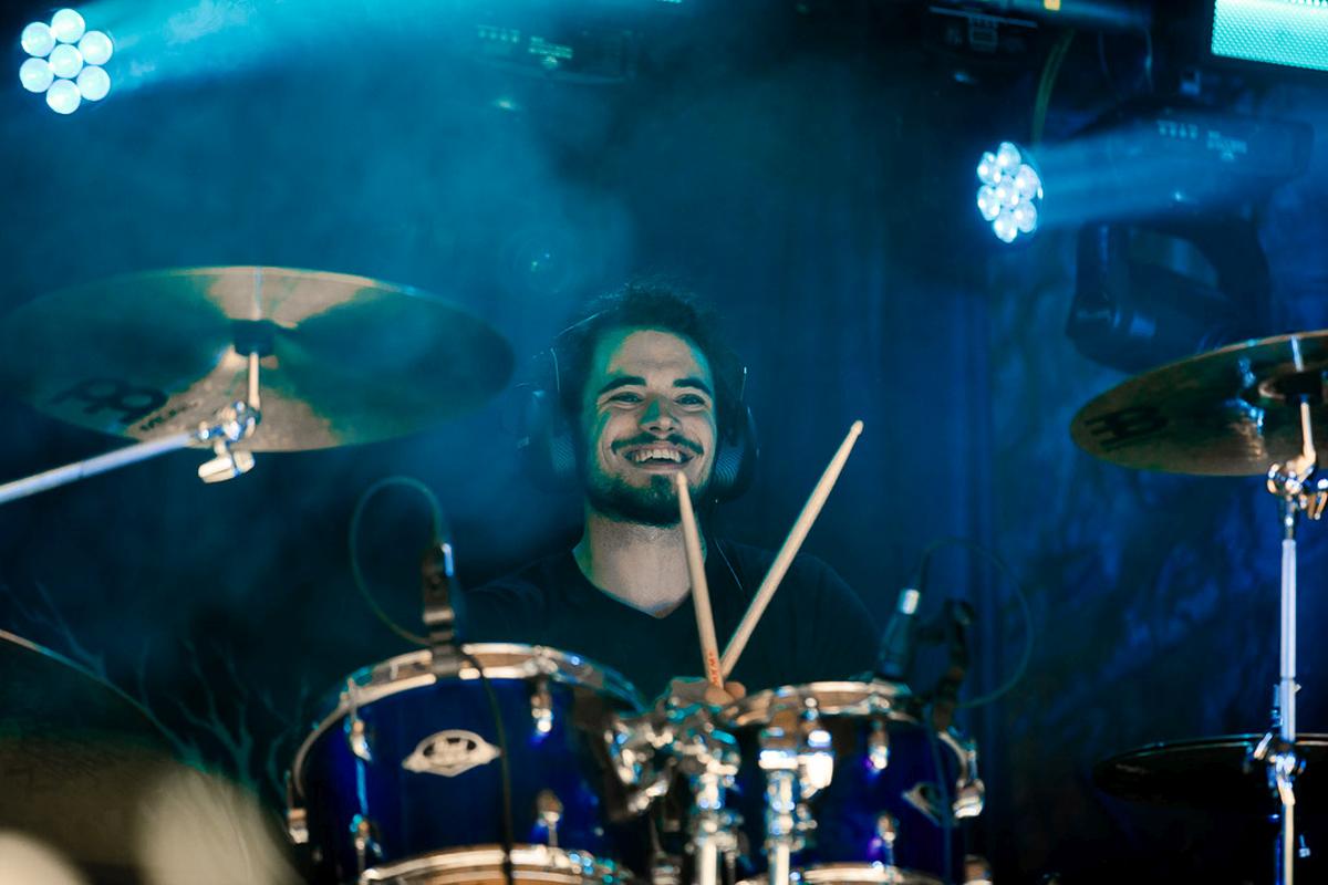 Das Heft kündigt Grimner gern mit den Satz "Jetzt wird es folkig!" und ich könnte es nicht besser beschreiben. Die Band nutzt eine Bandbreite von Folkinstrumenten für ihre Lieder, wobei die Flöte am häufigsten vorkommt und ein markantes Erkennungszeichen der Band ist. Dementsprechend habe ich ganz fest an die Metal-Götter gebetet, dass die Flöte bitte nicht untergehen möge und teilweise haben sie mich erhört. An einigen wenigen Stellen war die Flöte leider nicht oder nur schwer zu hören. Ein kleiner Wehmutstropfen bei einem sonst gelungenen Auftritt. Nach dieser ganzen Bewegung ein kühles Bier und dann ab in die Tiefen des Abgrunds.