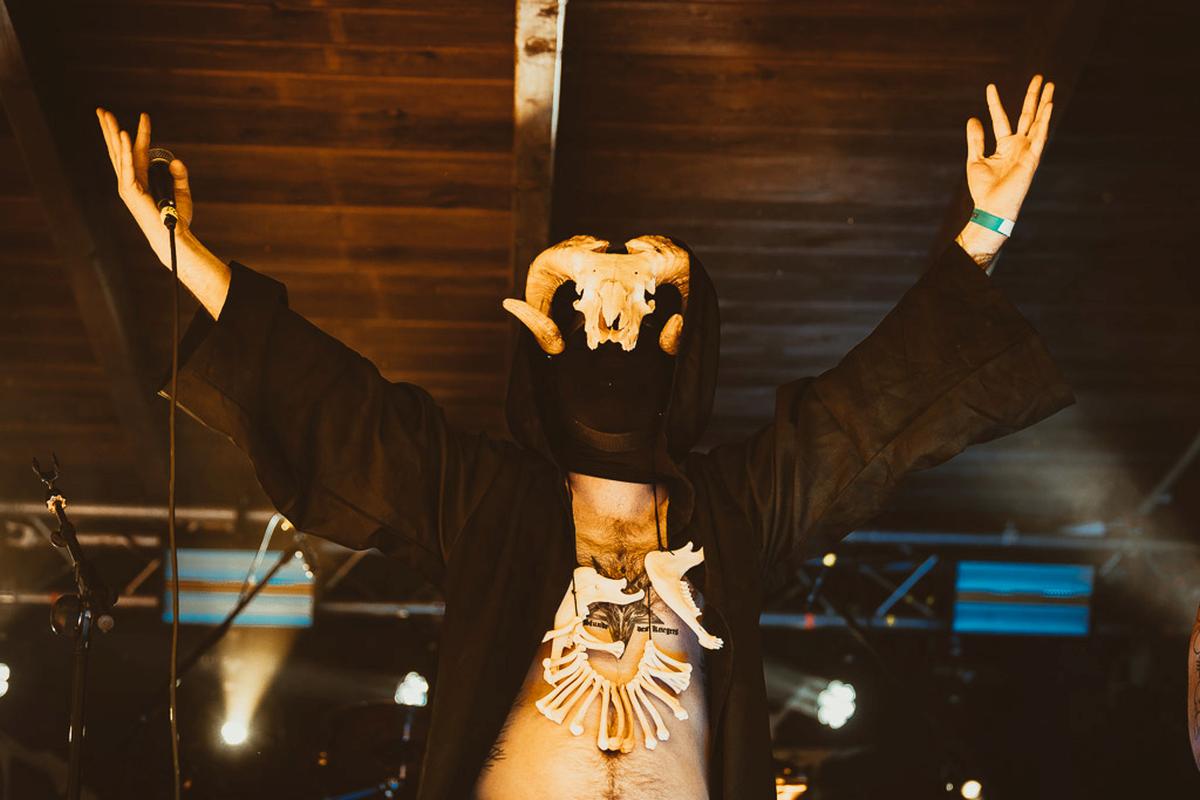 Danach wird es richtig, richtig finster mit Boötes Viod. Die Band habe ich im vorigen Jahr auf dem Wolfszeit Festival kennengelernt und dort habe ihren kalten, fast klinischen Black Metal schätzen gelernt. Letztes Jahr hat mir ihr Bühnen-Outfit, schwarz in schwarz vermummt, echt gefallen und dieses Jahr gab es ein kleines Upgrade in Form von weißen Aplikationen. Der Frontmann hingegen darf Knochen auf dem Kopf und um seinen Hals tragen. Modisch sind die Jungs von Boötes Void und da vergisst man gerne mal, welchen Effekt das Äußere einer Band auf den Gesamteindruck hat. Musikalisch waren sie wiedermal sehr gut undich empfehle sie gerne weiter.