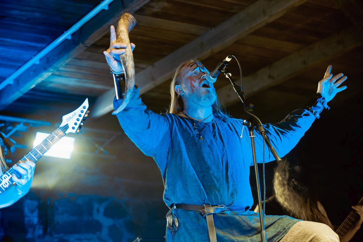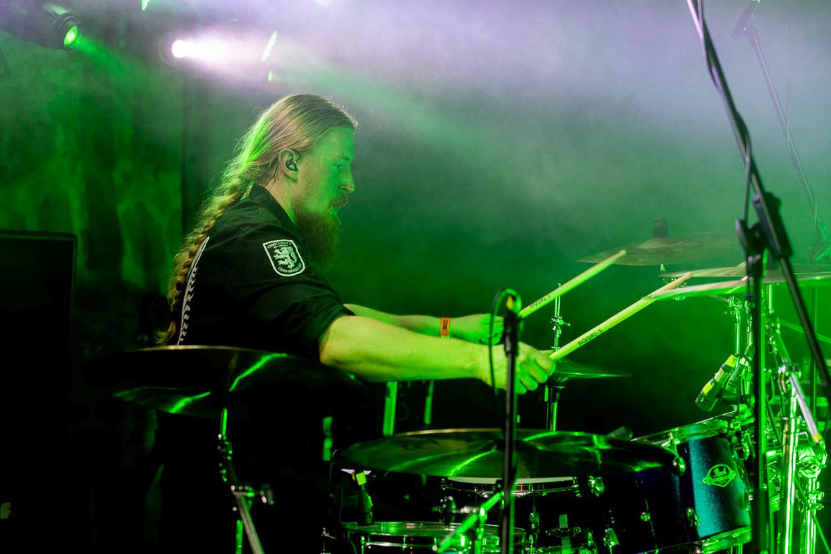 Die Eröffnungsband für den Freitag sollte eigentlich die Band Nordic Raid sein, aber die musste frühzeitig absagen. Dafür ist recht spontan die norddeutsche Band Thjodrorir eingesprungen. Über eine gute Portion Pagan-Metal als Vorspeise beschwere ich mich nie und sie haben als erste Band einen guten Auftritt hingelegt. Musikalisch bieten sie ein solides, kräftiges Stück Musik und sie haben sich merkbar alle Mühe gegeben. So können sie bereits die ersten Zuschauer vor der Bühne mit Leichtigkeit in Bewegung setzen und mit ihnen interagieren, was die gute Bühnenpräsenz und Erfahrung des Frontmann beweist. Zu meinem Glück durfte ich den Drummer der Band vorzeitig kennen lernen und habe erfahren das dieser Auftritt auch sein erster Auftritt mit der Band ist. Er ist wirklich aufgeregt, aber dafür hat er seinen Einsatz mit Bravour erledigt. Das nenne ich einen schönen Anfang am Freitag.