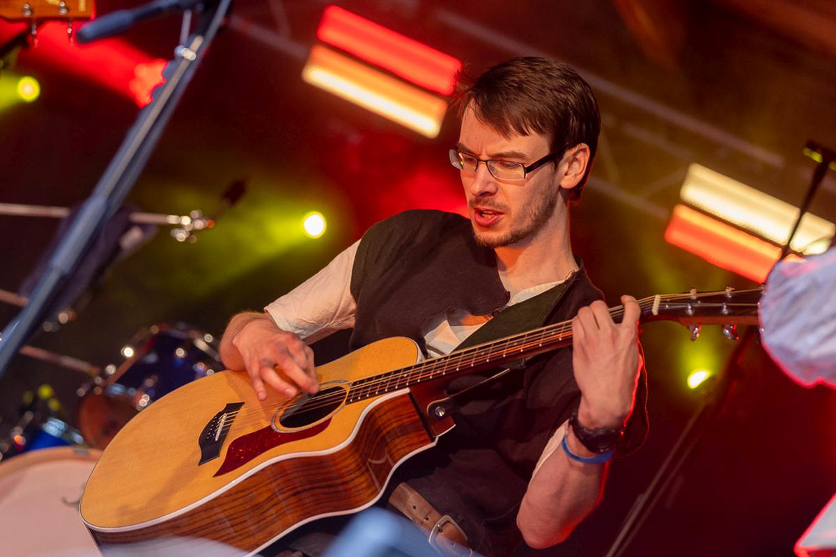 Der Auftakt liefert diesmal die Band Baumbart und auch diese Band ist für mich nicht unbekannt. Ich habe sie als Auftakt für das Wolfszeit Festival 2019 erlebt. Damals fand ich die Idee, diese Band mit ihrem Fanatsy-Folk alsWarm-Up schon echt unterhaltsam, deshalb begrüße ich die Entscheidung vom Dark Troll am Samstag mit Baumbart zu beginnen. Die Tänzer und Tänzerinnen unter den Zuschauern haben sich vor der Bühne versammelt und zusammen mit der verspielten Musik ergibt das ein echtes Erlebnis, was man so selten auf einem Black- und Pagan Metal-Festival erlebt. Später tobt wirklich ein Kampf auf und vor der Bühne, aber zuerst erleben wir Seefahrerromantik mit Akkustikinstrumente.