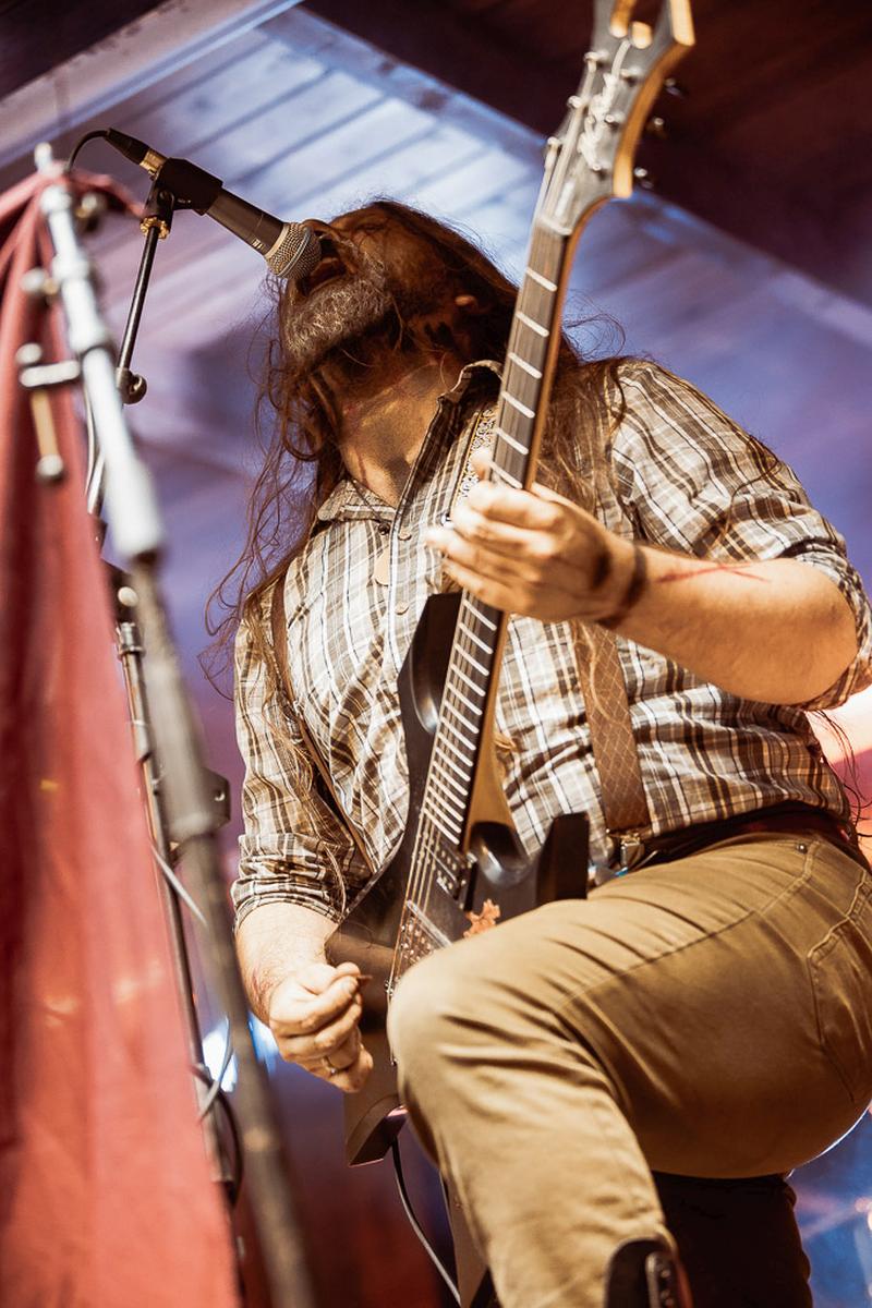Als gebürtiger Thüringer schwillt mir beim Klang von Mosaic und ihrer Supreme Thuringian Folklore ein wenig die Brust an. Ein wenig Heimat in Black Metal gekleidet und schon kann für mich ein gutes Konzert beginnen. Einen kleinen Pluspunkt haben sie sich wegen der Herkunft verdient, aber den großen Pluspunkt gebe ich ihnen für ihre Bühnendarstellung und die Grundidee hinter der Band. Mit graugefärbten Haaren steht der Gründer von Mosaic, Martin von Falkenstein, dort und präsentiert Black Metal mit traditionellen Folk-Elementen und bietet eine romantisierte Darstellung vom Thüringen der Großeltern und Ur-Großeltern und ist mit diesem Thema ein seltenes Gut im deutschen Black Metal.
