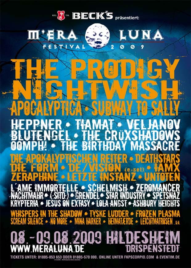 Alexander Veljanov, Apocalyptica, Ashbury Heights, Blutengel, Deathstars, DeVision, Die Apokalyptischen Reiter, Faderhead, Frozen Plasma, Grendel, Heimataerde, IAMX, Jesus on Extasy, Krypteria, Leichtmatrose, Letzte Instanz, Lme Immortelle, Lola Angst, Mina Haker, Nachtmahr, Nightwish, No More, Oomph!, Peter Heppner, Schelmish, Scream Silence, SITD, Spetsnaz, Star Industry, Subway To Sally, The Birthday Massacre, The Crüxshadows, The Prodigy, Tiamat, Tyske Ludder, Untoten, Welle Erdball, Whispers In The Shadows, Zeraphine, Zeromancer