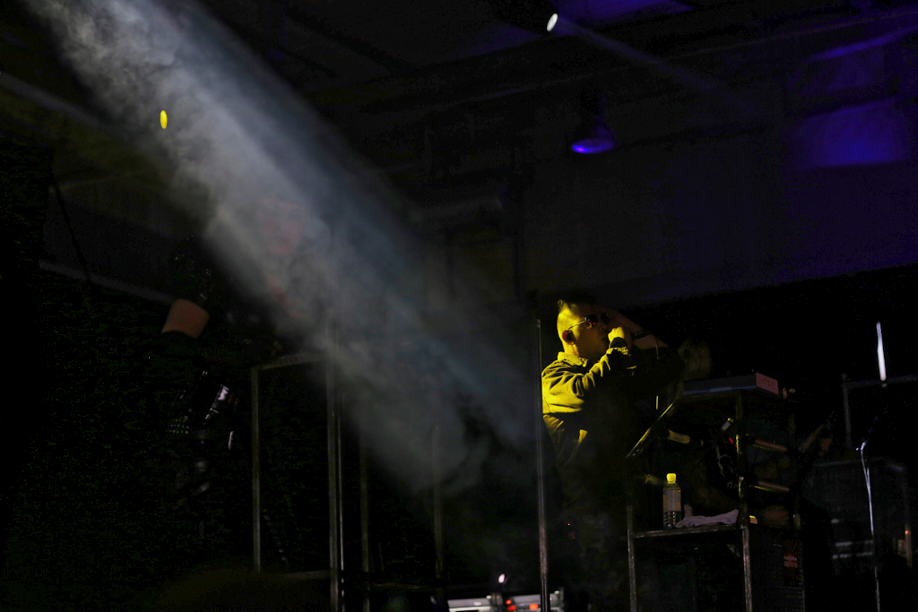 Später lockten dann die Kanadier von FRONTLINE ASSEMBLY in den übervollen Hangar. Harte Beats, ein dichtes Samplekonstrukt und Bill Leebs Gesang bildeten eine Zeitreise durch die 30 jährige Bandgeschichte. Die volle Anhängerschafft in der angewärmten Halle war mehr als dankbar.