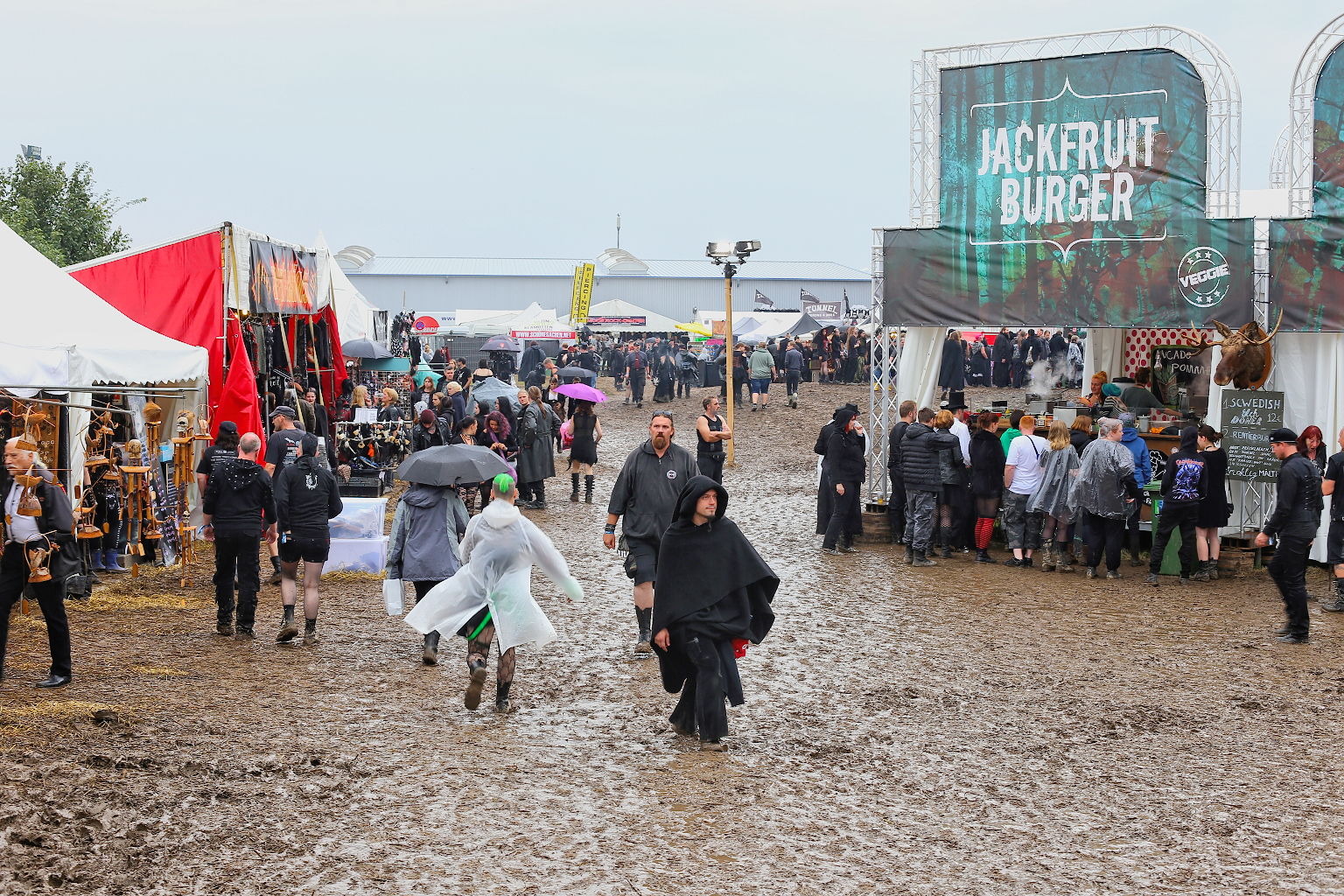 Der Regen hatte das M´era Luna 2017 fest im Griff. Bereits vor Beginn des 17. Familientreffens der Schwarzen Szene hatte Starkregen das Festivalgelände am Hildesheimer Flugplatz dermaßen aufgeweicht, dass sich die Anreise schwierig gestaltete. Festgefahrene Wohnmobile und die darauffolgende Rolle rückwärts der Veranstalter, die weiteren Anreisenden spontan umzuleiten, bescherten ganz Hildesheim verstopfte Straßen und der A7 zudem einen 10 km Stau. Am Abend gab es zur Entlastung die mehr als gut besuchte Lesung von Markus Heitz, Alexander Wohnhaas (Megaherz) und Christian von Aster. Anschließend bat das M´era Luna-Team zur obligatorischen Warm-Up Disko.
