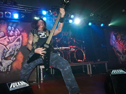 Von Destruction gab's erstmal nur den obligatorischen Mad Butcher zu sehen: Mit einer Kettensäge bewaffnet posierte er eine Weile auf der Bühne (und das nicht zum letzten Mal in dieser Show), bevor dann die eigentliche Band das Heft in die Hand nahm. Die gerade aus Argentinien zurückgekehrten Thrash-Urgesteine brachten so ziemlich alles auf die Bühne, was ihre Fanschar für gewöhnlich sehen möchte: Klassiker wie "Nailed to the Cross", aber auch den Titeltrack "Devolution" des gleichnamigen, frisch erschienenen Albums, einen deftigen Moshpit und in den Pausen etwas netten Smalltalk mit dem Publikum. Damit bereiteten Destruction - für viele sicher eine der Headliner-Bands des Festivals - meinem Abend einen denkwürdigen Ausklang (den späteren Auftritt von Endstille habe ich leider nicht mehr mitbekommen - dafür war mir der Qualm in der Halle irgendwann zu dick).