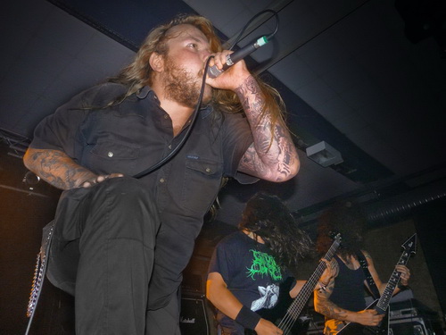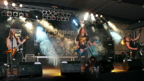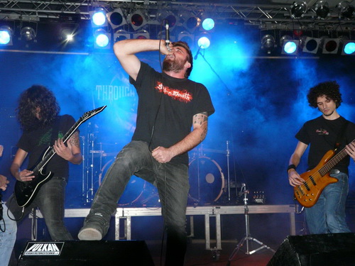 Den ungeliebten Job des ersten Auftritts des Festivals erledigten diesmal Through Your Silence. Die fünfköpfige Band aus Italien musste mit einem mageren Publikum von gerade einmal 25 Köpfen auskommen, was jedoch nichts an ihrem energischen Auftreten änderte: Ohne Ansagen, dafür mit umso mehr Spielfreude und Einsatz bot man gefälligen MeloDeath mit harten Brüchen zwischen Knüppel- und melodischen Parts. Gerade Letztere fielen zwar oft etwas lahm für meinen Geschmack aus; dennoch machten Through Your Silence den wenigen Anwesenden ordentlich Dampf und boten einen guten Einstieg in ein überwiegend Death- und Thrash-lastiges Festival.