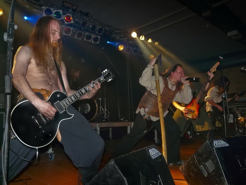 Ähnlich leer, aber deutlich lahmer war's dann leider bei Gwydion. Dabei lag das weniger an der satten Portion bisweilen melodischen, aber gleichzeitig sehr kraftvollen Folk/Viking Metals, den die sechs Portugiesen servierten. Ohne einen zweiten Mosh-Wettbewerb konnte sich aber trotzdem niemand so richtig durchringen, die müde Mähne in Bewegung zu setzen. Dennoch spielten Gwydion ihre knappen fünf bis sechs Titel, deren Akkordeon-Einlagen und Atmosphäre mich etwas an Turisas erinnerte, energisch herunter - und erkundigten sich nach dem Gig verwundert im Publikum, woran es denn gelegen habe. Eines konnte man ihnen aber versichern: An ihrem Konzert mangelte es sicher nicht.