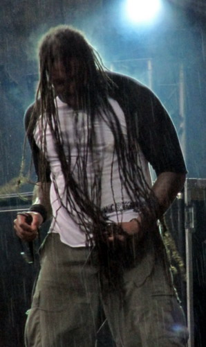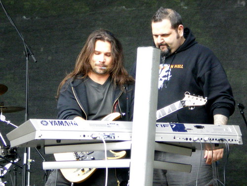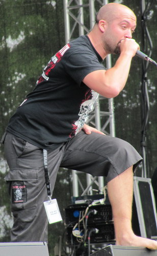 Mit Sadist betrat einer der eher außergewöhnlichen Extreme Metal-Acts die Bühne. Seit Bandgründung im Jahr 1990 hat sich das italienische Quartett musiksalisch beständig weiterentwickelt und inzwischen zu einem hörbar eigenständigen Stil mit Versatzstücken aus Death, Industrial und Core, angereichert mit viel Groove, gefunden. Da viele der Anwesenden mit dem Bandnamen offenbar nicht viel anfangen konnten, hatten sie sich nach dem Vader-Gig schnell wieder über das Gelände verteilt, sammelten sich jedoch zum Teil bald schon wieder vor der Second Stage, durch die ersten paar Takte angelockt. Zwar machten die vielen technisch anspruchsvollen Takt- und Tempowechsel das Mitbangen etwas schwer, erfreuten dafür aber umso mehr das Ohr. Besonders beeindruckt hat mich der Gitarrist, der parallel zu seinem Instrument und unter einiger Verrenkung durchaus gekonnt noch das Keyboard bediente. Aufgrund der speziellen Ausrichtung der Band ist es daher verzeihlich, dass die sporadischen Animationsversuche von Frontmann Trevor allesamt im Matsch versanken - der außergewöhnliche (und außergewöhnlich gute!) Sound gab hier den Ausschlag.
