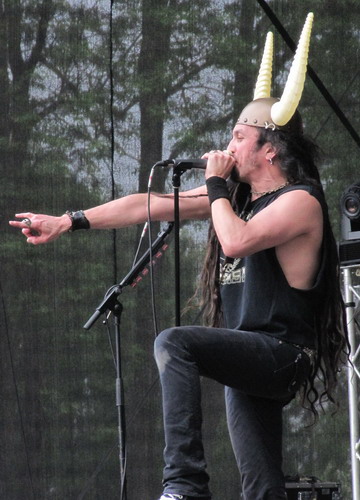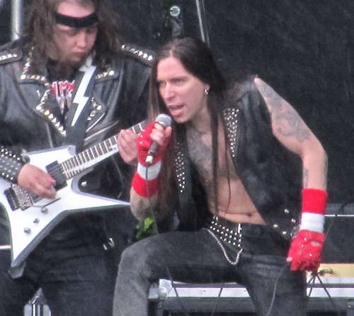 Eher durchschnittlich kamen Steelwing daher - wenn man äußerst gnädig ist und das 80er-Jahre-Hairmetal-Gepose mal beiseite lässt blieb musikalisch eine halbwegs interessante, mal mehr, mal weniger offensichtliche Kopie von Iron Maiden. Ob sie auf dem Metalfest neue Fans gefunden haben kann man mal aufgrund dessen Ausrichtung in Frage ziehen - ein mittelprächtiger Haufen Menschen schien sich jedenfalls über einen mittelprächtigen "Exoten" durchaus begeistern zu können.