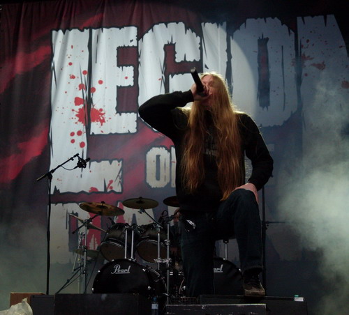 Ouh Yeah! Legion Of The Damned haben echt was auf der Bühne aufgeboten. Mit einem lauten Schlag und geilen Pyroeffekten sprangen sie vor die Meute und hauten auch gleich ihren geradezu legendären Song "Legion Of The Damned" rein. In fast einwandfreiem Deutsch wurden die Fans wieder reanimiert und dem Festival neues Leben eingehaucht. Es wurde fleissig gebangt, gemosht und geschubst dass es eine Freude war zuzusehen. Erhobene Fäuste ohne Ende zeugten von der Begeisterung der Metaller. Knüppel wie "Cult Of The Dead", "Bleed For Me" und Taste Of The Whip" sorgten für fliegende Mähnen und den einen oder anderen Moshpit. "Sons Of The Jackal" erntete sogar eine schöne Wall of Death mit anschließendem Moshpit, der sich bis zu "Werewolf Corpse" durchzog, um dann in lautes Mitgröhlen umzuschlagen. Mit Feuer, Wut und Hingabe haben diese Hunde dem Publikum gegeben was es wollte - Scheiss auf 's Wetter, jetzt wird gemosht!!!