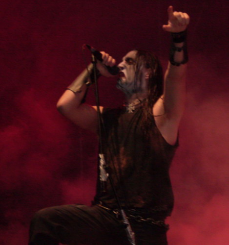 Hm... es riecht nach Kinderschminke, Tod und Leder? Das können nur Marduk sein! Und jawohl, so ist es auch. Mit typischem Corpsepaint, schwarz bekleidet und keifend, dass man kein Wort versteht, tobten die 3 Schweden über die Stage und gingen lustigerweise in rosa Nebelschwaden unter. Was nämlich nicht bedacht wurde war, das rotes Licht kombiniert mit weißem Nebel rosa ergibt, und ich wage zu bezweifeln, dass das so gedacht war. Außer natürlich rosa ist die neue Farbe Satans und seiner Divisionen. Die Teilnahme der Anwesenden war eher bescheiden, trotz der Versuche etwas Stimmung zu machen. Zu den Liedern können wahrscheinlich nur absolute Fans etwas sagen, da ich zumindest nur wenige der Ansagen verstanden habe und auch ausführliche Recherchen mir da nicht weiter helfen konnten.