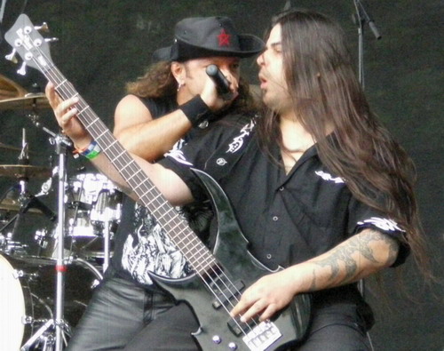 Die 4 Griechen von Suicidal Angels haben echt Pech gehabt. Nicht nur dass sie um 12 Uhr morgens spielten, nein, es regnete auch noch wie die Sau. Dem zum Trotz hatten sich einige Metalfans eingefunden, um den Thrashern zu huldigen, und diese gaben auch ihr Bestes. Bei "The Pestilence Of Saints" bekamen sie nach Aufforderung seitens des Sängers sogar einen Circle Pit spendiert - wenn er auch klein war und nur von kurzer Dauer. "Bloodthirsty" und "Beyond The Laws Of Church" waren echte Kracher und die Menge machte so gut mit wie es wetterbedingt möglich war. Man muss ihnen lassen, dass sie es versucht haben und dabei alles gaben.