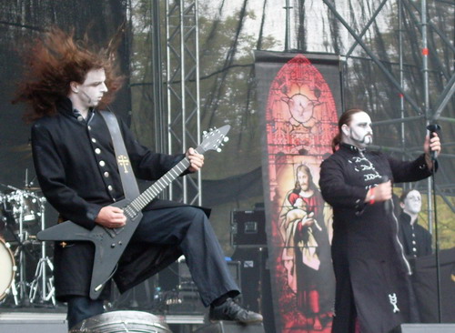 Das polnische Black/Death-Flaggschiff Behemoth übernahm anschließend das Kommando und präsentierte sich wie ihr Publikum in bester Verfassung - trotz des Dauerregens ließ sich letzteres den Spaß an der Musik nicht verderben und hielt über weite Strecken des Auftrittes gut mit, auch wenn wieder einmal einige intolerante Idioten es nicht lassen konnten, ihre leeren Bierbecher in Richtung Bühne zu pfeffern - aber irgendwie kannte man das ja schon vom letzten Jahr. Aufgefahren wurden größtenteils deathlastige, groovige Stücke à la "As above, so below", die zum kräftigen Haareschütteln förmlich einluden. Eines meiner persönlichen Highlights des Festivals!