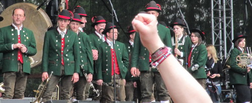 Wacken machte den Anfang, und nun glaubt jeder, mitziehen zu müssen: mit der Trachtenmusikkapelle Mining versuchte die Orga, zwischen all das düstere Schwemetall zur Auflockerung ein wenig Buntblech zu mischen. Während sie noch die Begrüßung durch Powerwolfs Attilla von der Nebenbühne aus nicht so recht zu interpretieren wussten, gelang ihnen das bei den dargebotenen Stücken umso besser, so schien es zumindest die Reaktion des Publikums nahezulegen, auch wenn ich persönlich als Nicht-Österreicher weder mit der Tiroler Landeshymne noch mit dem restlichen Humpfdada (teilweise waren auch kaum mehr zu erkennende Rockklassiker darunter) viel anzufangen wusste. Aber Hauptsache, der Spaßfaktor stimmte - und das stand außer Zweifel.