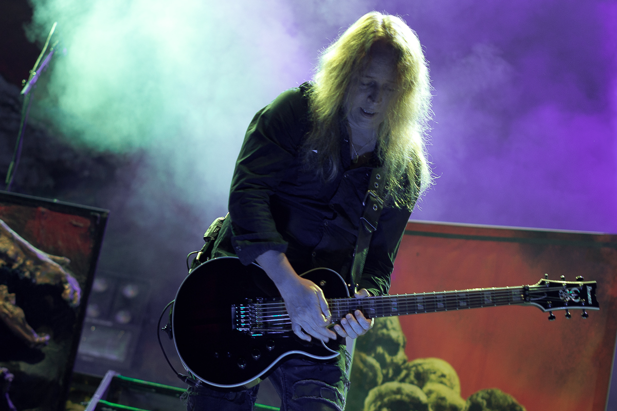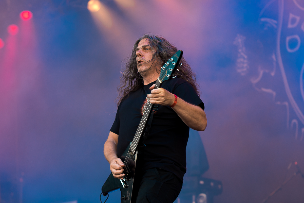 OBITUARY legen einen einen mächtig-gewaltigen Auftritt hin und grooven sich nackebrecherisch durch einen Set von Old-School-Klassikern. Aber bei allem Engagement, mit dem die Florida-Deather ihre Granaten unters Volk bringen, lassen sich zumindest bei mir gewisse Abnutzungserscheinungen bei der Darbietung der einfach gestrickten Tracks nicht verleugnen, so dass diese Band für meine Begriffe viel zu hoch im Line-Up getacktet ist.