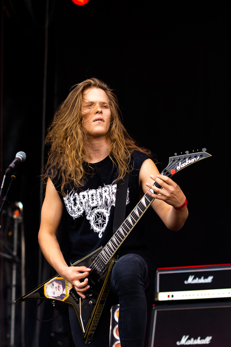Mit GOD MACABRE finden einmal mehr ein paar verlorene Schweden-Death-Söhne aus den Neunzigern den Weg zurück auf die große Szene-Bühne. Laut Programmheft historisch wertvoll, knallt man den Anwesenden mal die volle Metal-Zone-Breitseite um die Ohren und bereitet den skandinavischen Boden für alles, was da an diesem Abendnoch kommt und hinterlässt insbesondere den Nordeuropäern ein gut bestelltes Feld.(JD) Wenn man die Qualität der Alben betrachtet, sind SKELETONWITCH sträflich unterbewertet. So müssen die Amis auch schon früh bei Tageslicht auf die Hauptbühne. Was sie bieten ist einmal mehr absolute Klasse. Die Mischung aus Thrash, Black und traditionellem Metal ist einfach nur überzeugend. Live gilt das, was auch die Platten so stark macht: Skeletonwitch sind mächtig aber nicht pathetisch, melodiös aber nie nett. So soll es sein. Dazu kommt noch motiviertes Stageacting und der Verzicht auf langes Gelaber und schon hat man einen großen Gig. Für mich bieten Skeletonwitch den besten Auftritt des ersten Tags. Warum die Band vor den gehypten Atlantean Kodex auf die Bretter musste ist mir ein Rätsel. Die reißen danach die Latte, die durch Skeletonwitch aber auch sehr hoch gelegt wurde.(Tr) Die Franken von ATLANTEAN KODEX sind die Band der Stunde und spätestens seit ihrem aktuellen Output eine der angesagtestens Bands der Stunde, die mit ihrer ureigenen Mixtur aus klassischem Heavy Metal, Doom und Progressive-Elementen über Subgenre-Grenzen hinaus vereint und überzeugt. Das unterstreicht die Band zwischen all den Todeskapellen eindrucksvoll und setzt einen ersten ebenso krafvollen wie einfühlsamen Kontrastpunkt im Programm, der vor Heaviness nur so strotzt. Mehr davon.