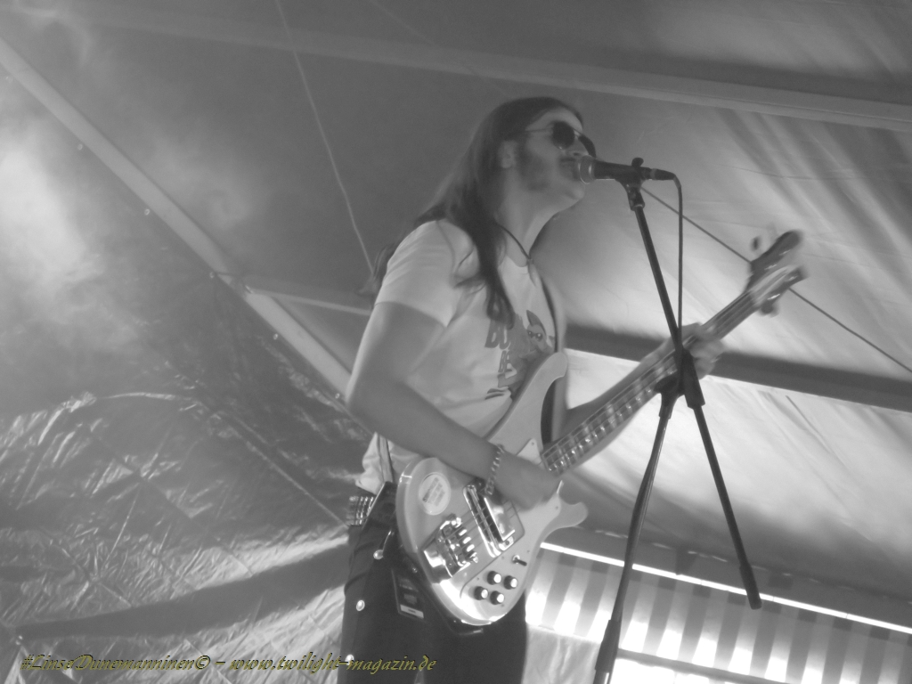 In diesem Jahr geht es jedoch mit ASOMVEL gleich morgens um zehn gleich wieder so richtig in die vollen. Und einen schöneren, vor allem aber besseren Tribut an den hochverehrten, verstorbenen Lemmy hätten Mieze und Boy kaum aus dem Hut zaubern können. Das britische Power-Trio existiert in wechselnden Besetzungen bereits seit 1993 und atmet den Geist von Motörhead in beängstigender Art und Weise. Und das liegt nicht nur an der Tatsache, dass man mit Sänger/Basser Ralph einen Frontmann in den Reihen hat, der in allen Belangen frappierend an den "jungen" Godfather of Rock ´N´Roll erinnert, inklusive Rickenbacker Bass. Erfreulicherweise sind die drei für einen Rip-Off musikalisch einfach zu gut und Ralph einfach zu authentisch, dass man es sich mit eigenen Krachern der Marke, "The Nightmare Ain´t Over", "Kamikaze" oder "Railroaded" während des gesamten, gut anderthalbstündigen(!) Sets locker leisten kann, auf Cover der offenkundigen Vorbilder zu verzichten. Die Stimmung im Zelt kocht folglich, bevor der Tag richtig begonnen hat, der Durst ist groß, das Bier schmeckt und alle sind zufrieden. Asomvel dürfen gerne wieder kommen. Chapeau an die Veranstalter, dass sie diese Band aufgetrieben haben. (JD) Nachdem ich meinen Körper bei Asomvel und RECTAL SMEGMA so gar nicht davon überzeugen konnte, vor die Bühne zu gehen, geht´s weiter mit IRON REAGAN. Die Band konnte ich bisher gar nicht einordnen,aber beim ersten Ton des Sängers ist klar: Municipal Waste - Sänger und die Mucke geht in die gleiche Richtung, wenn auch ´nen Zacken mehr Hardcore mit reingemischt ist. Somit mähen sie mir auf jeden Fall die letzten Schlaffalten aus dem Gesicht und mit dem Cannibal Corpse - Klassiker "A Skull Full Of Maggots" legen sie auch ´ne perfekte Covernummer hin. Der Song komplett im Thrash Gewand klingt wirklich sehr, sehr geil!(LT)