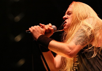 Nachdem die Sonne das Gelände in den letzten Stunden mehr als verwöhnt hat verspricht der Himmel gegen Mittag Abkühlung, die wir in diesem Jahr dankbar annehmen. Es tröpfelt, während sich IRATE ARCHITECT anschicken, den Freitag zu eröffnen. Die Jungs überraschten mich auf ihrem Debut "Visitors" durch eine komplexe Mischung aus Death Metal und Grindcore, die trotz aller technischer Finessen mit nachvollziehbaren Songstrukturen daher kommt. Auch auf der Bühne brauchen Irate Architect nicht hinter ihren musikalischen Paten Dying Fetus oder Misery Index zu verstecken. Die Hamburger holen auch den letzten Langschläfer mit ihrem brutalen Sound aus dem Zelt und sorgen damit für den "Hallo-Wach-Effekt". Selbst der Regen verzieht sich zwischenzeitlich.(JD) Hier braucht man nicht allzuviele Worte verlieren, diese deutschen Death-Metaller DEFLORATION rollen alles nieder. Die Grooves sind niederschmetternd und alles ist im beständigen Wechsel zwischen Blast und Midtempo. Die Stimmung ist erste Sahne und an Publikum mangelt es während dieser Band auch nicht. Fazit: Hammer! (DS) TYRANT aus Schweden machen mit ihrem rohen Sound dem Black Metal nun wieder alle Ehre und bieten eine solide Vorstellung ohne wirklich zu glänzen. Ein Achtungserfolg, welcher in punkto Eigenständigkeit im musikalischen Sinne in Zukunft ruhig noch untermauert werden darf. (CP) Er ist zurück gekehrt. Nachdem Martin van Drunen im letzten Jahr mit Asphyx ein grandioses Comeback feierte, steht der Ausnahmesänger heuer mit seiner neuen Kriegsmaschinerie
