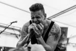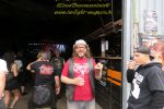 Aber nicht nur das Wetter sondern auch der Verkehr wirbeln den Zeitplan zum Auftakt mächtig durcheinander. Während Black Mood und die Kamikaze Kings noch im Stau feststecken beginnt der etatmäßige Headliner GORILLA MONSOON gegen 21 Uhr als Opener seinen Set, nachdem Sänger/Gitarrist Jack die Frage des Tontechnikers, ob man denn nach dem Einzel-Soundcheck noch einmal einen Song gemeinsam antesten wolle, mit einem verschmitzten Lächeln und einem lapidaren "NÖ" quittiert hat. Hier sind mittlerweile nicht einfach alte Hasen, sondern gestandene Silberrücken des deutschen Undergrounds am Werk, die um ihre Stärken und ihr Können wissen. Kraftstrotzend und mehr als souverän trommelt das Quartett dem Publikum seinen animalisch groovenden Höllenrock mit Doom-, Südstaaten und Stoner-Einflüssen vor die Brust. Das kann nach über anderthalb Dekaden in dieser Intensität keine andere deutsche Band. Das Zelt ist gerammelte voll, wie der Osten sagt, während draußen der nächste Platzregen niedergeht, die Pfützen mehr, größer und tiefer werden, das Lagerfeuer kaum brennen will und die Getränke-Beschaffung mangels Bar im Zelt bei einem Sprint quer über das "Infield" des Protzen Open Airs zu einem feuchtfröhlichen Vergnügen der anderen Art wird.