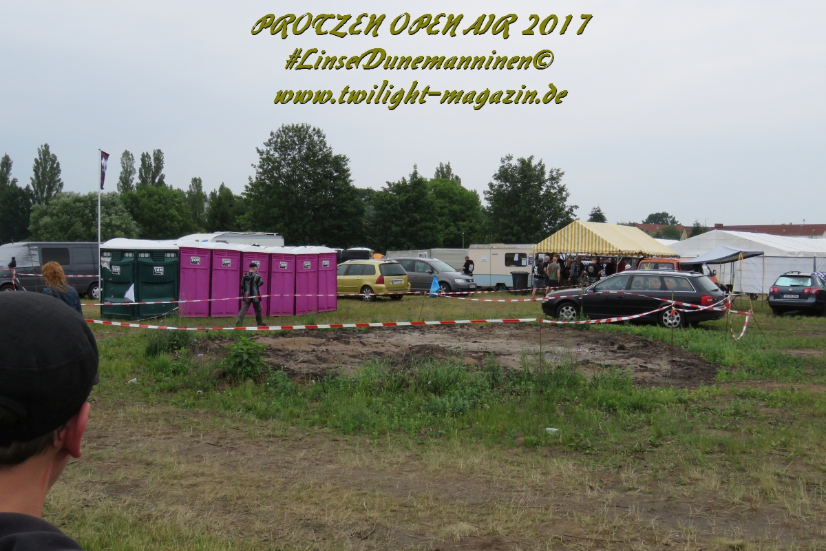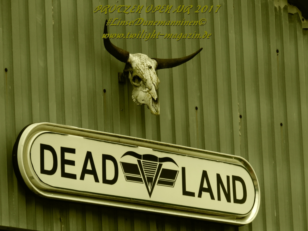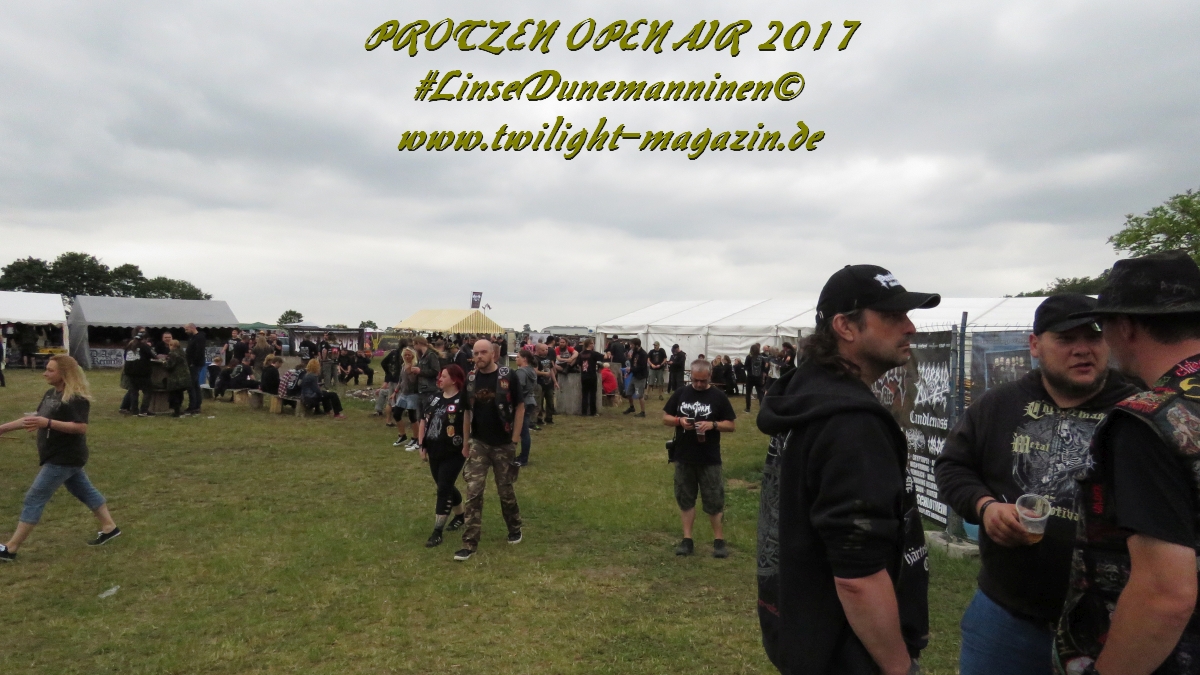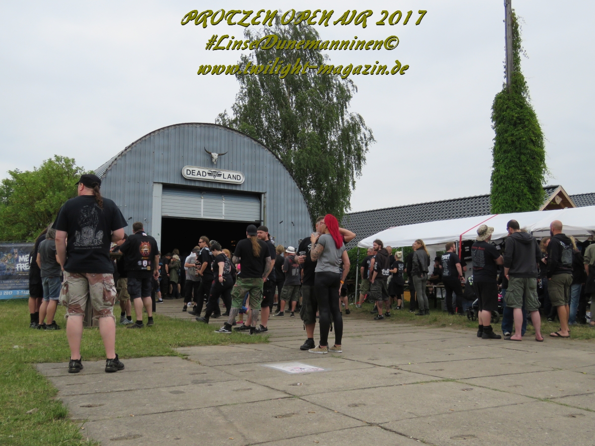 Puh, 20 Jahre Protzen Open Air, da lässt sich sogar der Deutsche Wetterdienst nicht lumpen. Mit seiner Unwetterwarnung für den Kreis Ostprignitz-Ruppin soll er am heutigen Anreisetag Recht behalten. Erste Vorboten machen sich bereits in Höhe Magdeburg auf der Warschauer Allee, besser bekannt als Autobahn 2, bemerkbar, als sei es der Leibhaftige höchst selbst, der mit jedem Kilometer den Himmel ein wenig mehr verfinstert und eine bleierne, alles erdrückende Schwüle unaufhaltsam durch die Lüftungsschlitze meines Gefährts zu schicken scheint. Auf dem letzten Viertel meiner bis dahin reibungslos verlaufenen Anreise wähne mich schon fast in Sicherheit und freue mich schon, mein Zelt vielleicht doch noch vor der großen Flut aufbauen zu können, als mich der Stau-Troll kurz vor dem Dreieck Werder erwischt, um mich danach unmittelbar in eine unheilvolle, schwarze Wetter-Wand zu treiben, in der Thor seinen Hammer ungestüm schwingt, Zeus Blitz um Blitz vom Olymp herab schleudert und Petrus sintflutartig seine Schleusen öffnet. Die letzten Kilometer auf der Autobahn werden zum Kampf mit den Elementen, der neben Fahrkunst auch die Vitalität der Bäume am Rande der Autobahn testet und die jahrelangen Planungen deutscher Siedlungswasserwirtschafts-Ingenieure mächtig auf die Probe stellt. Aber im Gegensatz zu den frühen Vögeln, welche sich seit den Morgenstunden auf dem Deadland-Gelände tummeln, befinde ich mich in meinem faradayschen Käfig wenigstens im Trockenen. Nach den letztjährigen Glutofen-Temperaturen nun also die Sintflut ausgerechnet zum Jubileum, denke ich mir noch, nachdem die Unwetter-Front vorüber gezogen ist und ich bei trockener aber kaum weniger grimmiger Witterung endlich das "Wohnzimmer" für die kommenden drei Tage erreiche. Ein schlechtes Omen? Weit gefehlt, das Wetter wird an diesem Wochenende zwar äußerst launisch und wechselhaft bleiben aber Crew, Bands und Fans kommen nicht nach Protzen, um Trübsal zu blasen, sondern um den Heavy Metal zu zelebrieren, zu feiern und zu huldigen. Und da ist für (schlechtes) Wetter nun mal kein Platz.