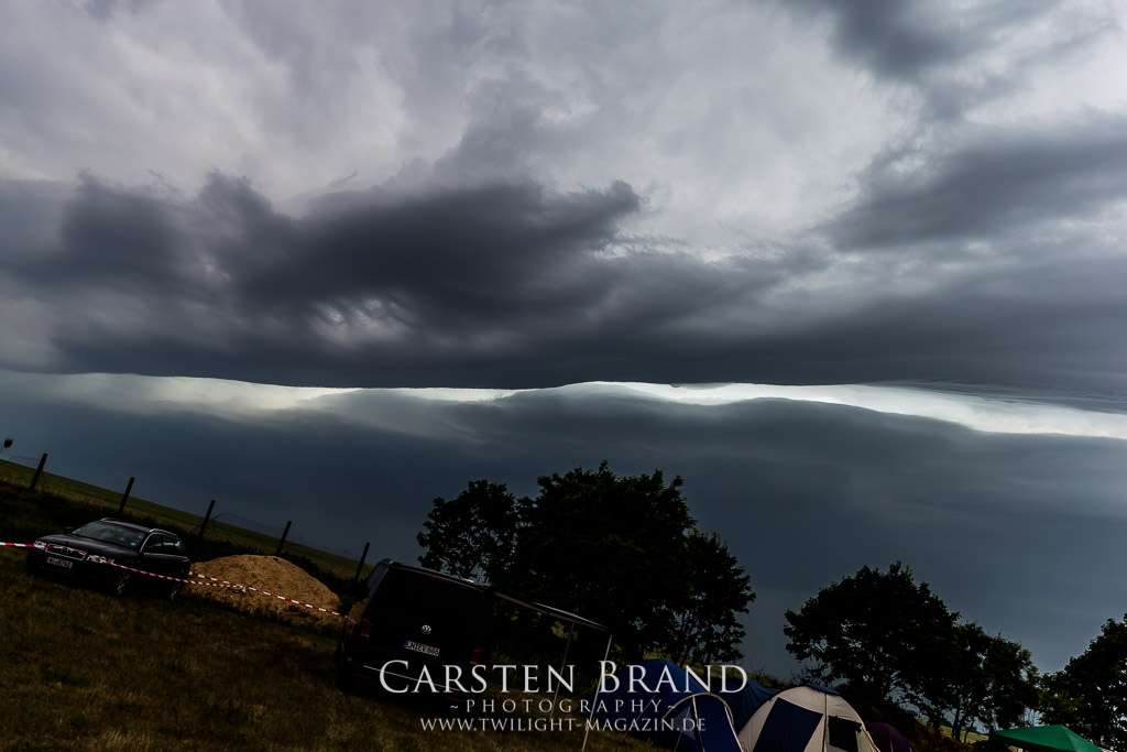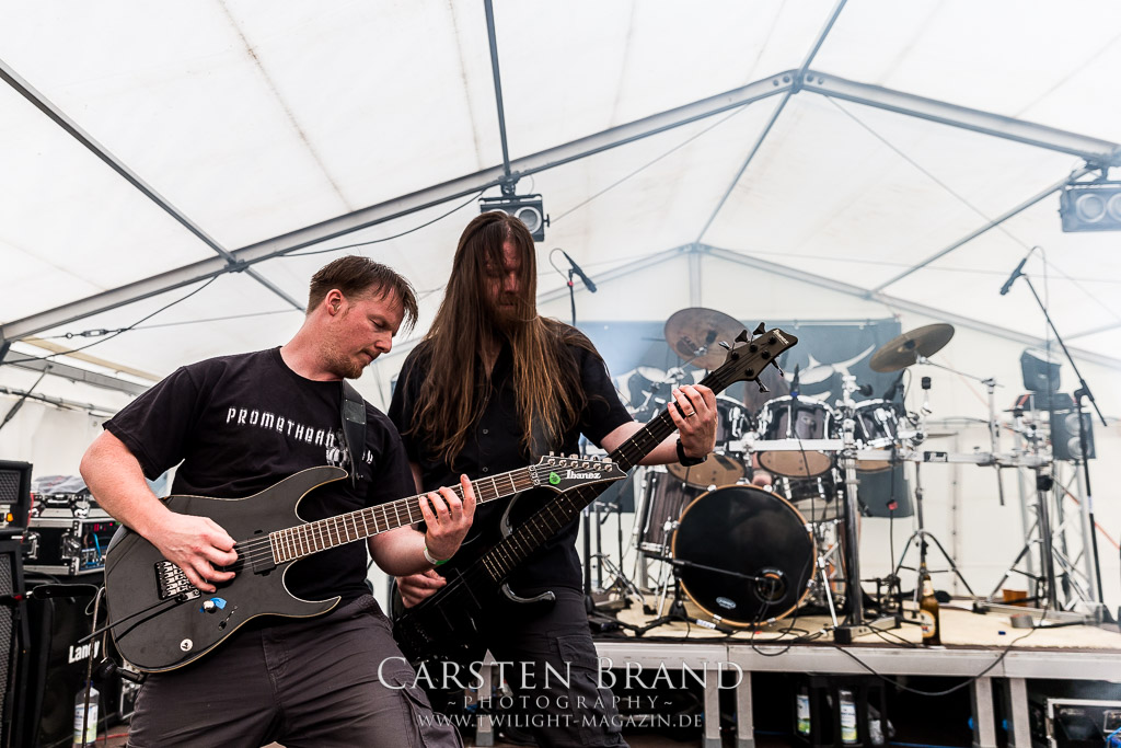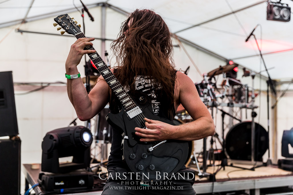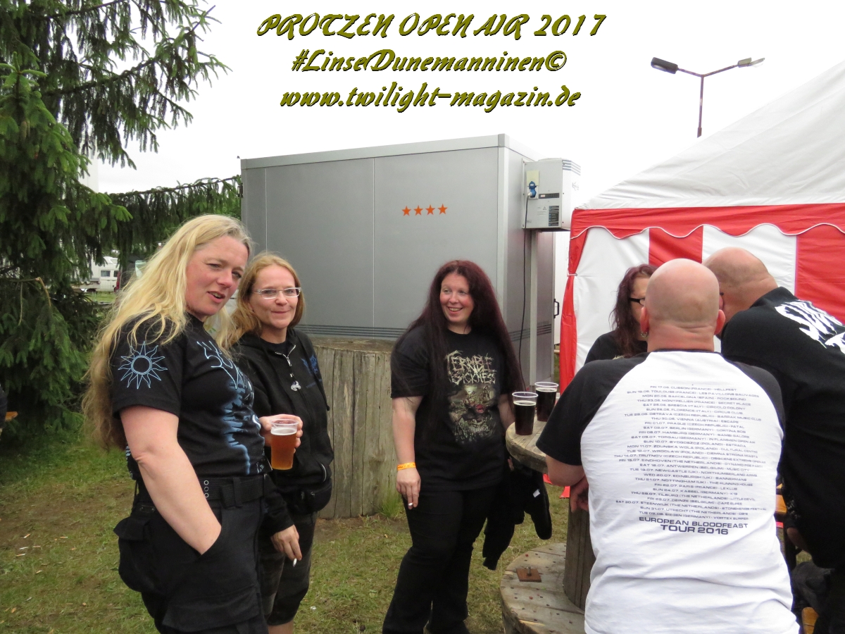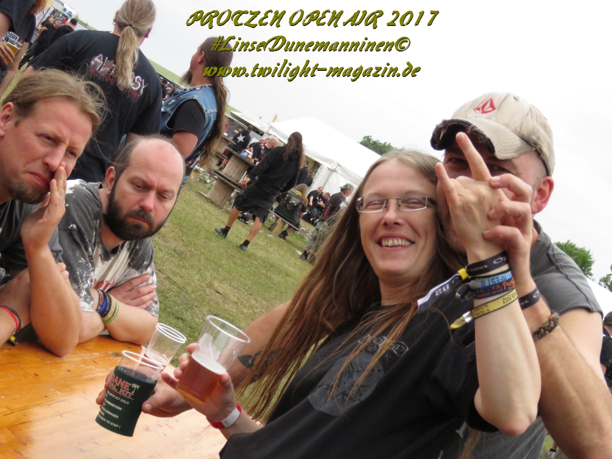 Puh, 20 Jahre Protzen Open Air, da lässt sich sogar der Deutsche Wetterdienst nicht lumpen. Mit seiner Unwetterwarnung für den Kreis Ostprignitz-Ruppin soll er am heutigen Anreisetag Recht behalten. Erste Vorboten machen sich bereits in Höhe Magdeburg auf der Warschauer Allee, besser bekannt als Autobahn 2, bemerkbar, als sei es der Leibhaftige höchst selbst, der mit jedem Kilometer den Himmel ein wenig mehr verfinstert und eine bleierne, alles erdrückende Schwüle unaufhaltsam durch die Lüftungsschlitze meines Gefährts zu schicken scheint. Auf dem letzten Viertel meiner bis dahin reibungslos verlaufenen Anreise wähne mich schon fast in Sicherheit und freue mich schon, mein Zelt vielleicht doch noch vor der großen Flut aufbauen zu können, als mich der Stau-Troll kurz vor dem Dreieck Werder erwischt, um mich danach unmittelbar in eine unheilvolle, schwarze Wetter-Wand zu treiben, in der Thor seinen Hammer ungestüm schwingt, Zeus Blitz um Blitz vom Olymp herab schleudert und Petrus sintflutartig seine Schleusen öffnet. Die letzten Kilometer auf der Autobahn werden zum Kampf mit den Elementen, der neben Fahrkunst auch die Vitalität der Bäume am Rande der Autobahn testet und die jahrelangen Planungen deutscher Siedlungswasserwirtschafts-Ingenieure mächtig auf die Probe stellt. Aber im Gegensatz zu den frühen Vögeln, welche sich seit den Morgenstunden auf dem Deadland-Gelände tummeln, befinde ich mich in meinem faradayschen Käfig wenigstens im Trockenen. Nach den letztjährigen Glutofen-Temperaturen nun also die Sintflut ausgerechnet zum Jubileum, denke ich mir noch, nachdem die Unwetter-Front vorüber gezogen ist und ich bei trockener aber kaum weniger grimmiger Witterung endlich das "Wohnzimmer" für die kommenden drei Tage erreiche. Ein schlechtes Omen? Weit gefehlt, das Wetter wird an diesem Wochenende zwar äußerst launisch und wechselhaft bleiben aber Crew, Bands und Fans kommen nicht nach Protzen, um Trübsal zu blasen, sondern um den Heavy Metal zu zelebrieren, zu feiern und zu huldigen. Und da ist für (schlechtes) Wetter nun mal kein Platz.