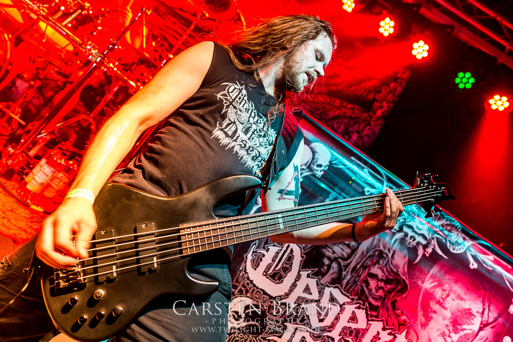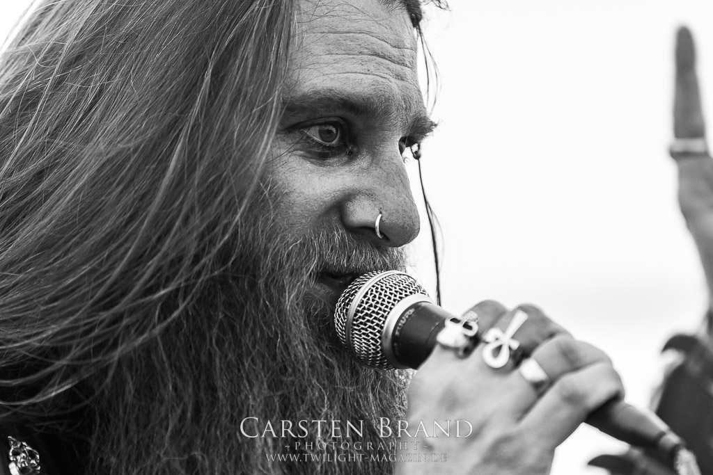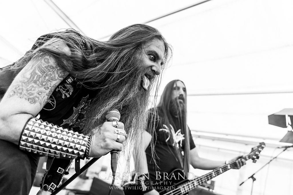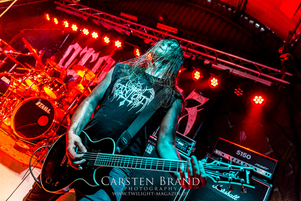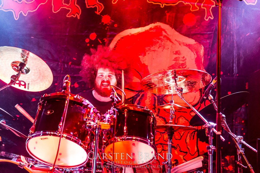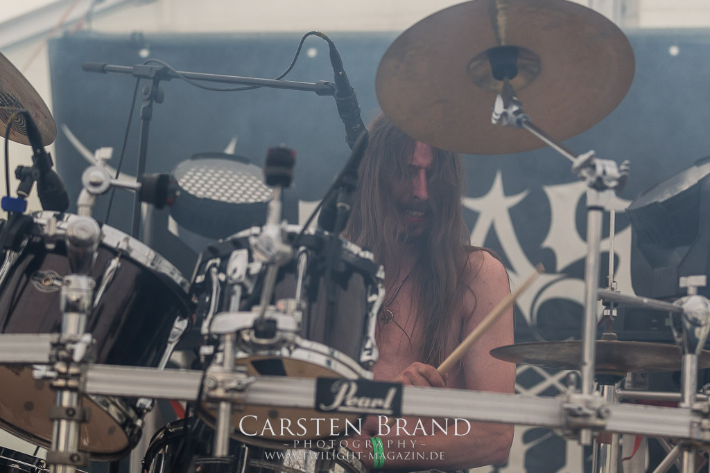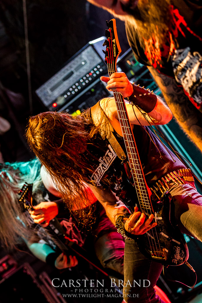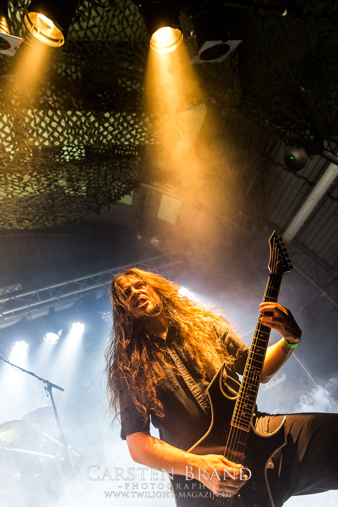 Die Magdeburger TORTURIZED haben in den letzten zehn Jahren eine gewaltige Entwicklung genommen, von der klassischen Old-School - Death Metal - Band zur modern ausgerichteten Tech-Death-Formation, und das komplett ohne Label im Rücken. Das jüngste Zeugnis "Omnivore" gleicht einer Urgewalt, die, gebündelt durch die spielerische Klasse der Musiker in kontrollierte Bahnen gelenkt wird. Das unterstreicht auch die beeindruckende halbe Stunde im Zelt, bei der der Sound heute leider nicht ganz so gut wie an den vorangegangenen Tagen ist. Dennoch würde ich mir zukünftig wieder mehr Bauch statt Kopf im Hause Torturized wünschen, sind Songs und handwerkliches Können zwar über jeden Zweifel erhaben, aber gerade Live wirkt mir das ganze mittlerweile zu klinisch, steril und klingt manchmal schon fast (Siggi, verzeih´ mir diesen Ausdruck!!!) wie Hipster - Death Metal. (JD)