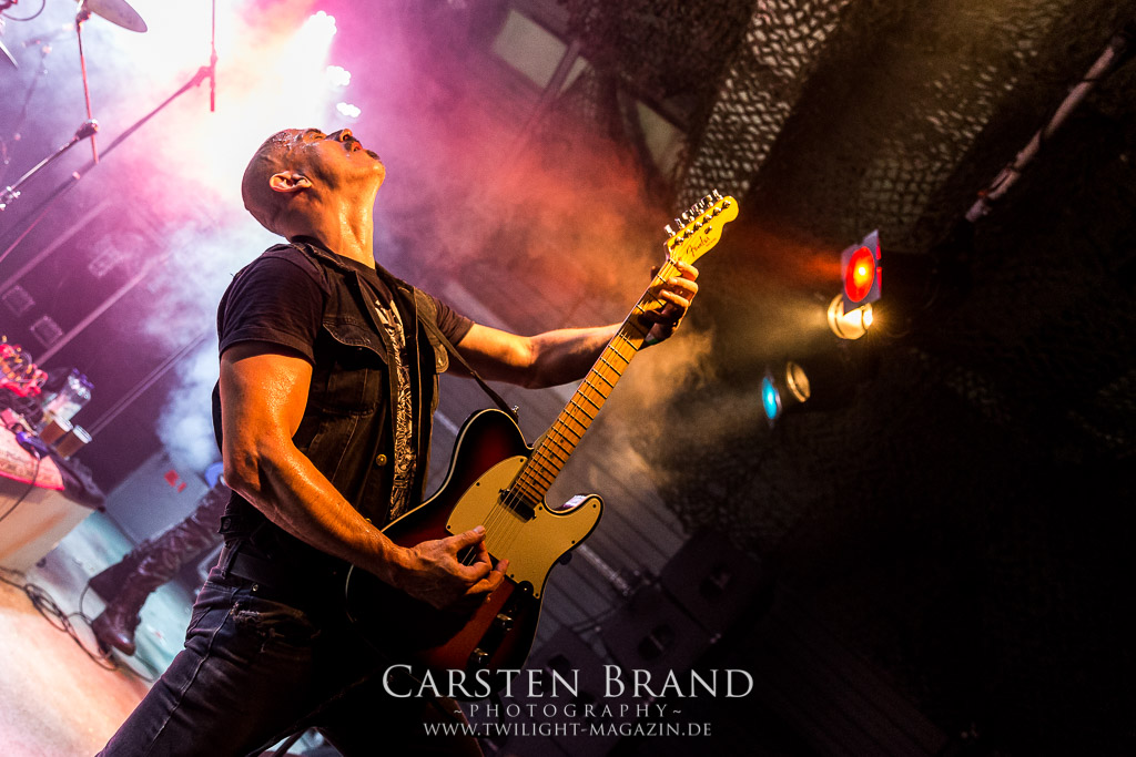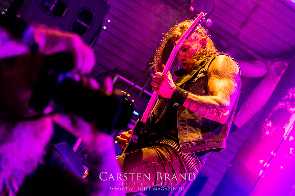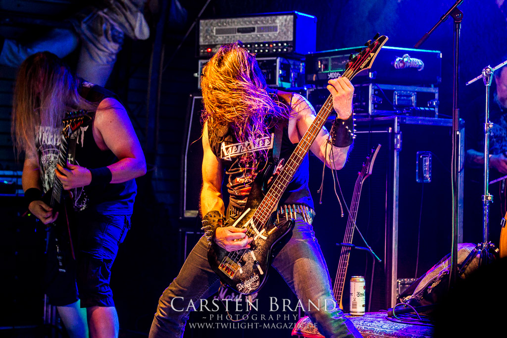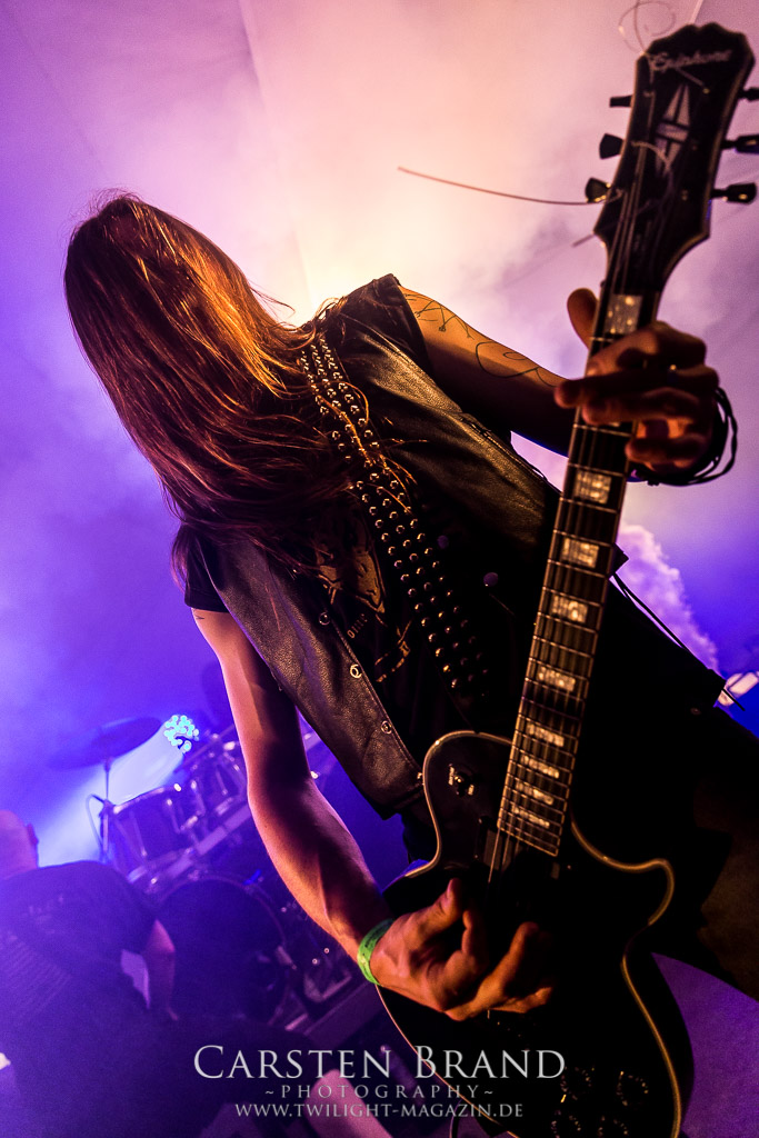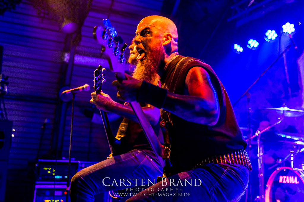 Weniger Black Sabbath als Pantera haben die Sondershausener von BLACK MOOD in ihren Einflüssen, wodurch sie sich in ihrer ähnlichen Grundausrichtung von ihren Kollegen abheben. Das Duo, um die Brüder Izz (Gitarre, Vocals) und Sleaze (Drums) steht mittlerweile in der Tradition von Bands, die einen Bassisten für verzichtbar halten und stattdessen für die Gitarre mit allerlei Verstärker-Technik experimentieren, um möglichst wenig Sound-Einbußen zu haben. Wie schon bei meinem ersten Kontakt mit den Thüringern, die im vergangenen Jahr als Opener für die kongenialen Castle in Göttingen fungierten, spielen sich die beiden Herren den Allerwertesten ab und wissen das Publikum von Beginn an mit ihrem groovenden, metallischen Southern-Rock zu überzeugen.