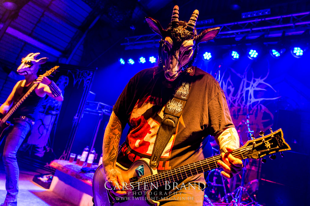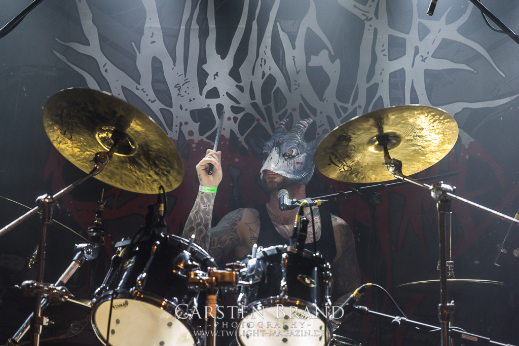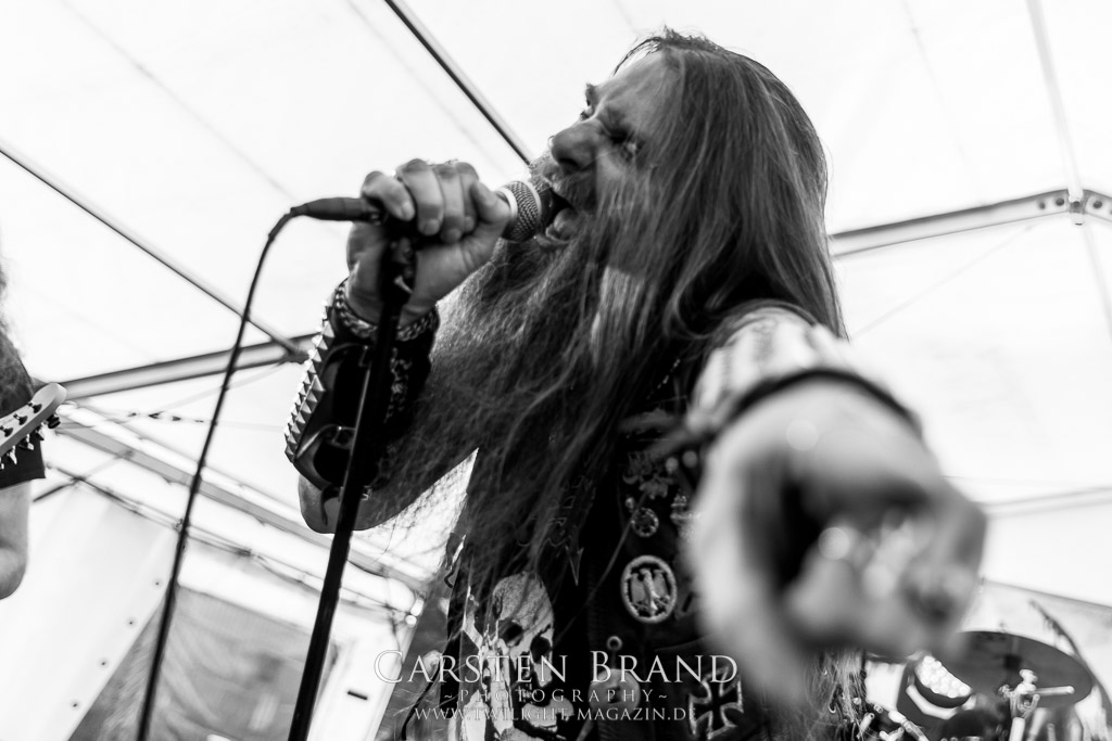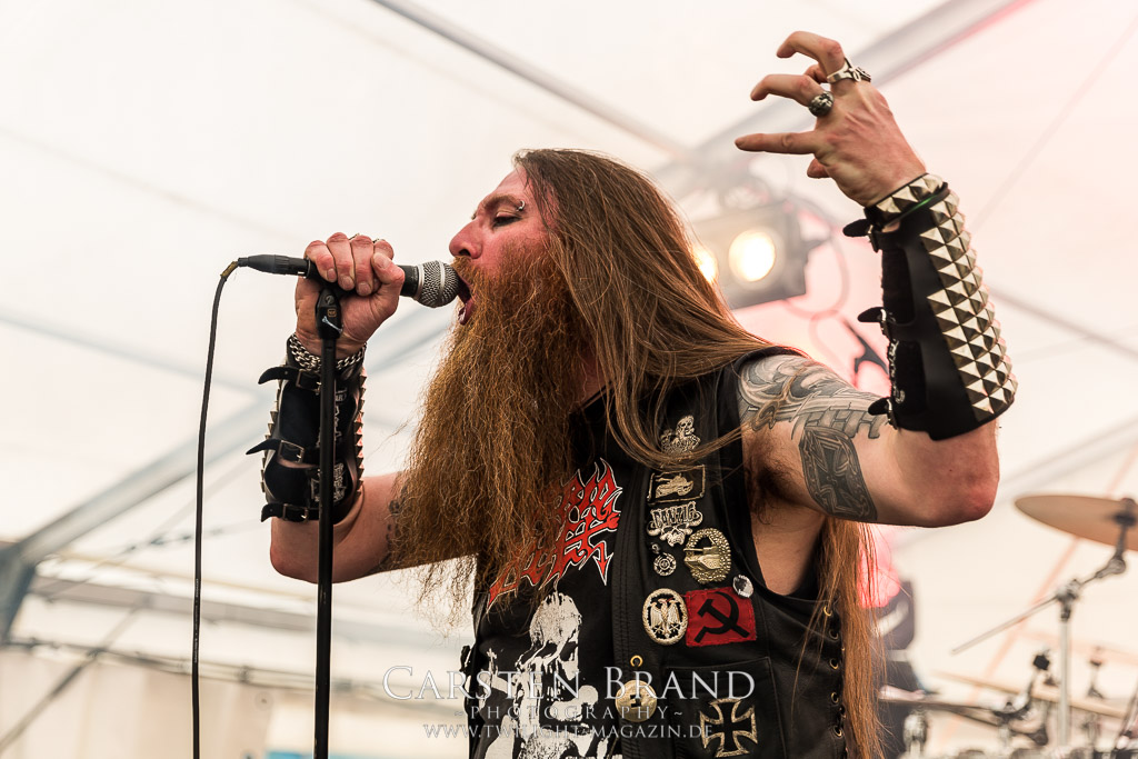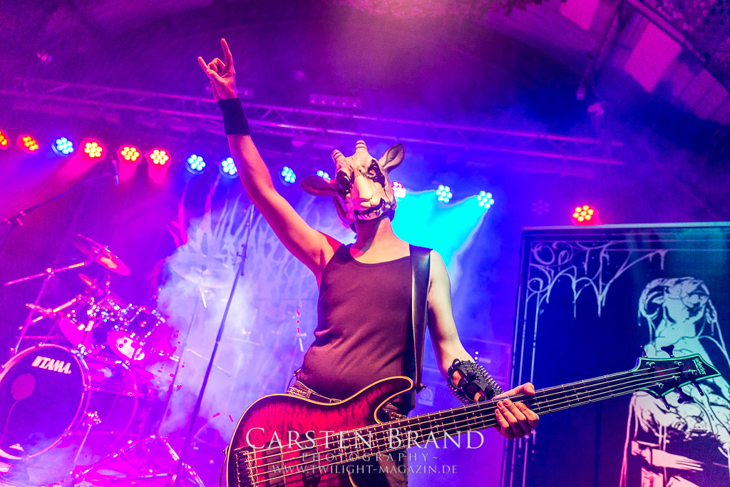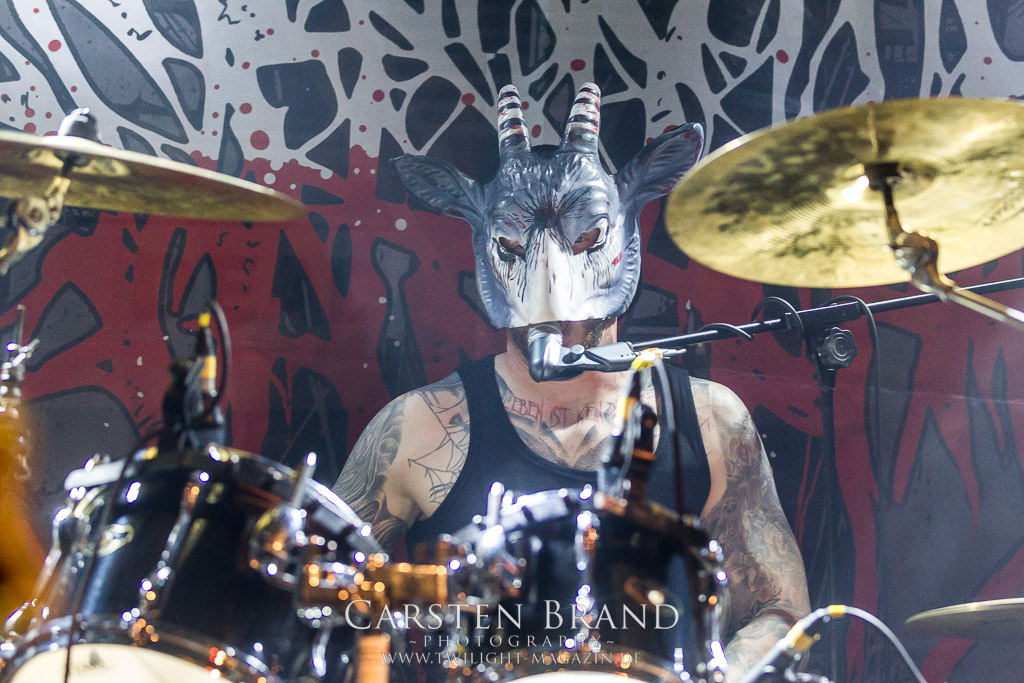 MILKING THE GOATMACHINE wissen da im Anschluss deutlich besser zu mobilisieren. Das Grindcore Trio mit den Ziegenmasken und der Vorliebe für Euro-Dance um den brüllenden Trommler Goatleeb Udder versteht sich durchaus auf brutalen, simplen aber abwechslungsreichen Death-Grind mit einer ordentlichen Prise Ironie, ohne dabei albern zu wirken. Auch wenn nicht wirklich meine musikalische Baustelle, so lasse ich mich am Ende doch gerne packen und mitreißen. Ganz starke Performance, die zeigt, wieso die Berliner schon seit geraumer Zeit in aller Munde sind. Wer sich übrigens in der Zwischenzeit fragt, wo denn die BEARDED BASTARDS und SUCCUBUS abgeblieben sind, welche gemeinsam mit Atomwinter das Zelt gerockt haben, dem sei gesagt, dass die Band- und Bühnenaufstockung durchaus Vorteile aber eben auch Nachteile hat, wenn es eben Schlag auf Schlag ohne Unterbrechung durchgeht. Und da das Zelebrieren des Wiedersehens und die Gespräche bei diversen Getränken mit vielen Freunden und Wegbegleitern im Rahmen der Protzen-Familie ein wesentlicher Bestandteil dieses Festivals ist, möge man mir es nachsehen, wenn ich diese beiden Bands unterschlage, um genussvoll durchzuschnaufen.