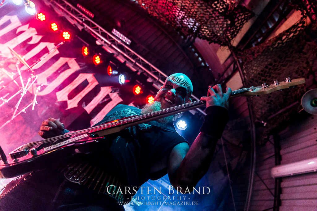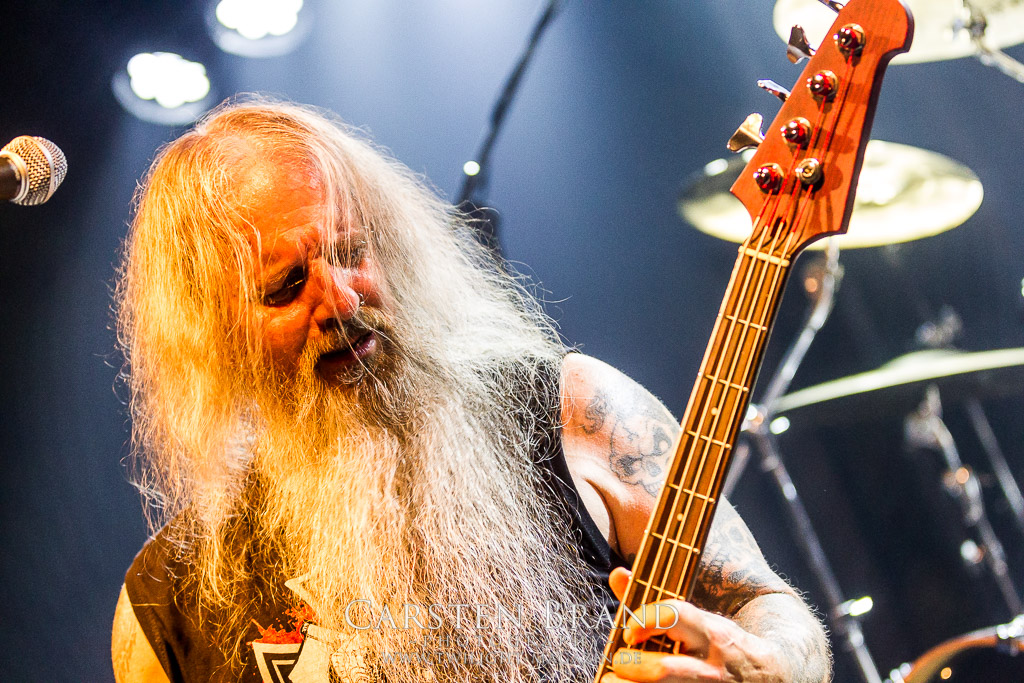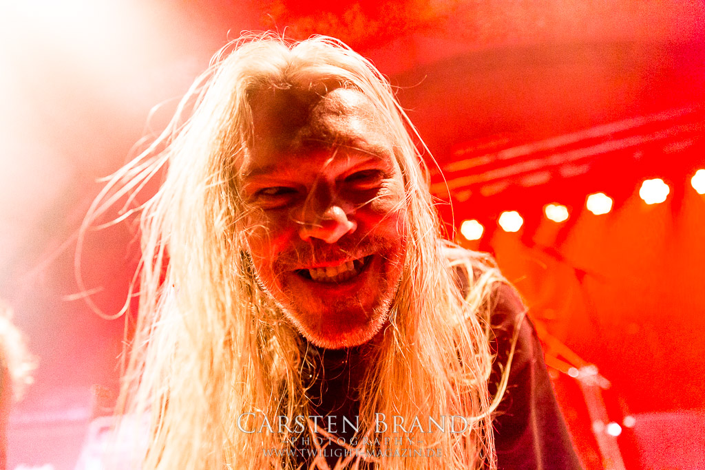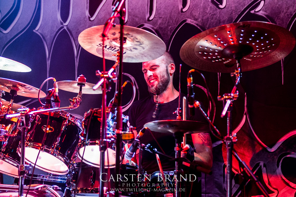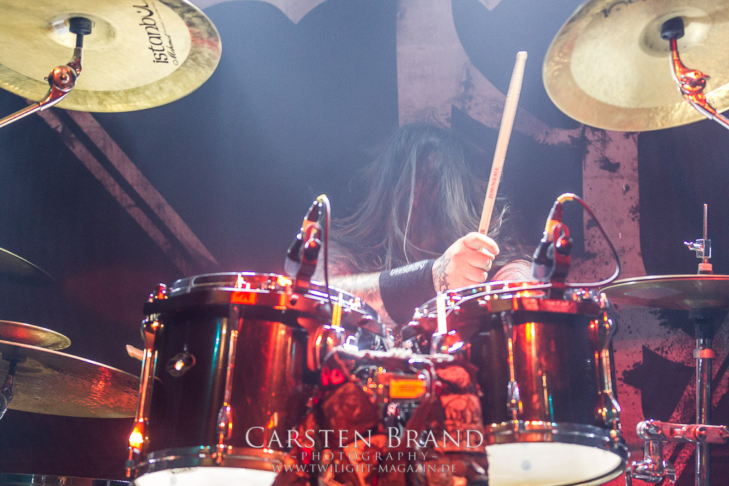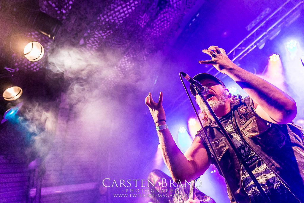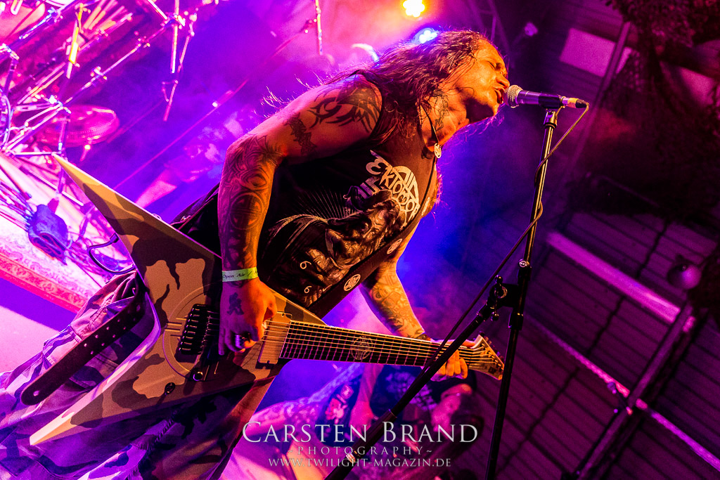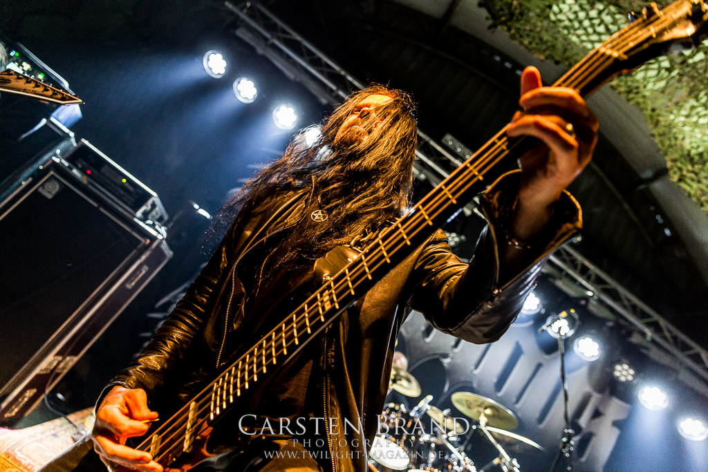 Paul Speckmann wirkt nicht nur optisch wie Vater Abraham, er ist tatsächlich der Methusalem der Death Metal - Szene. Zwar hat der MASTER-Frontmann musikalisch in über drei Dekaden meiner Ansicht nie die ganz hochkarätigen Klassiker erschaffen, sein Einfluss und vor allem seine musikalische Beständigkeit und Präsenz ist jedoch unbestritten und das rechtfertigt tatsächlich die hohe Position im Billing. Knochentrocken rotzt der Wahl-Tscheche mit seinen beiden Mitstreitern die tief im Thrash verwurzelten Brecher aus 35 Jahren Bandgeschichte aus dem Ärmel. Auch wenn ich dem alten Mann immer noch nachtrage, dass er Krabathor einst auseinanderdividiert hat, Master werden an diesem Abend ihrer Position gerecht.