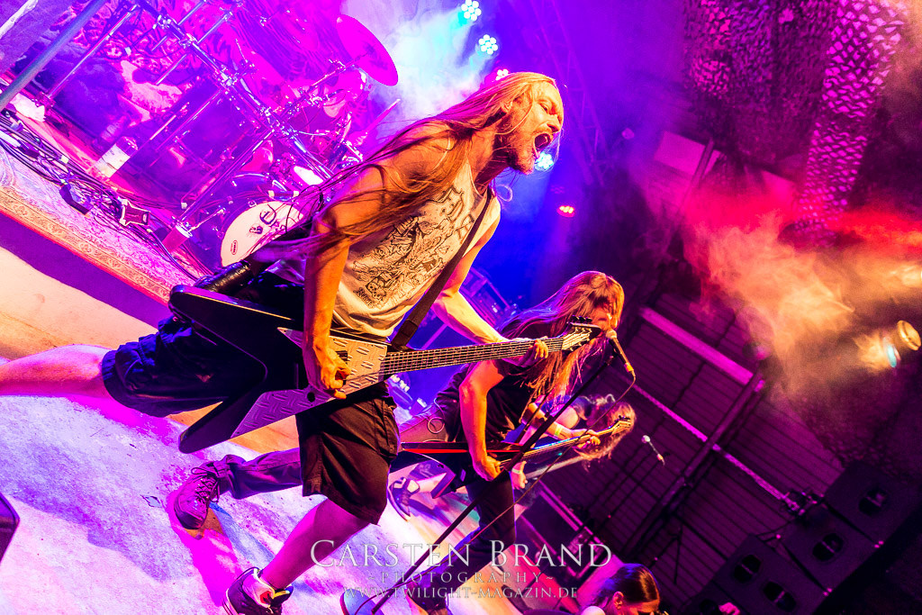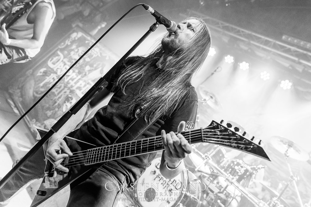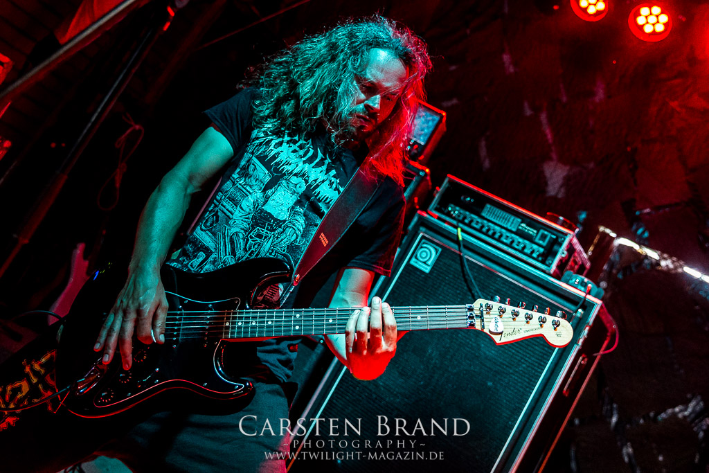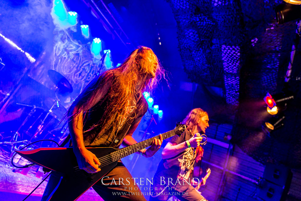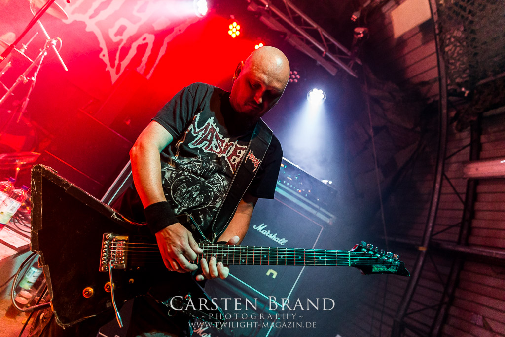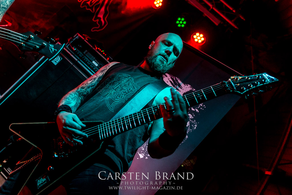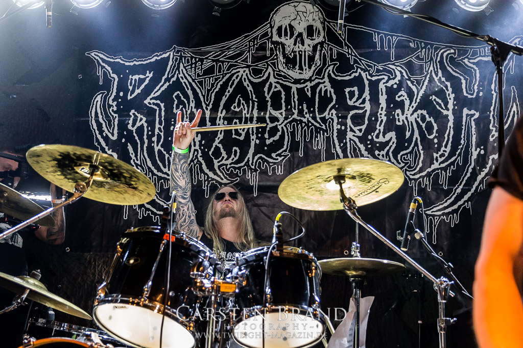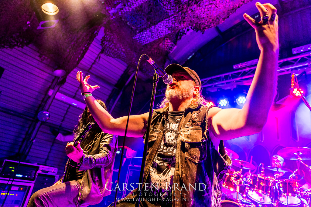 Paul Speckmann wirkt nicht nur optisch wie Vater Abraham, er ist tatsächlich der Methusalem der Death Metal - Szene. Zwar hat der MASTER-Frontmann musikalisch in über drei Dekaden meiner Ansicht nie die ganz hochkarätigen Klassiker erschaffen, sein Einfluss und vor allem seine musikalische Beständigkeit und Präsenz ist jedoch unbestritten und das rechtfertigt tatsächlich die hohe Position im Billing. Knochentrocken rotzt der Wahl-Tscheche mit seinen beiden Mitstreitern die tief im Thrash verwurzelten Brecher aus 35 Jahren Bandgeschichte aus dem Ärmel. Auch wenn ich dem alten Mann immer noch nachtrage, dass er Krabathor einst auseinanderdividiert hat, Master werden an diesem Abend ihrer Position gerecht.