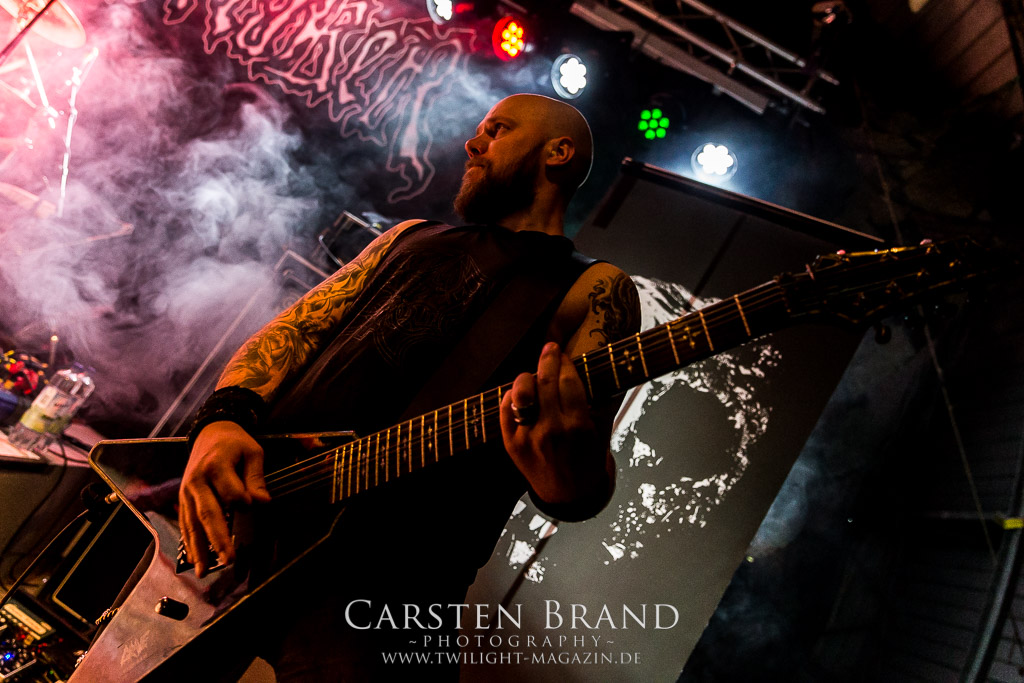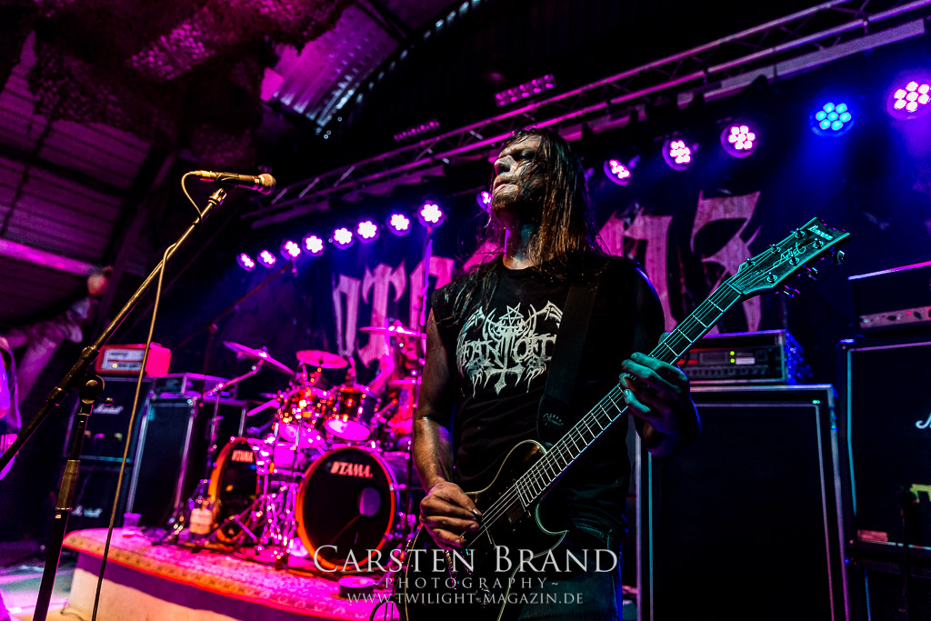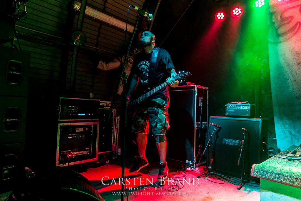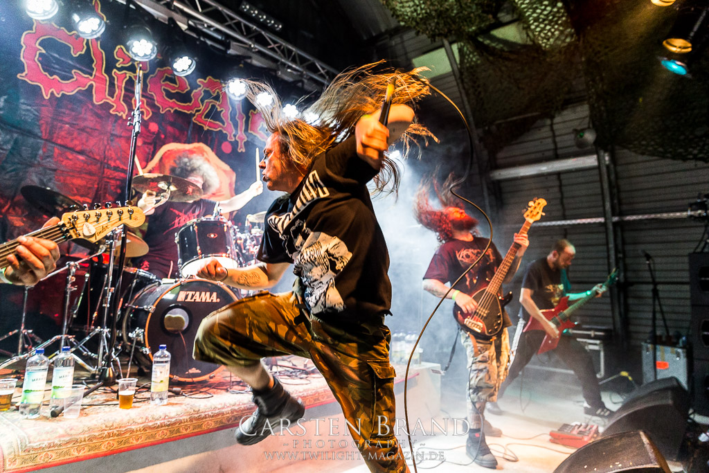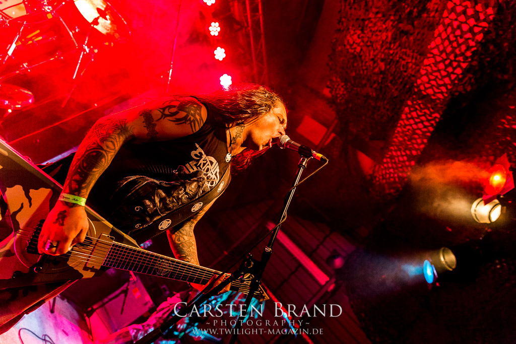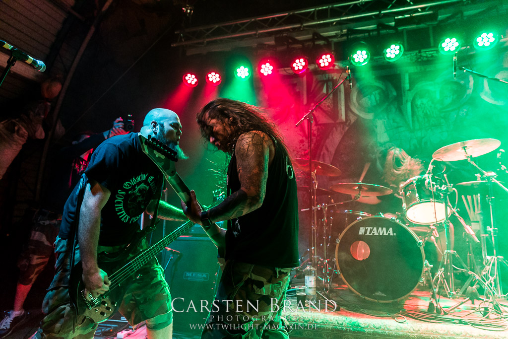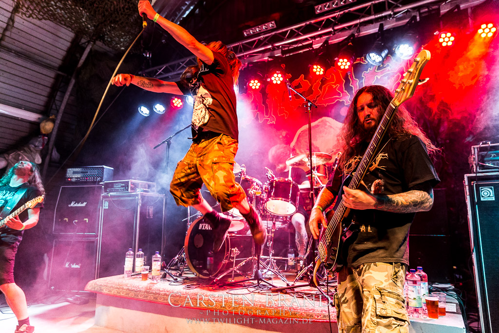 Dieser Slot war verflucht. Zunächst sagen Misery Index alle Europa-Gigs ab und dann wird es auch nichts mit dem Auftritt der ehemaligen Massacre-Mucker Kam Lee und Rick Rozz. Grund hier scheint Ego-Gewichse zu sein. Die Veranstalter sind gut vernetzt und so zaubern sie sehr kurzfristig mit SCHIRENC PLAYS PUNGENT STENCH einen würdigen Ersatz aus dem Hut. Die haben ja selber leidvolle Erfahrungen mit dem Weiterführen einer Band unter dem ursprünglichen Namen... Der Gestank im Hangar war für die meisten am ersten Abend noch nicht beißend genug, aber Schirenc Plays Pungent Stench sorgen dafür, dass sich der Schweißgeruch noch einmal potenziert. Wie schon 2014 liefern die Österreicher einen wirklich guten Gig ab bei dem die Stimmung vortrefflich auf das Publikum überspringt.(TT)