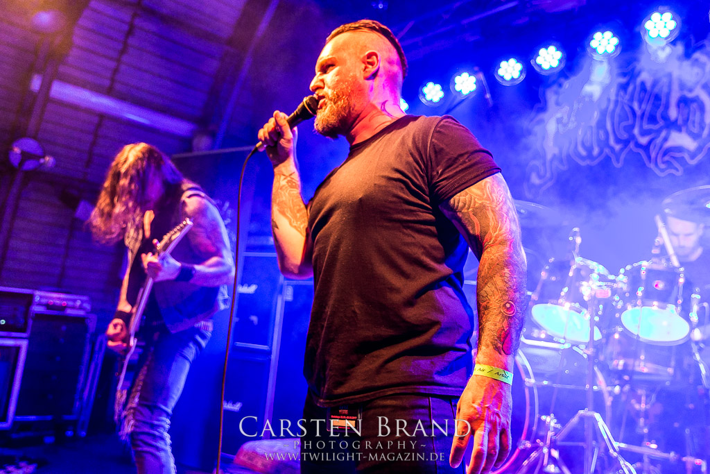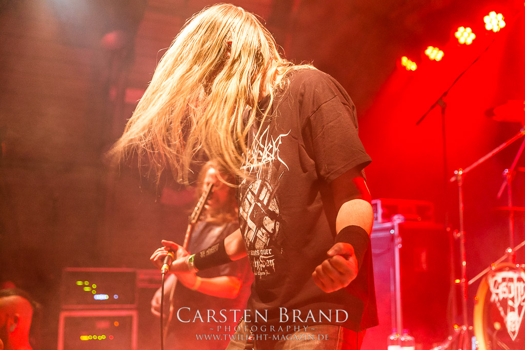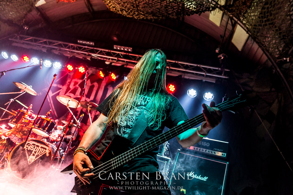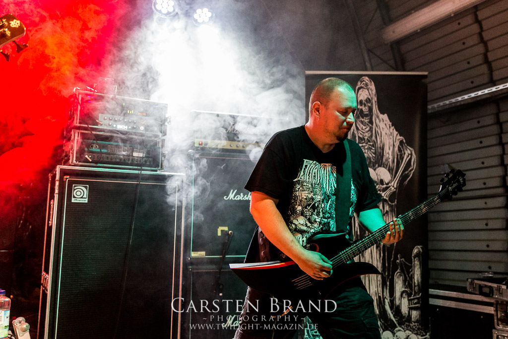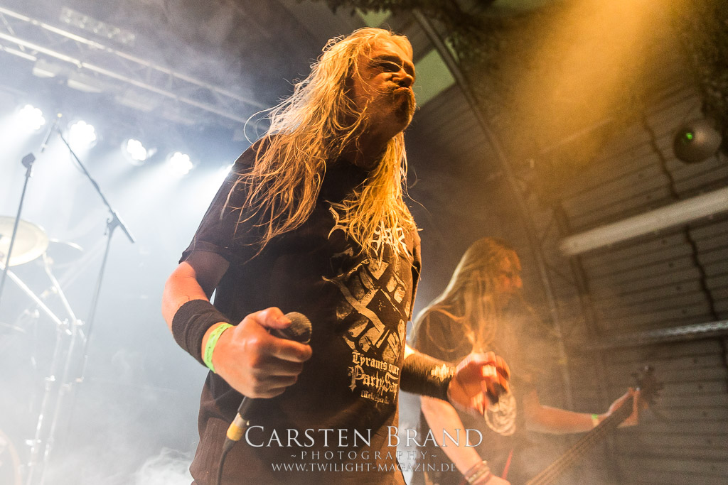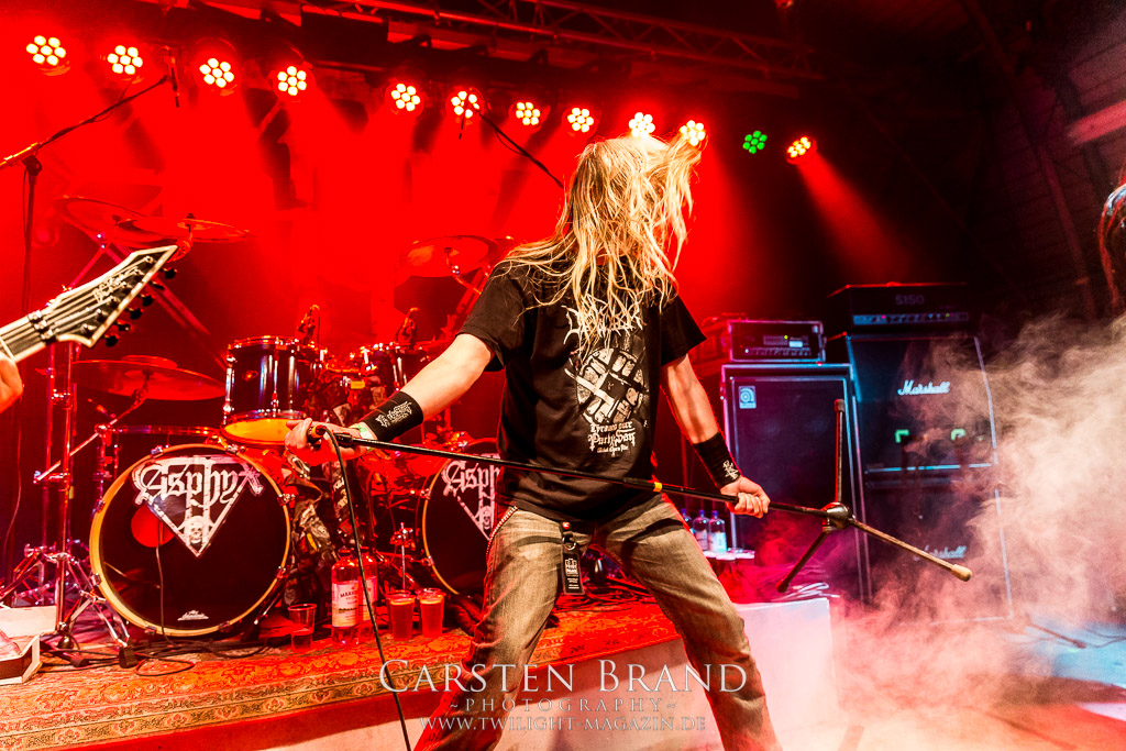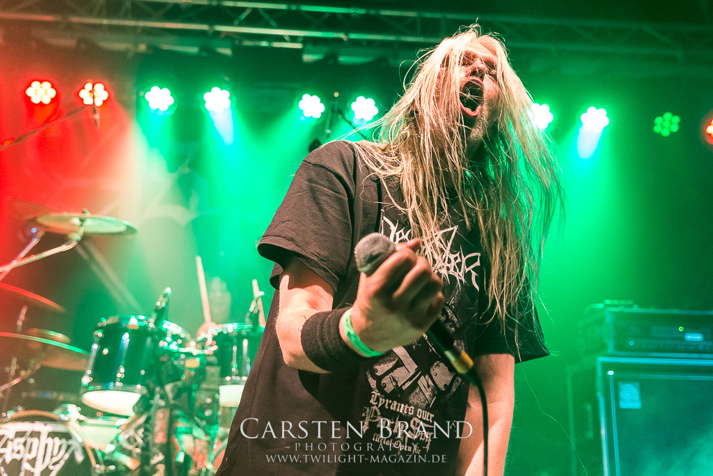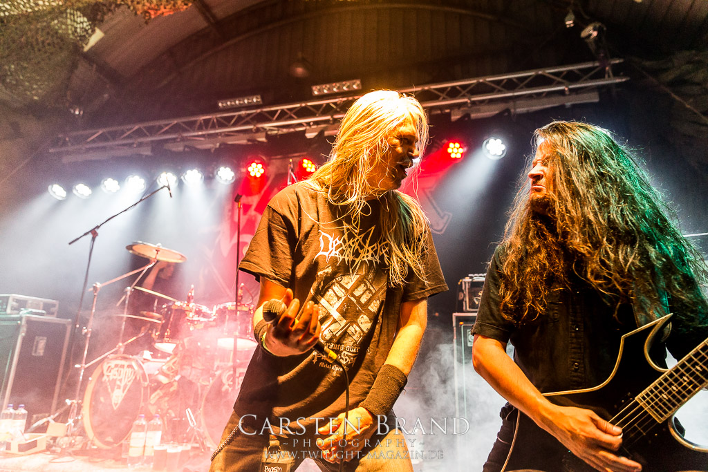 Mit Martin van Drunen folgt Speckmann nun die nächste angegraute Eminenz des Todesstahls auf die Bühne, darf er doch mit ASPHYX den Sack zu machen. Und wie: Zwar ist der Sound nicht ganz so brilliant wie auf dem Rock Hard Festival aber was das Quartett hier abzieht ist kaum in Worte zu fassen. Die gesamte Band sprudelt über vor Energie und ist fast schon übermotiviert, was bei diesem Set der Extraklasse jedoch kein Wunder ist. "MS Bismark", "The Sickened Dwell", "Der Landser", "The Rack", "Scorbutics", "Deathhammer", "Death: The Only Immortal", "Last One On Earth" und so weiter und sofort... Klassiker reiht sich an Klassiker und somit sind Asphyx die einzige Band der alten Garde, denen sich Deserted Fear heute nach punkten geschlagen geben müssen. Aber Asphyx in dieser Form zu unterliegen, ist wahrlich keine Schande. Ein denkwürdiger Abschluss, der Band und Fans die letzten Reserven abgetrotzt hat, unglaublich intensiv war und sehr viel Spaß gemacht hat.