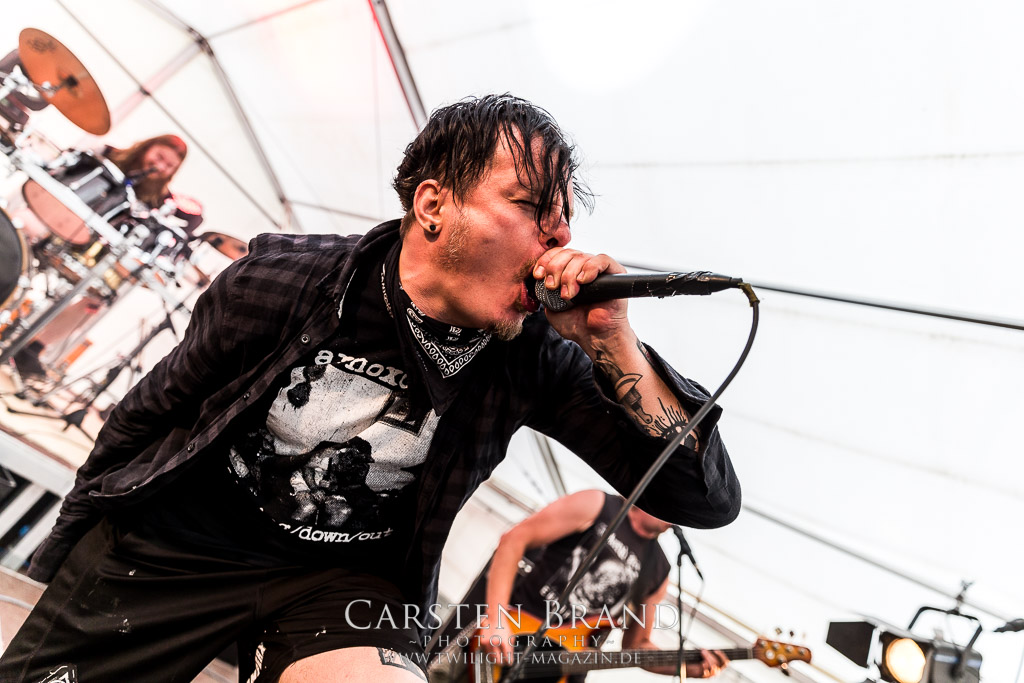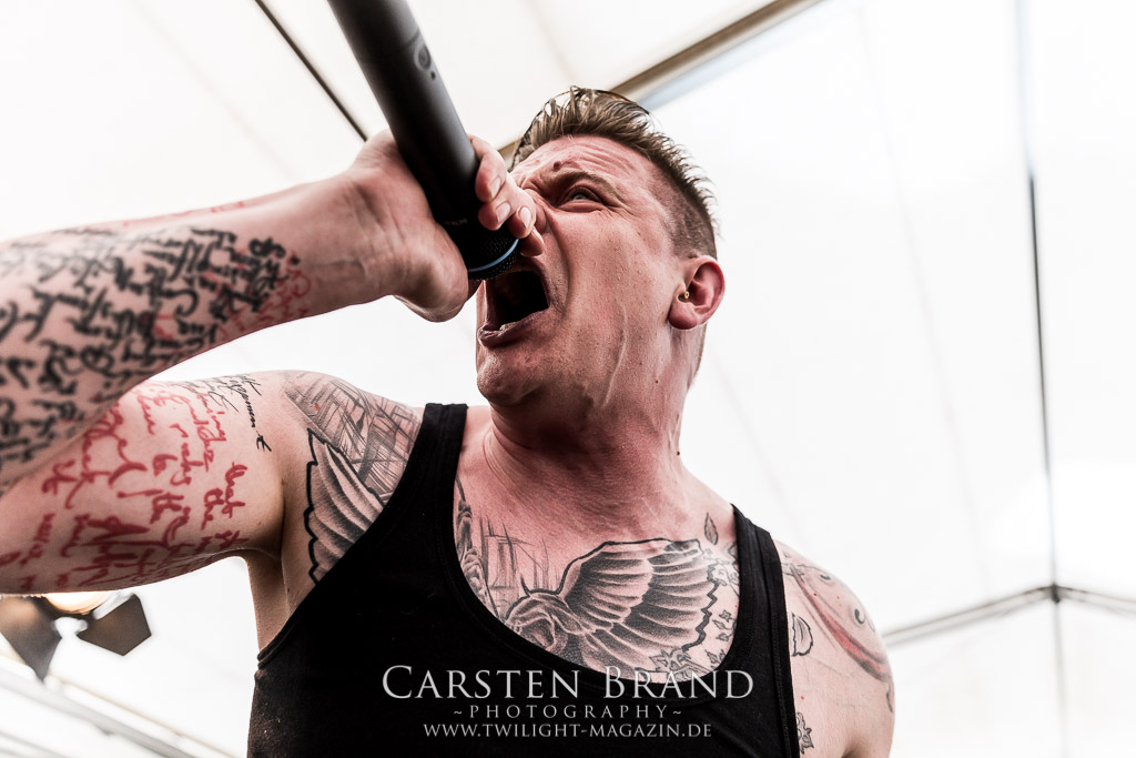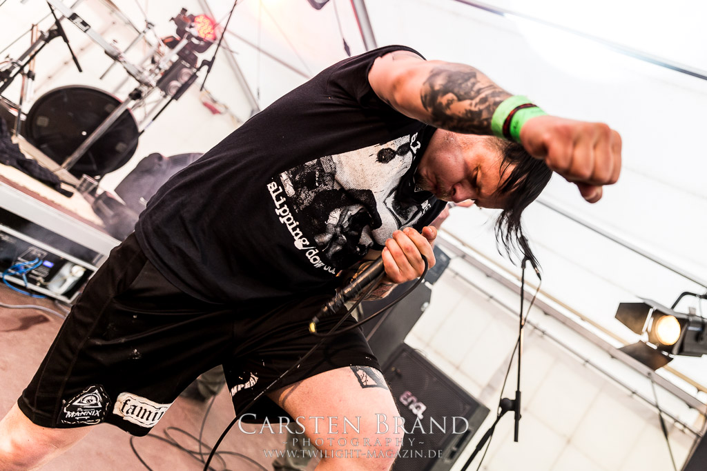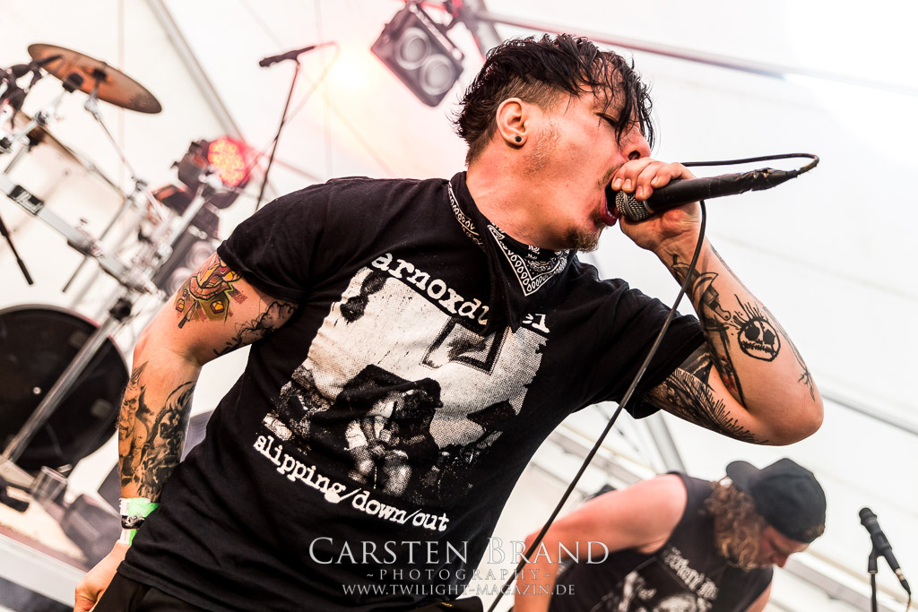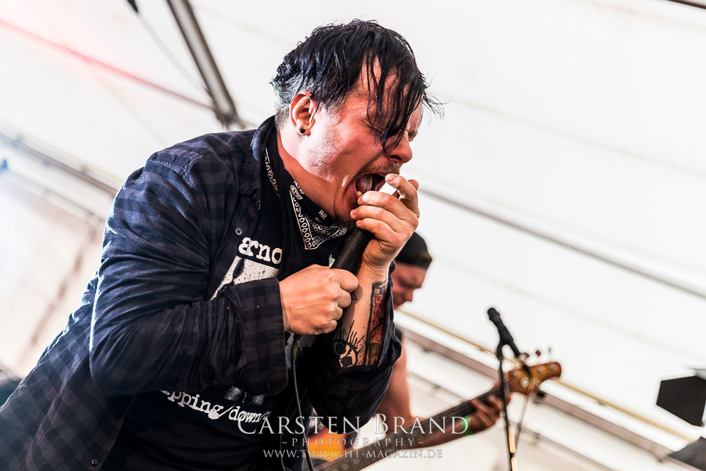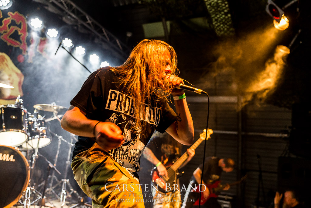 HARMONY DIES gehören irgendwie schon all die Jahre zum Protzen-Inventar und die Berliner Death Metaller um Bühnentechniker Kai und DJ Keksgrinder sind auch in diesem Jahr wieder eine absolute Bank. Staight, zielsicher und ohne jeglichen Firlefanz direkt in die Kauleiste. Mehr braucht es nicht zum Glück.