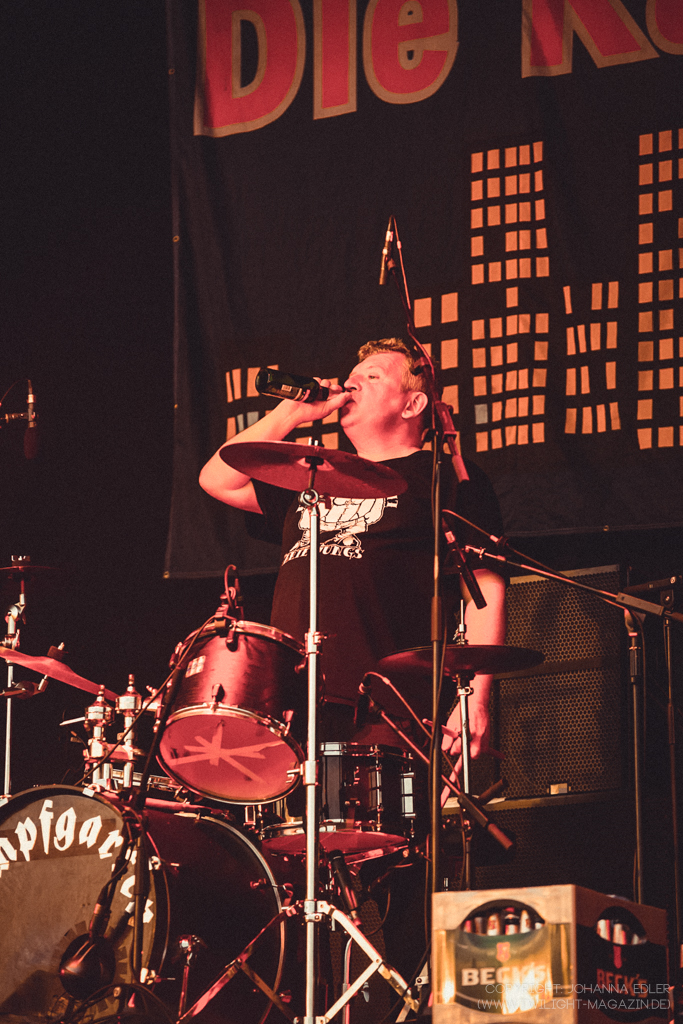 Der Promillehöhepunkt am Samstag wurde schließlich bei „Die Kassierer“ erreicht. Die Punkrock-Jungs aus dem Ruhrpott sind natürlich ein Klassiker, den man sich nicht entgehen lassen sollte. Mit ihren Hits wie "Blumenkohl am Pillermann, Mach die Titten frei denn ich will wichsen und Das schlimmste ist, wenn das Bier alle ist" hielten sie das Publikum bei Laune. Begleitet von witzigen Wortspielen zwischen dem Sänger "Wöfli" und seinen Kollegen krönte dieser den Auftritt standartgemäß mit einem Striptease. Die Menge gröhlte und die Stimmung war ausgelassen.