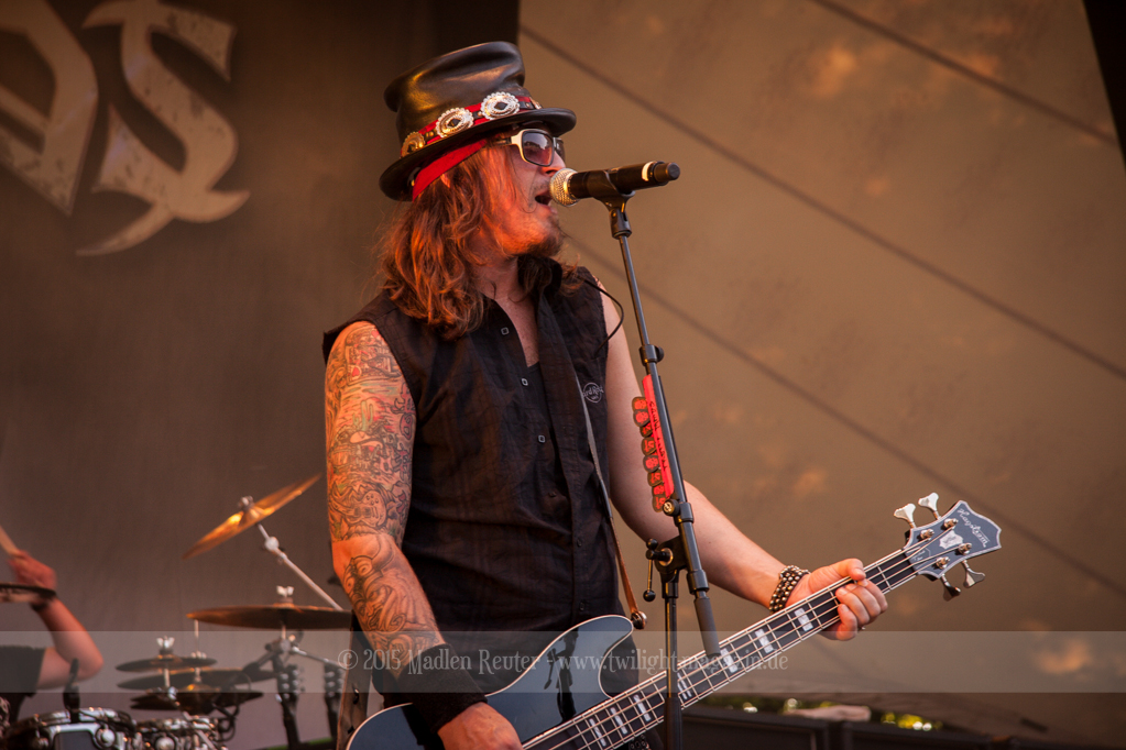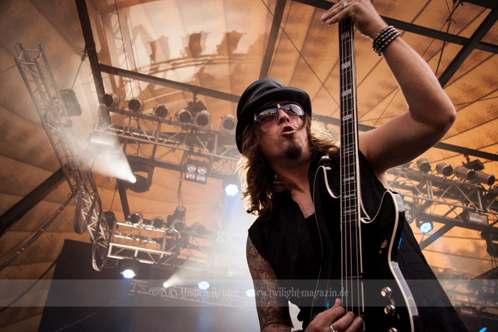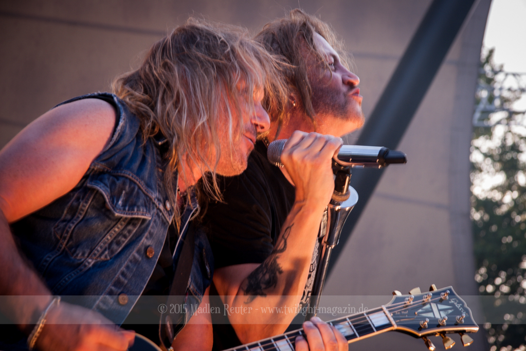 Weiter ging es mit GOTTHARD. Musikalisch finde ich die Band ziemlich gut, darum hatte ich mich schon sehr auf den Auftritt gefreut. Von ruhigen Songs bis zu fetten Rockhymnen haben die Jungs alles im Gepäck, und dies erfreute auch das Publikum sichtlich. Da nun die Sonne untergegangen war, wurde die Stimmung in den Zuschauerreihen, von Song zu Song, besser. Auch die Lichtshow konnte man nun viel besser wahrnehmen, und das war auch gut so. Bei einem Song durfte dann auch eine Handvoll Leute auf die Bühne, die zusammen mit der Band abfeierten. Sehr guter Auftritt, der für ausgelassene Stimmung sorgte, und Bock auf den Headliner machte.
