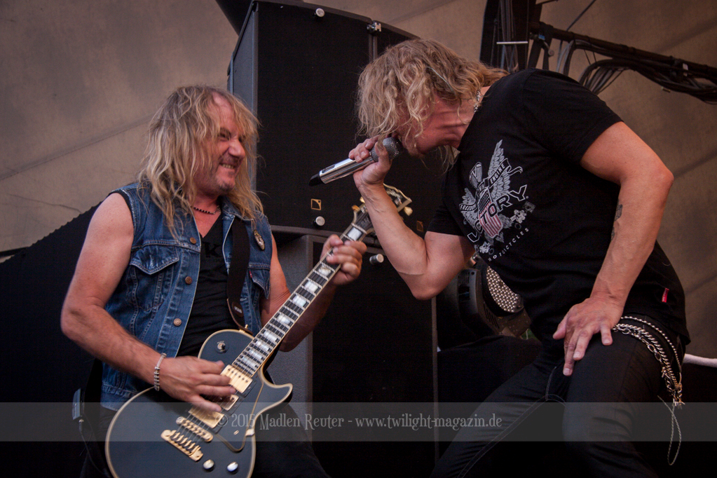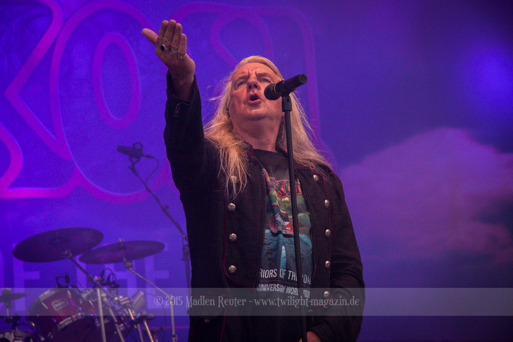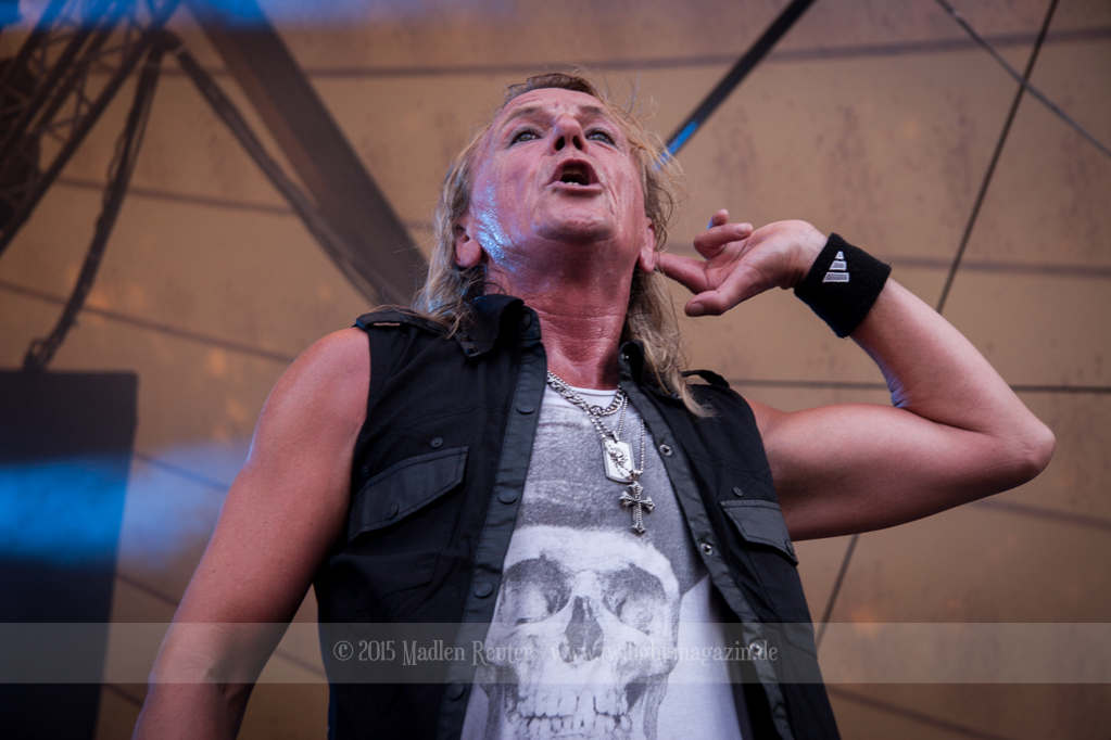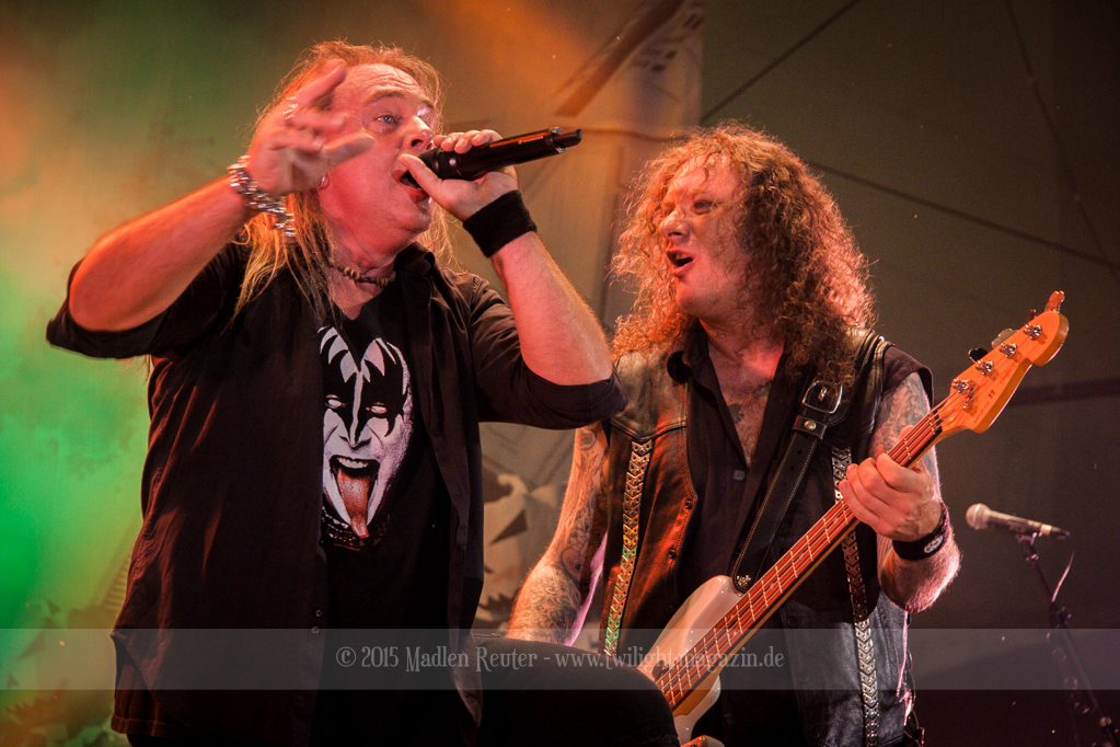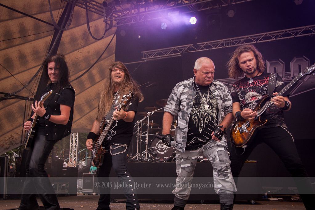 Als hätte das noch nicht gereicht, und als ob mein Nacken nicht schon genug beansprucht wurde, folgte U.D.O. als nächstes. Meine Laune wurde direkt nochmal besser, als die Herrschaften die Bühne betraten. Die haben einfach so eine Wirkung auf mich. Vor allem Kasperi und Fitty haben wieder viel miteinander „gespielt“, da muss man einfach Schmunzeln. Auch der Rest der Band hat alles dafür gegeben, das Publikum anzufeuern, und dies ist auch definitiv gelungen. Bei einer solch starken Setlist blieb eigentlich niemand mehr ruhig stehen. Vor allem habe ich mich sehr über „Metal Machine“ gefreut – Ich weiß nicht warum, aber ich liebe diesen Song abgöttisch. Lediglich die alteingesessenen ACCEPT-Fans hatten einen Grund sich zu beschweren, denn „Princess Of The Dawn“ wurde nicht gespielt. Für den letzen Song „Balls To The Wall“ bekamen die Jungs dann noch monströse Unterstützung, denn Mr Lordi gab sich ein Stelldichein mit dem German Tank. Das war ein Bild für die Götter!