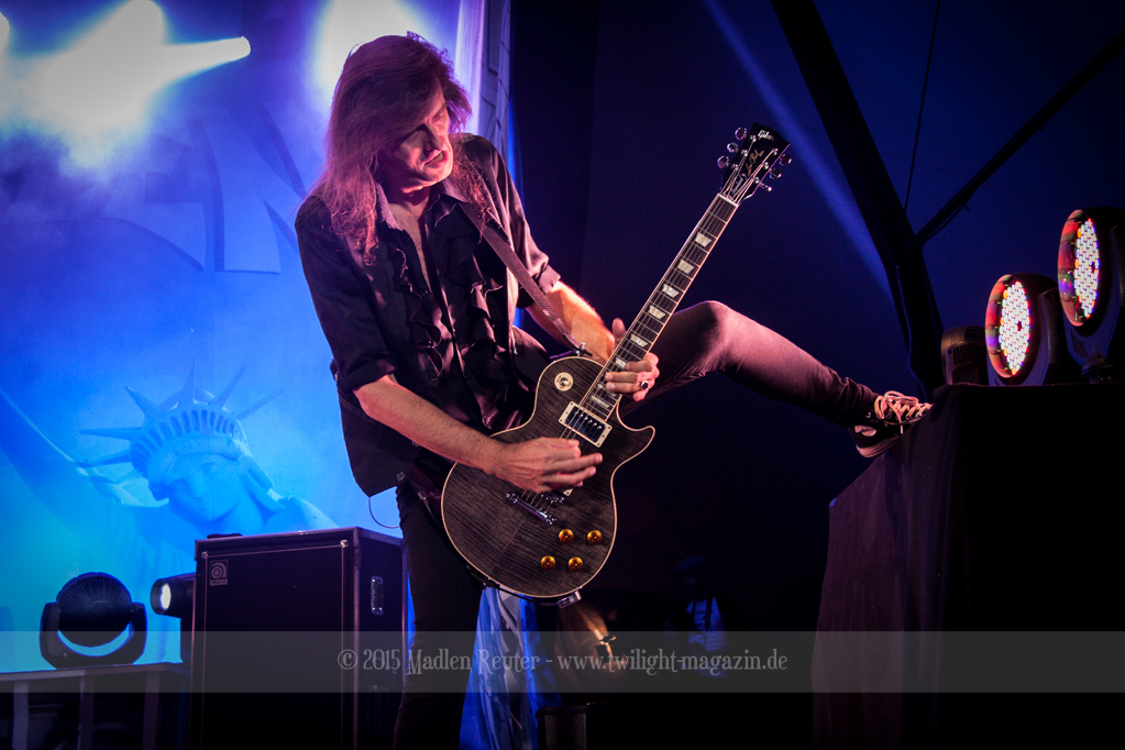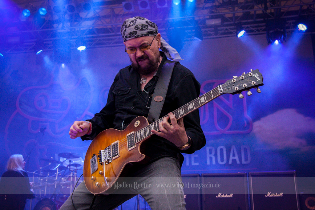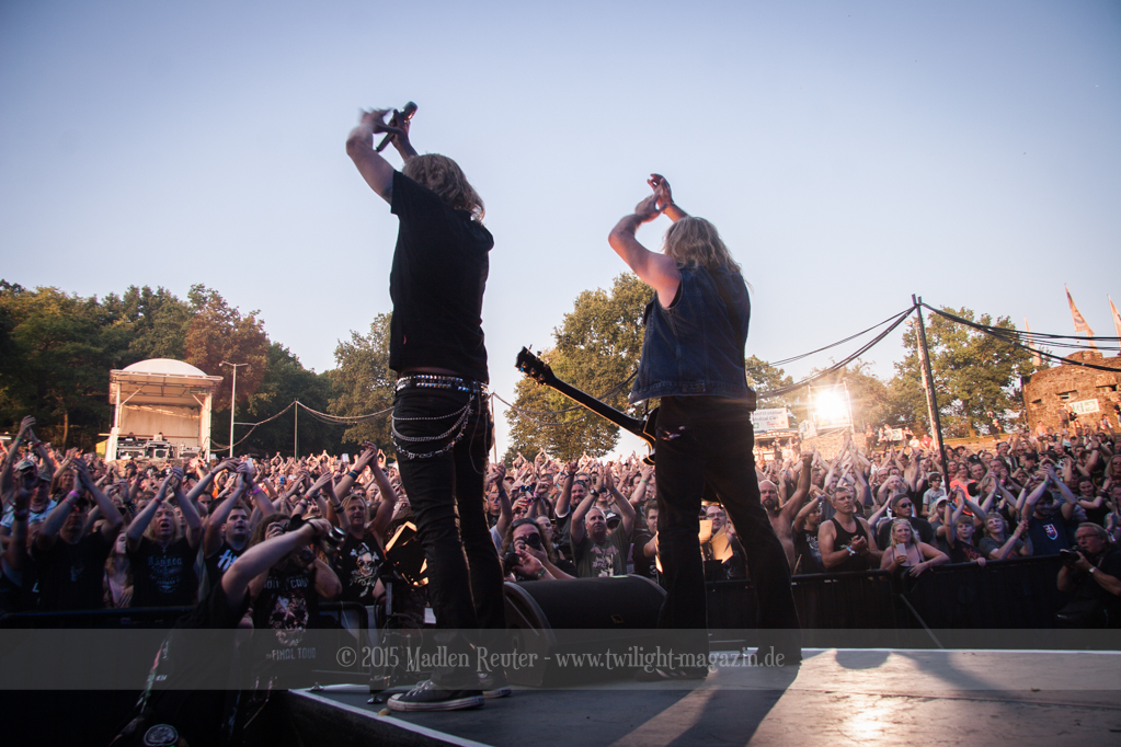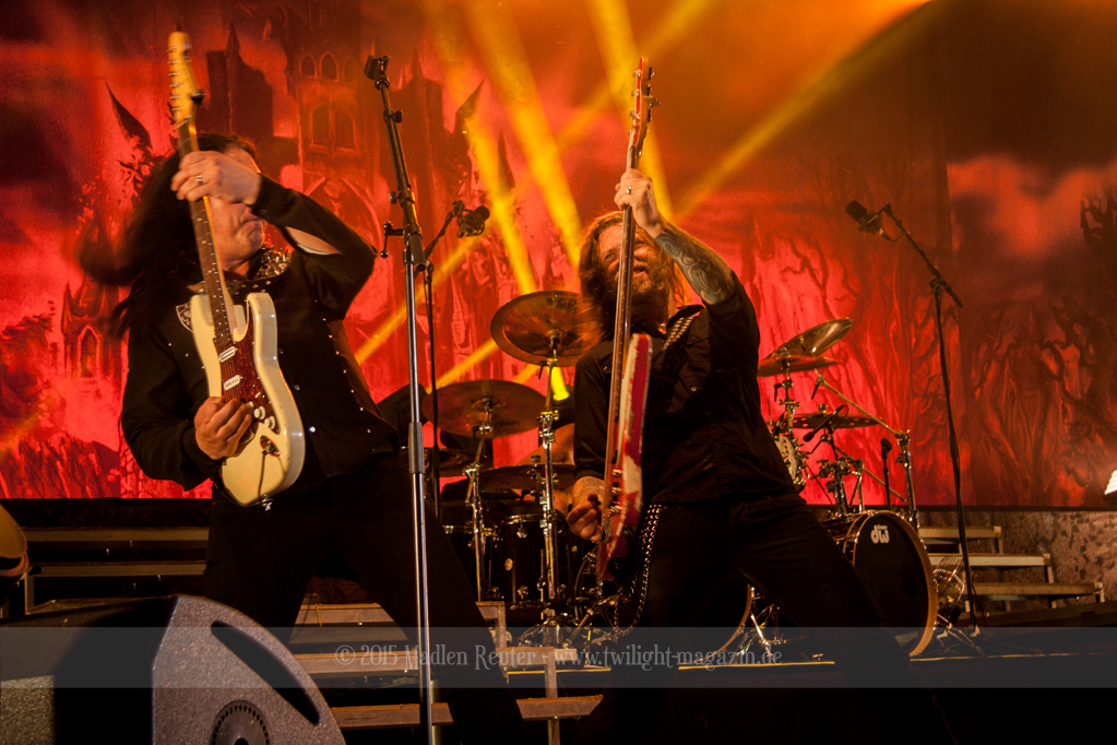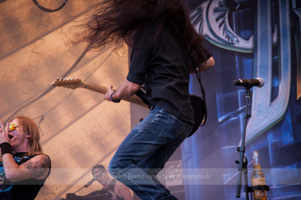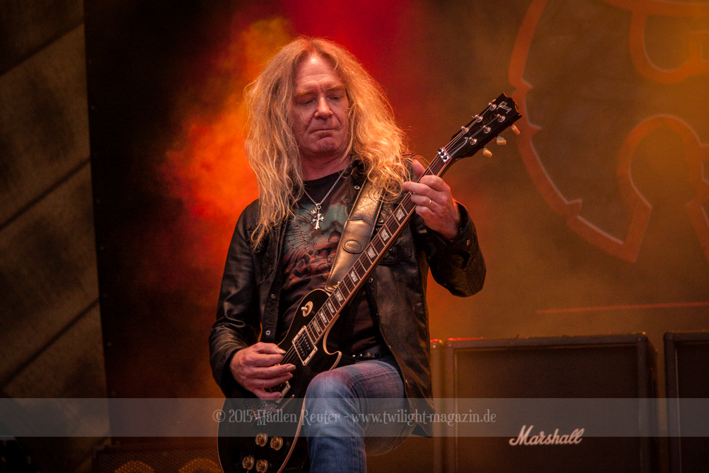 Als hätte das noch nicht gereicht, und als ob mein Nacken nicht schon genug beansprucht wurde, folgte U.D.O. als nächstes. Meine Laune wurde direkt nochmal besser, als die Herrschaften die Bühne betraten. Die haben einfach so eine Wirkung auf mich. Vor allem Kasperi und Fitty haben wieder viel miteinander „gespielt“, da muss man einfach Schmunzeln. Auch der Rest der Band hat alles dafür gegeben, das Publikum anzufeuern, und dies ist auch definitiv gelungen. Bei einer solch starken Setlist blieb eigentlich niemand mehr ruhig stehen. Vor allem habe ich mich sehr über „Metal Machine“ gefreut – Ich weiß nicht warum, aber ich liebe diesen Song abgöttisch. Lediglich die alteingesessenen ACCEPT-Fans hatten einen Grund sich zu beschweren, denn „Princess Of The Dawn“ wurde nicht gespielt. Für den letzen Song „Balls To The Wall“ bekamen die Jungs dann noch monströse Unterstützung, denn Mr Lordi gab sich ein Stelldichein mit dem German Tank. Das war ein Bild für die Götter!