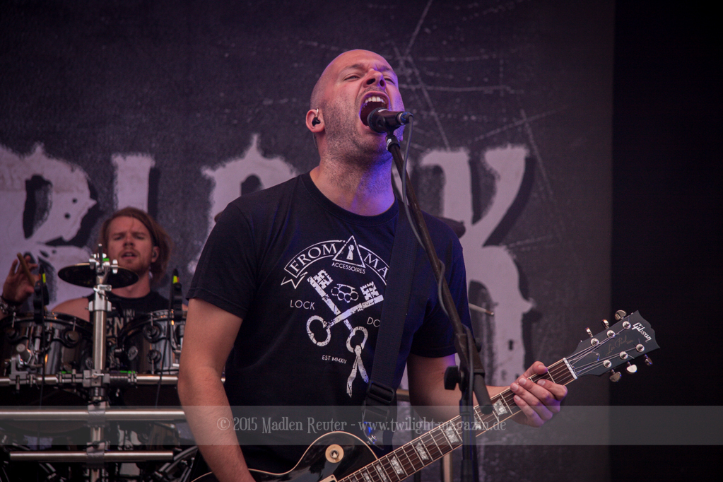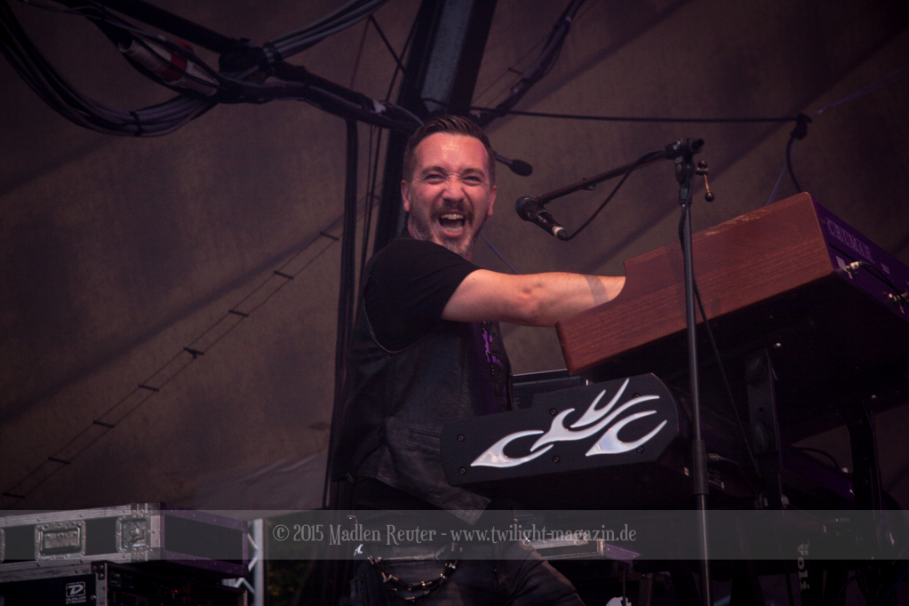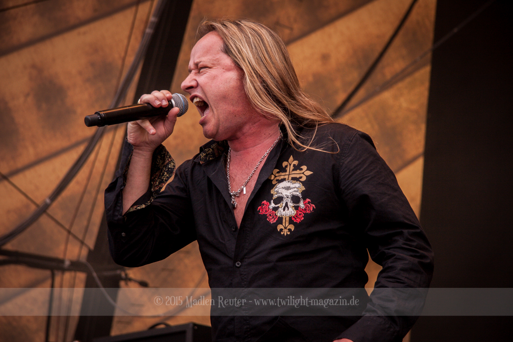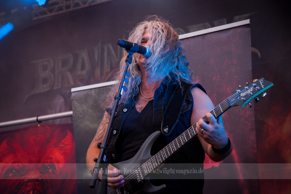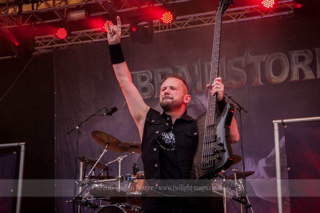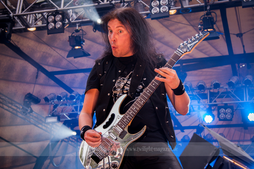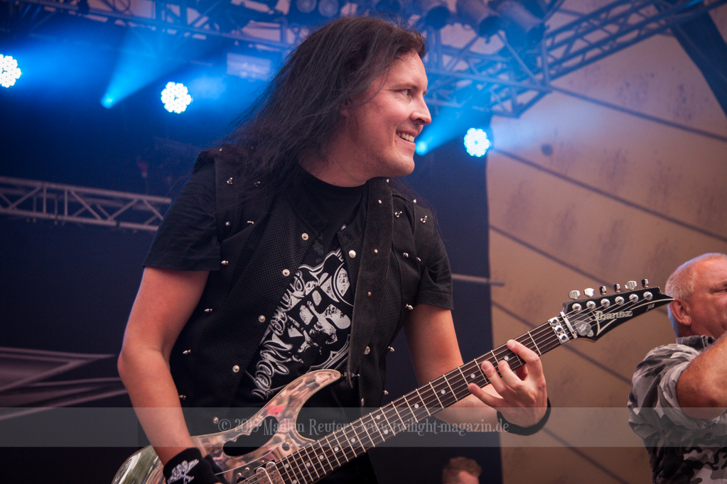 BRAINSTORM konnten von Anfang an Punkte sammeln, denn musikalisch war das ziemlich mein Ding. Dicke Songs, die ordentlich nach vorne gingen überzeugten allerdings nicht nur mich. Auch die verminderte Sonneneinstrahlung ließ eine schöne Lichtshow zu. Vor allem der Sänger flog quasi über die Bühne und spaßte mit dem Publikum herum. Der Rest der Band beschränkte sich aufs Headbangen, aber das reichte auch vollkommen aus. Bereits jetzt war die Laune extrem gut – Das konnte also nur noch super weiter gehen.