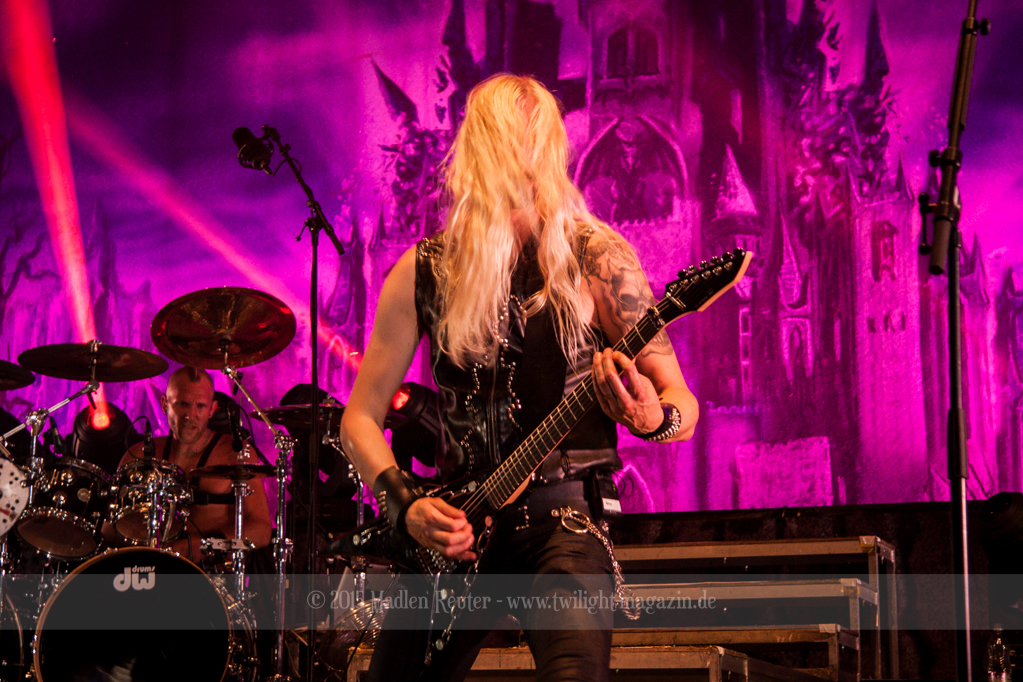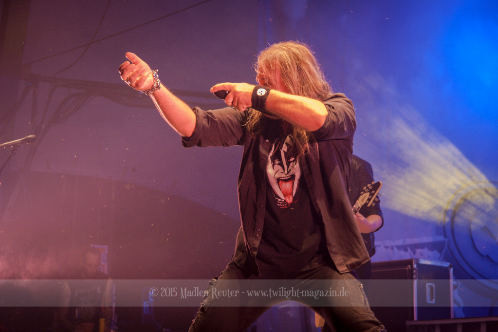 Mit HAMMERFALL fand der erste Tag dann seinen Abschluss. Mit einem wuchtigen Backdrop wurde die Bühne dekoriert, und die dazu passende Lichtshow sorgte für eine geniale Atmosphäre. Beim Sound gab es absolut nichts zu meckern, und auch die Stimmung hätte nicht besser sein können. Dies war zwar erst meine zweite Show der Schweden, aber dennoch hatte ich das Gefühl, dass alles schon im Januar gesehen zu haben. Das ist zwar ein wenig schade, aber trotzdem war der Auftritt extrem gut. Die Kerle sind über die Bühne geflitzt, und wussten sich gekonnt in Pose zu werfen. Die Songs wurden runtergezockt, und das Publikum feierte, als gäbe es kein Morgen mehr. Wirklich ein sehr starker Auftritt der mir HAMMERFALL wieder ein Stück näher gebracht hat.