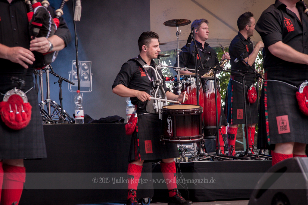 Mit den RED HOT CHILLI PIPERS ging es dann etwas anders weiter. Dieses Gespann hat sich in den letzen Jahren einen Namen gemacht, und durfte auch schon mehrfach in Wacken abrocken. Viele Spielereien, vorzugsweise mit dem bewundernswert aktiven Publikum, hatten oberste Priorität. Nebenbei überzeugten sie mit musikalischen Leckerbissen, in ihrer ganz eigenen Variante. Wäre es nicht so sengend heiß gewesen, hätte das ganze mehr Spaß gemacht.
